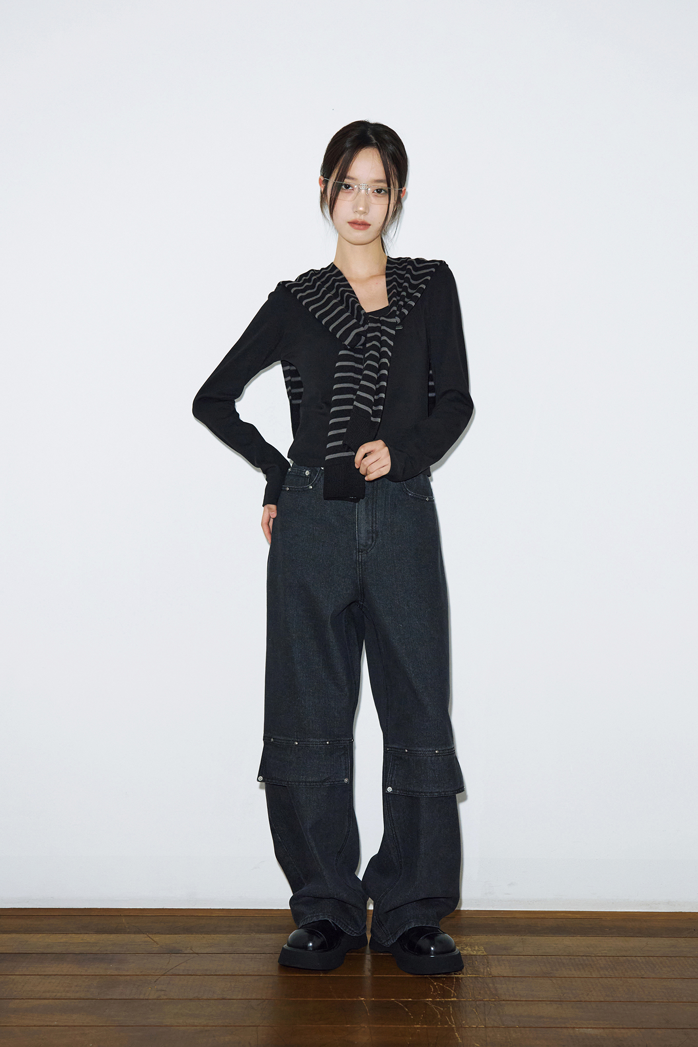 - 모든 스타일에 두루 어울리는 블랙-그레이 스트라이프 컬러입니다.