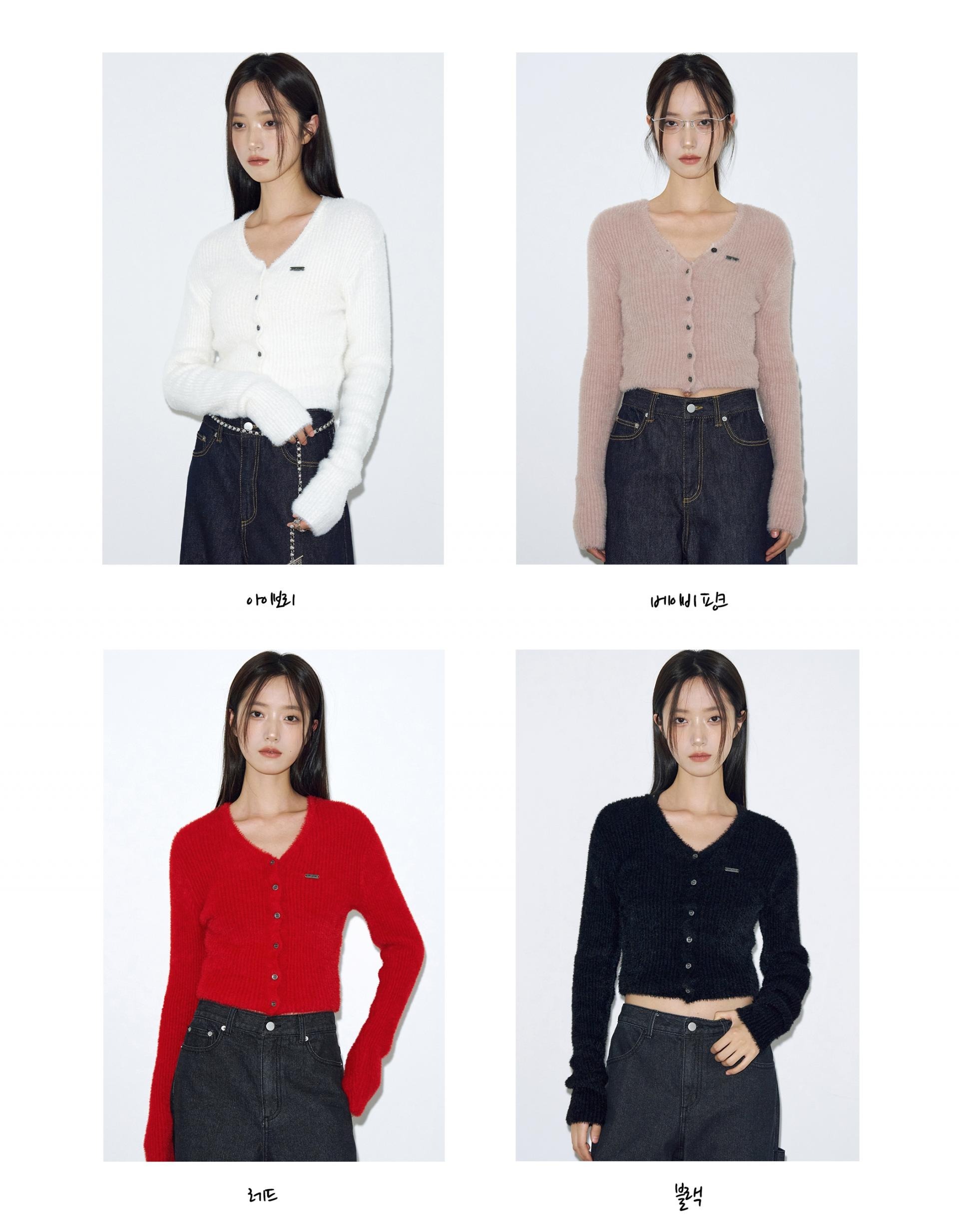 - 헤어리하고 폭신한 촉감이 매력적인 크롭 가디건입니다.