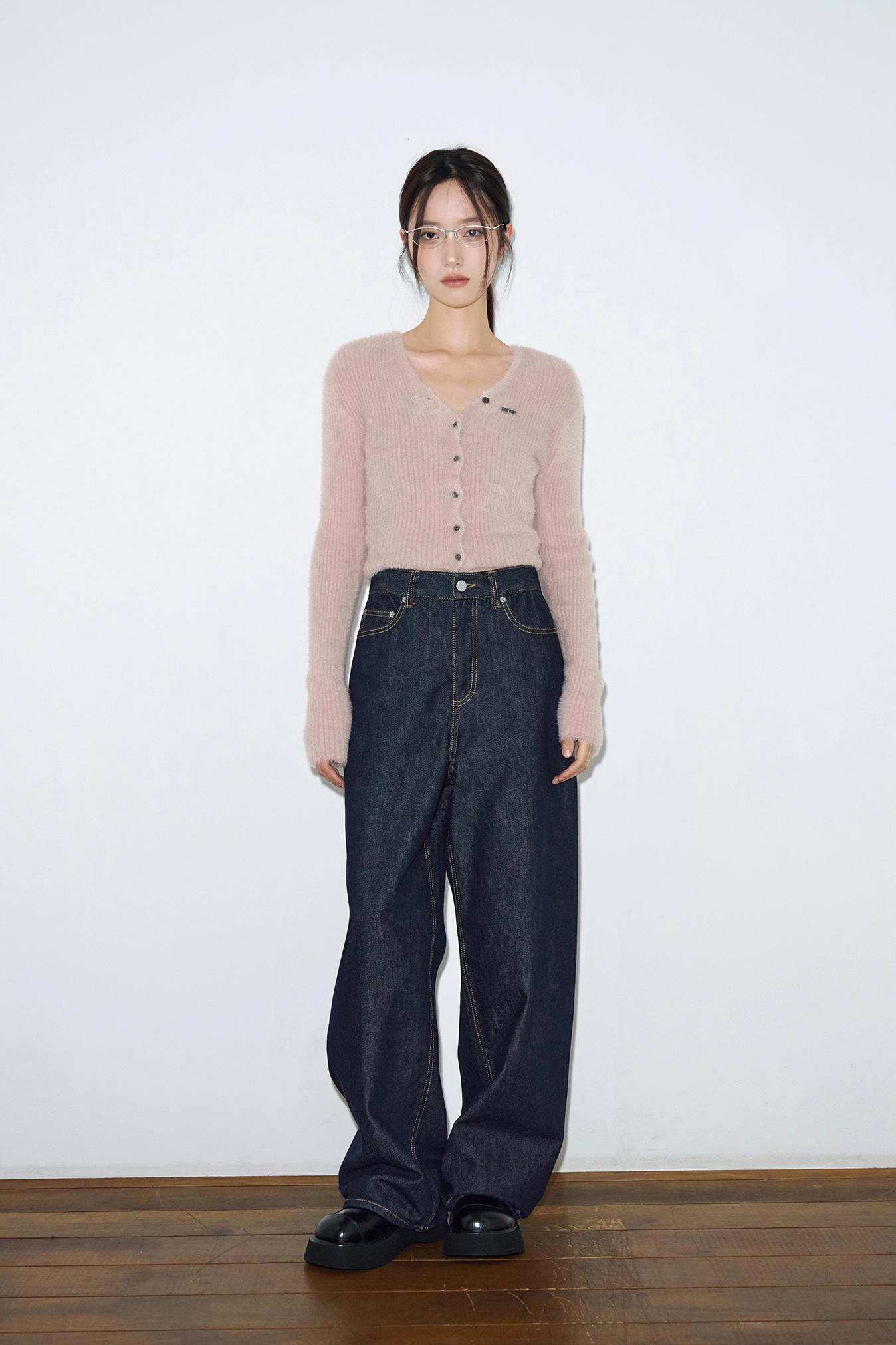 헤어리 롱 슬리브 니트 가디건 [베이비 핑크]