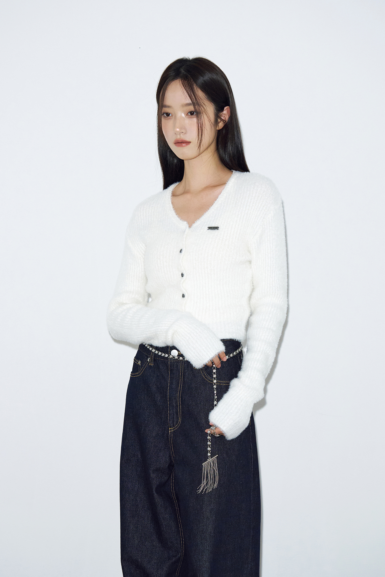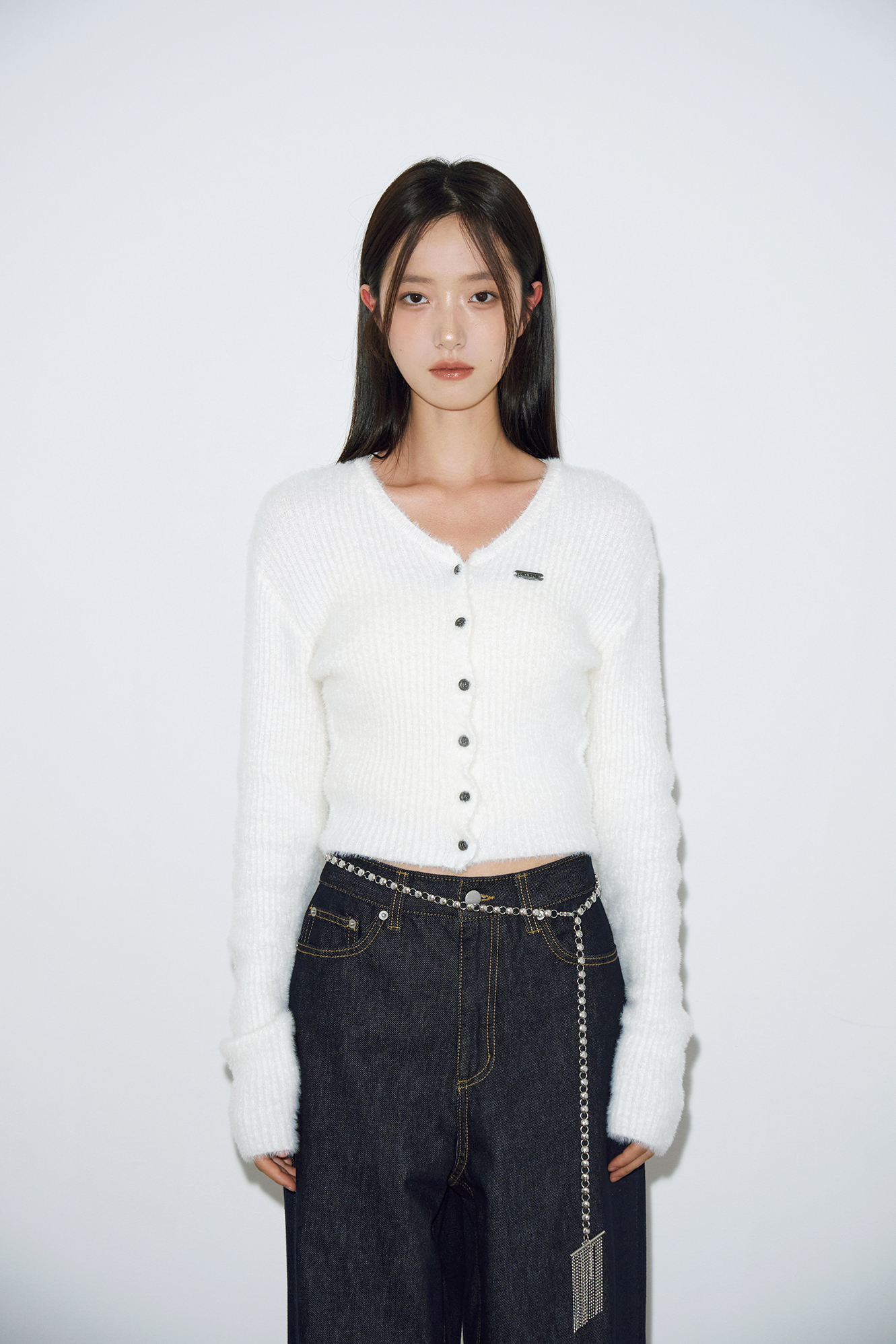- 헤어리하고 폭신한 촉감이 매력적인 크롭 가디건입니다.