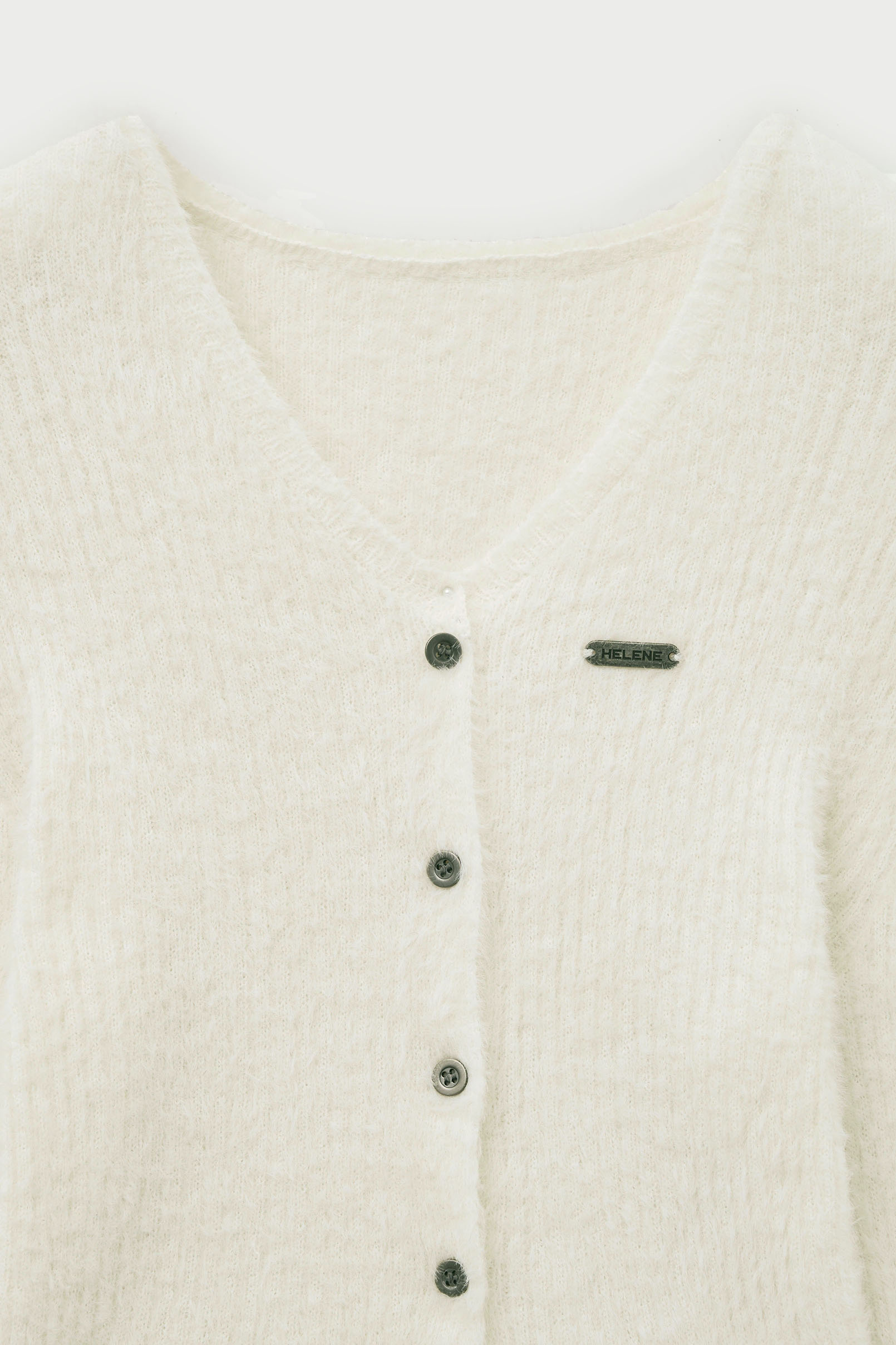 헤어리 롱 슬리브 니트 가디건 [아이보리]