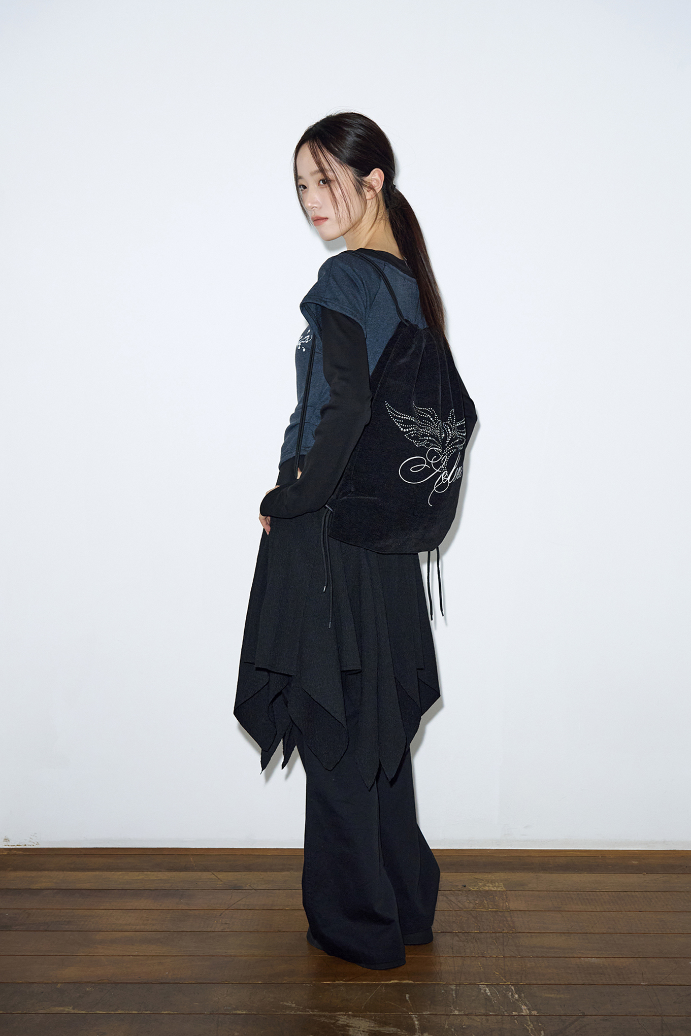 - 로고 프린팅에 엔젤 큐빅이 더해진 코듀로이 짐색입니다.