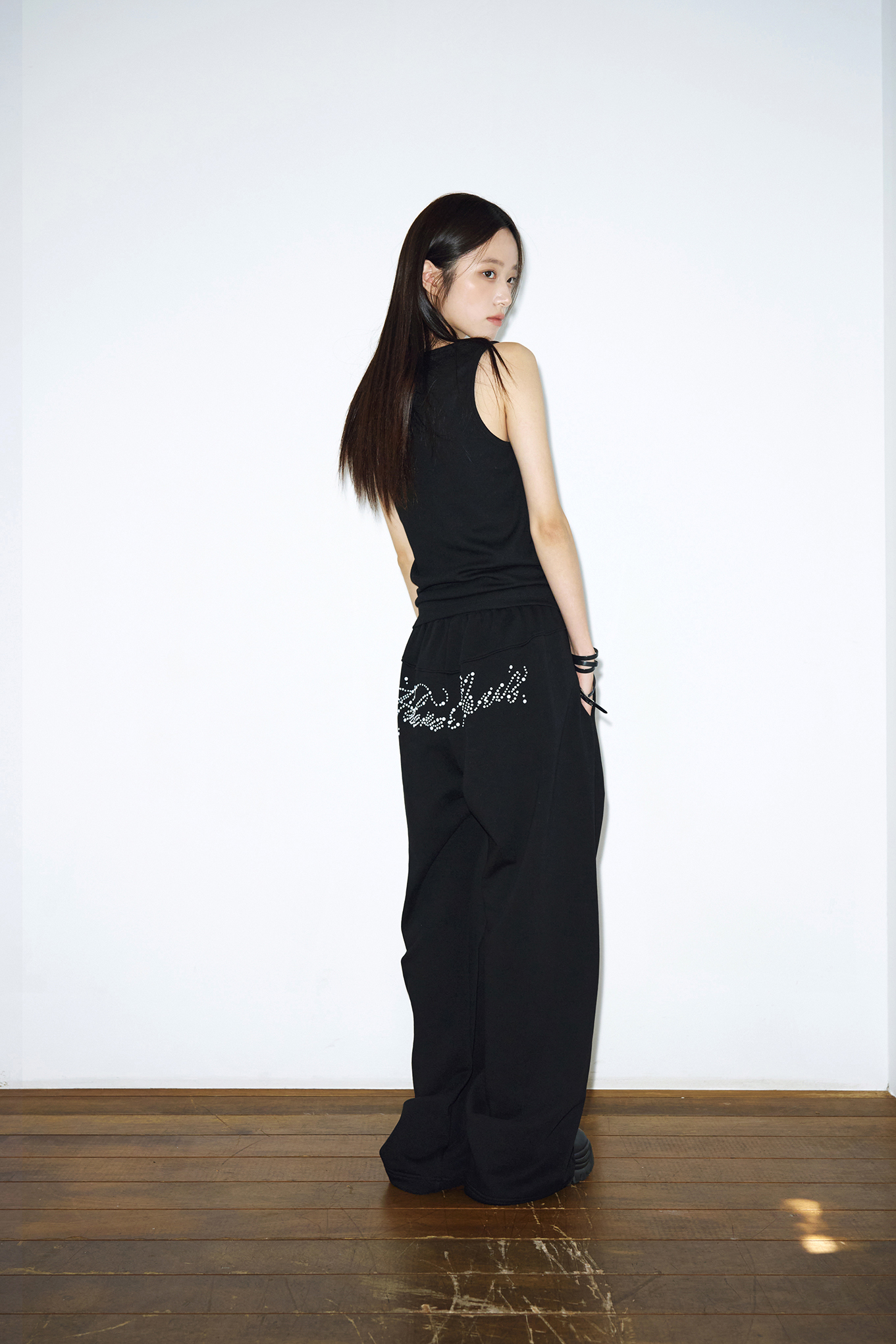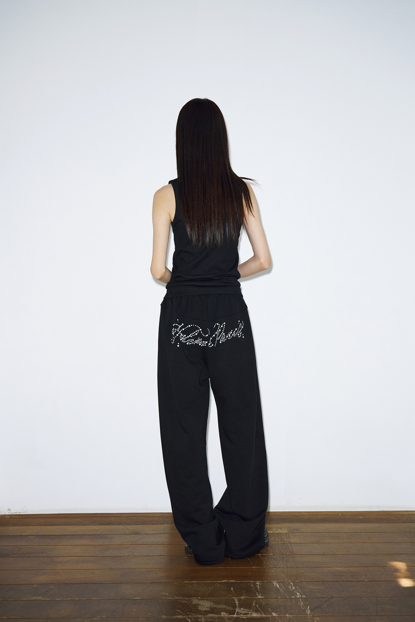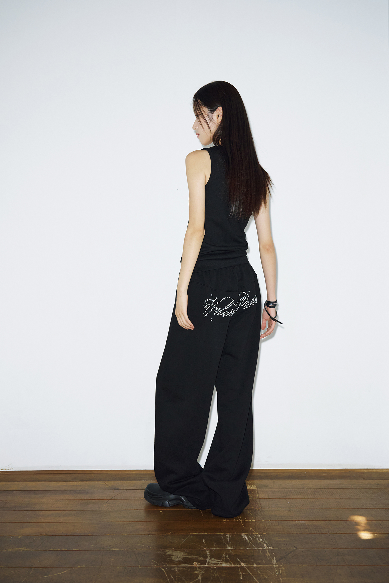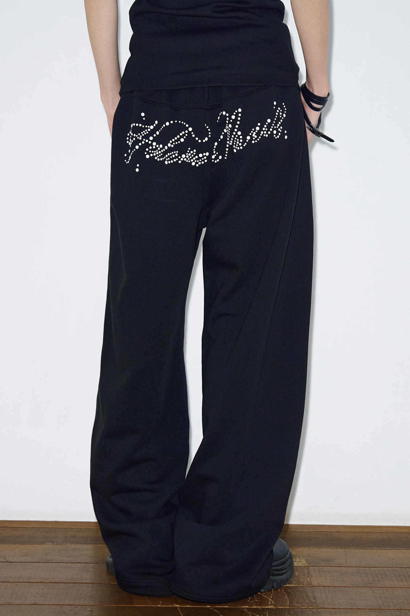 로고 웨이브 포인트 스웨트팬츠 [블랙 화이트]
