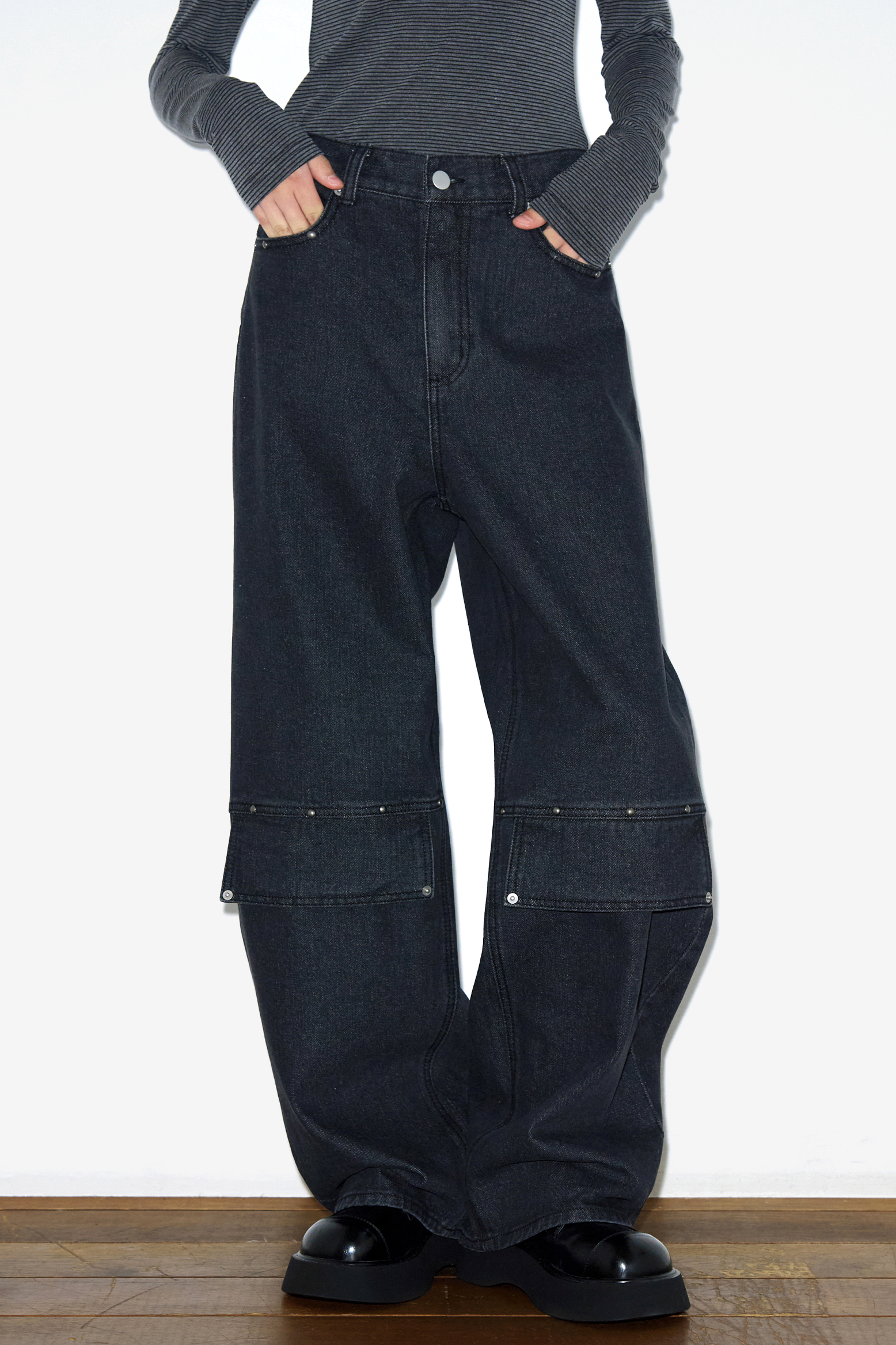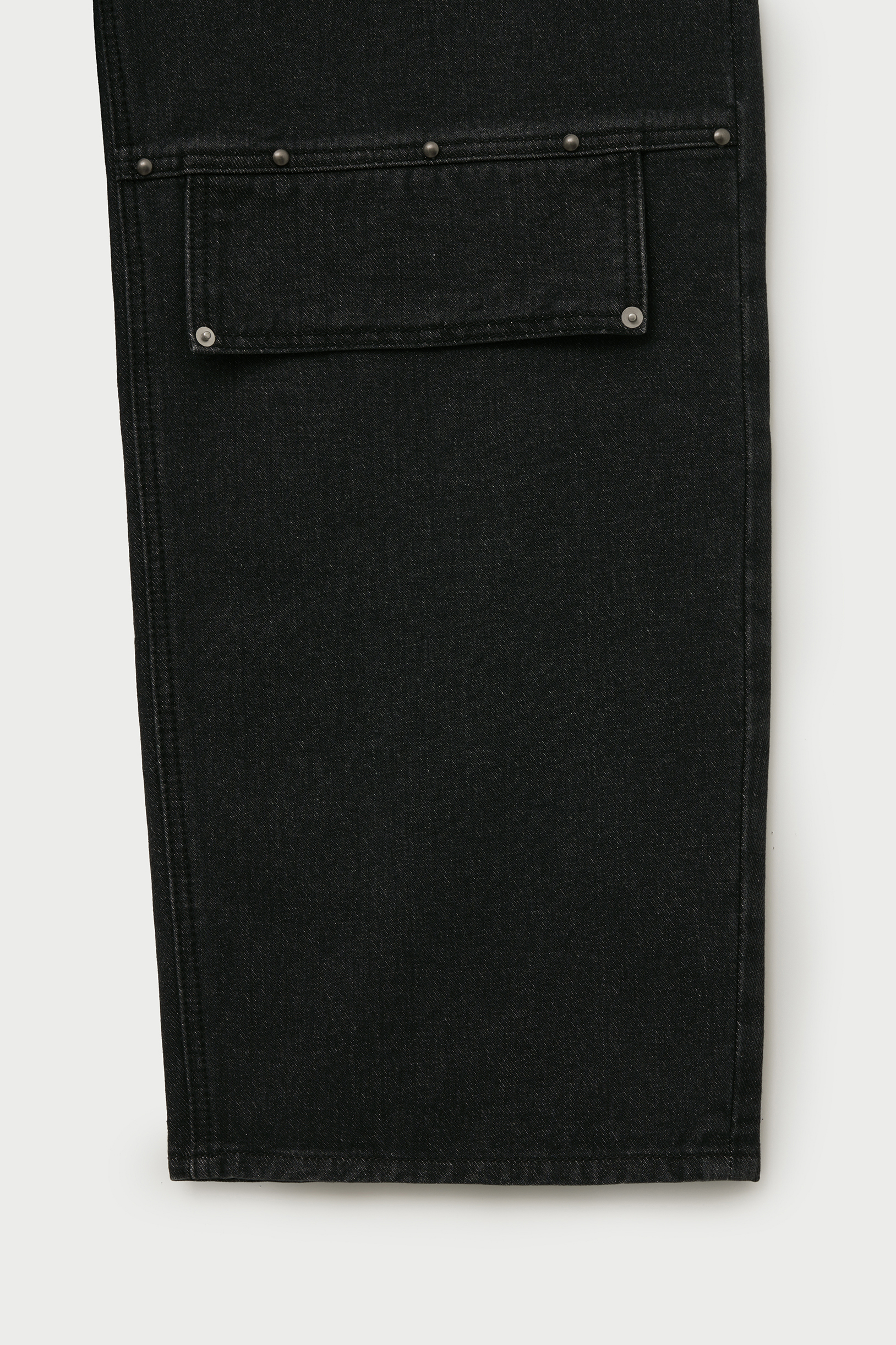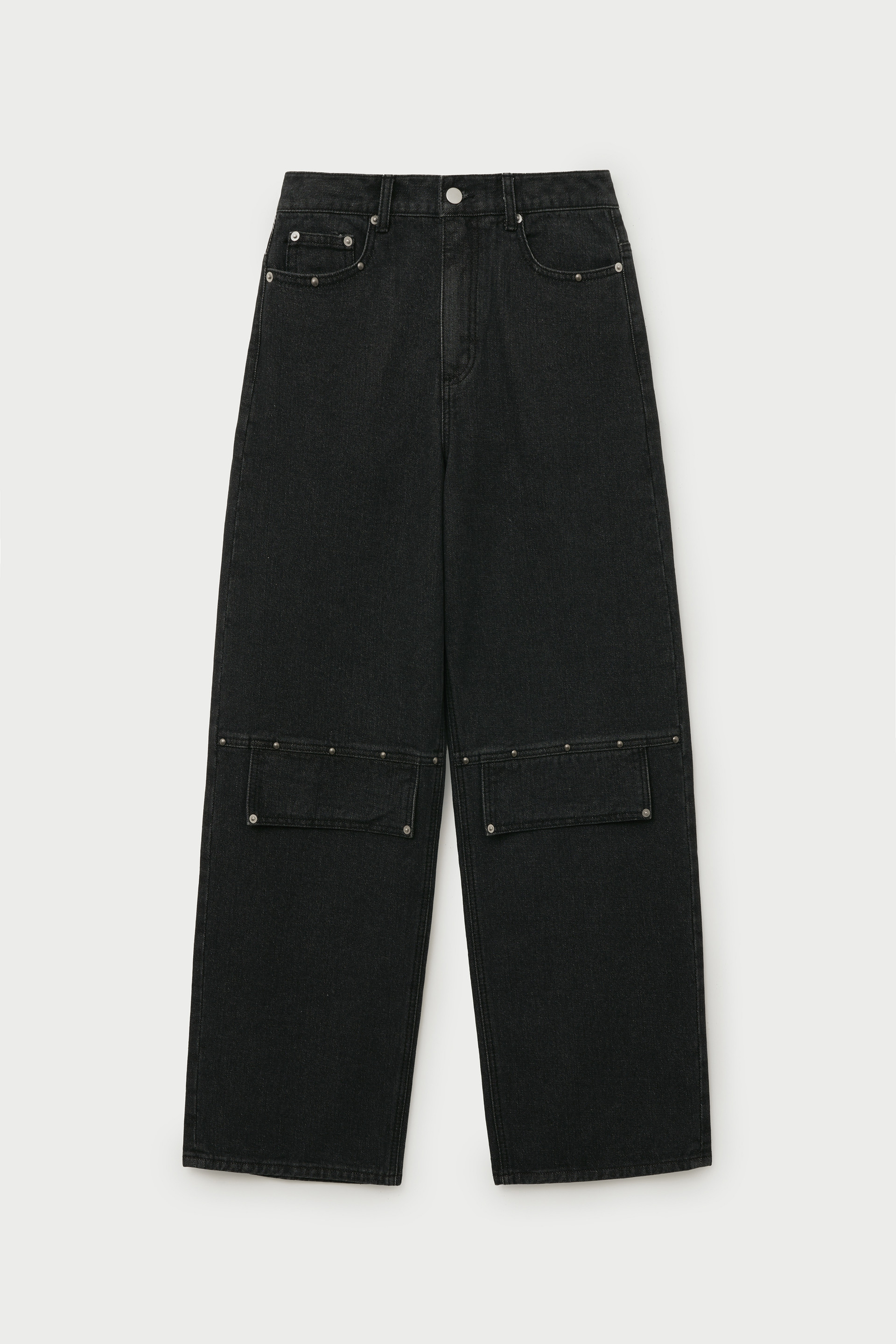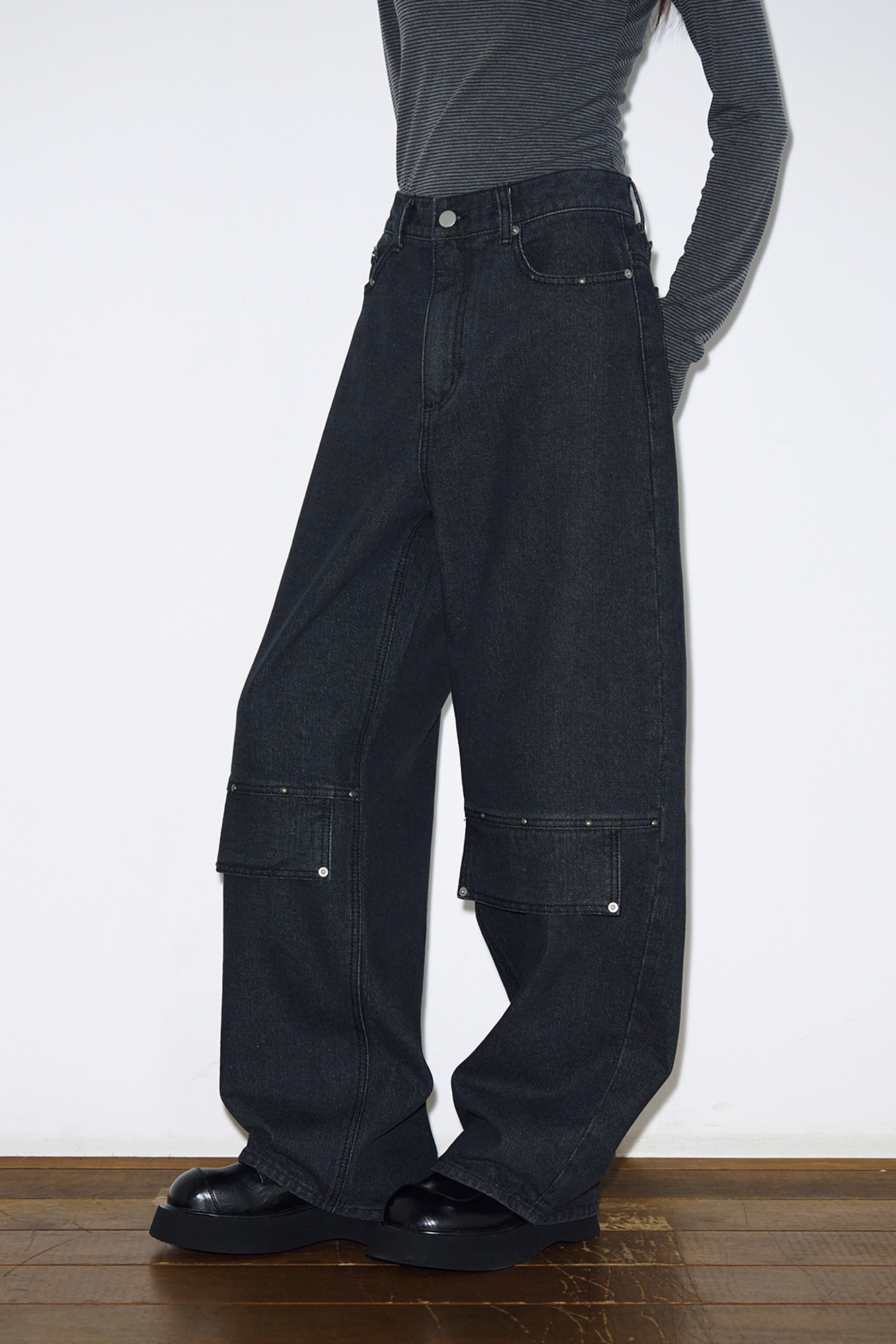 어드저스트 카펜터 스터드 와이드 팬츠 [데님 블랙 바이오]
