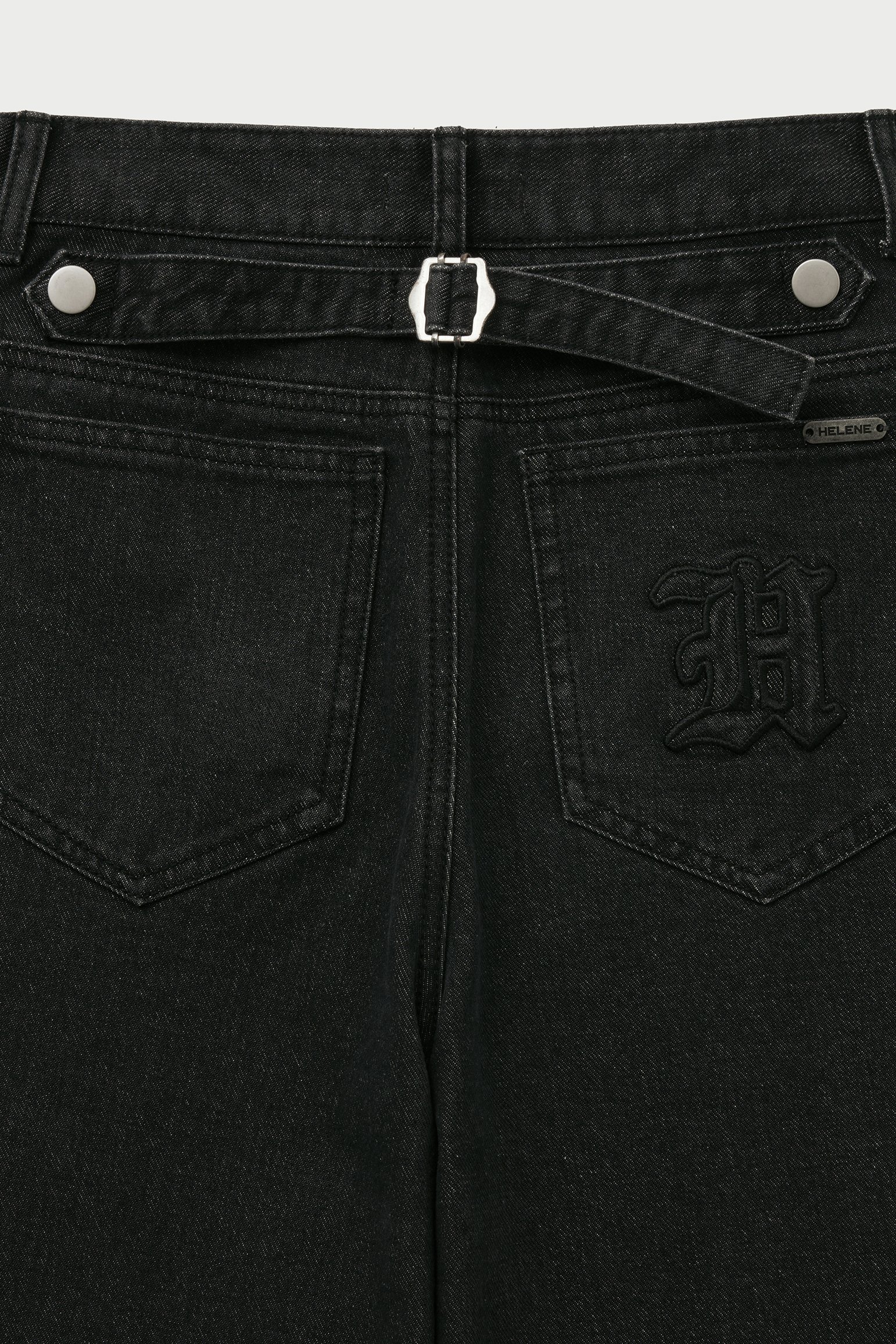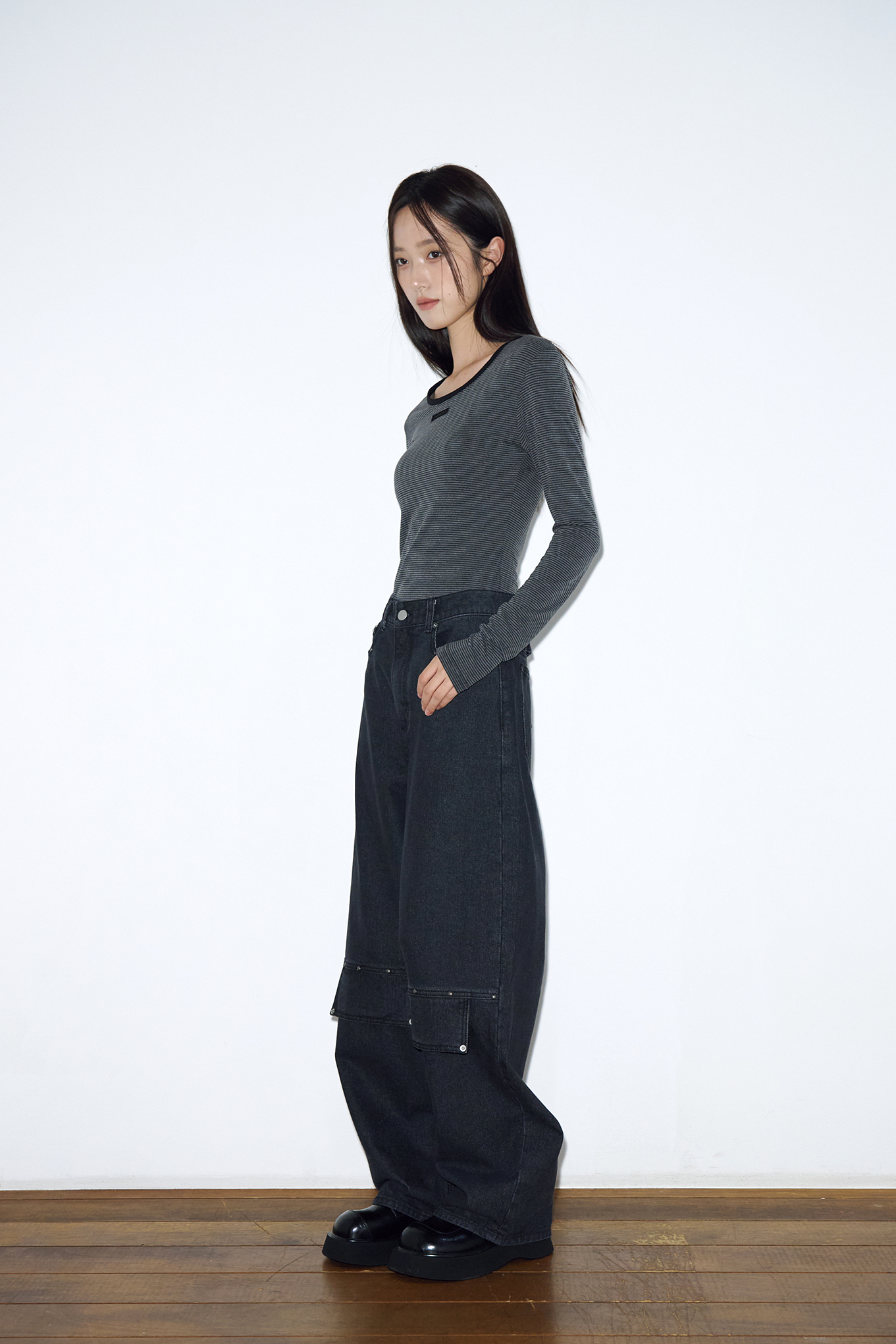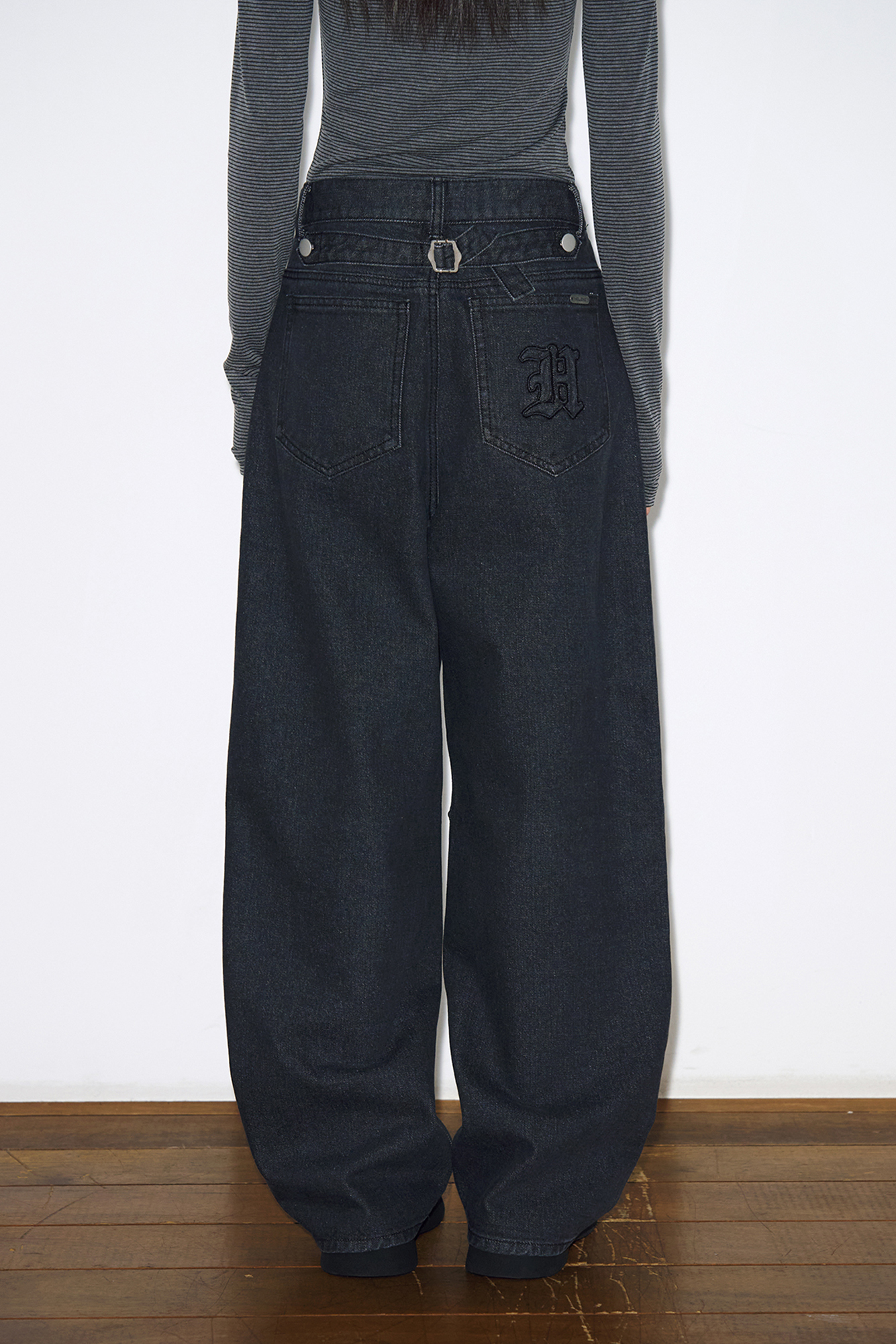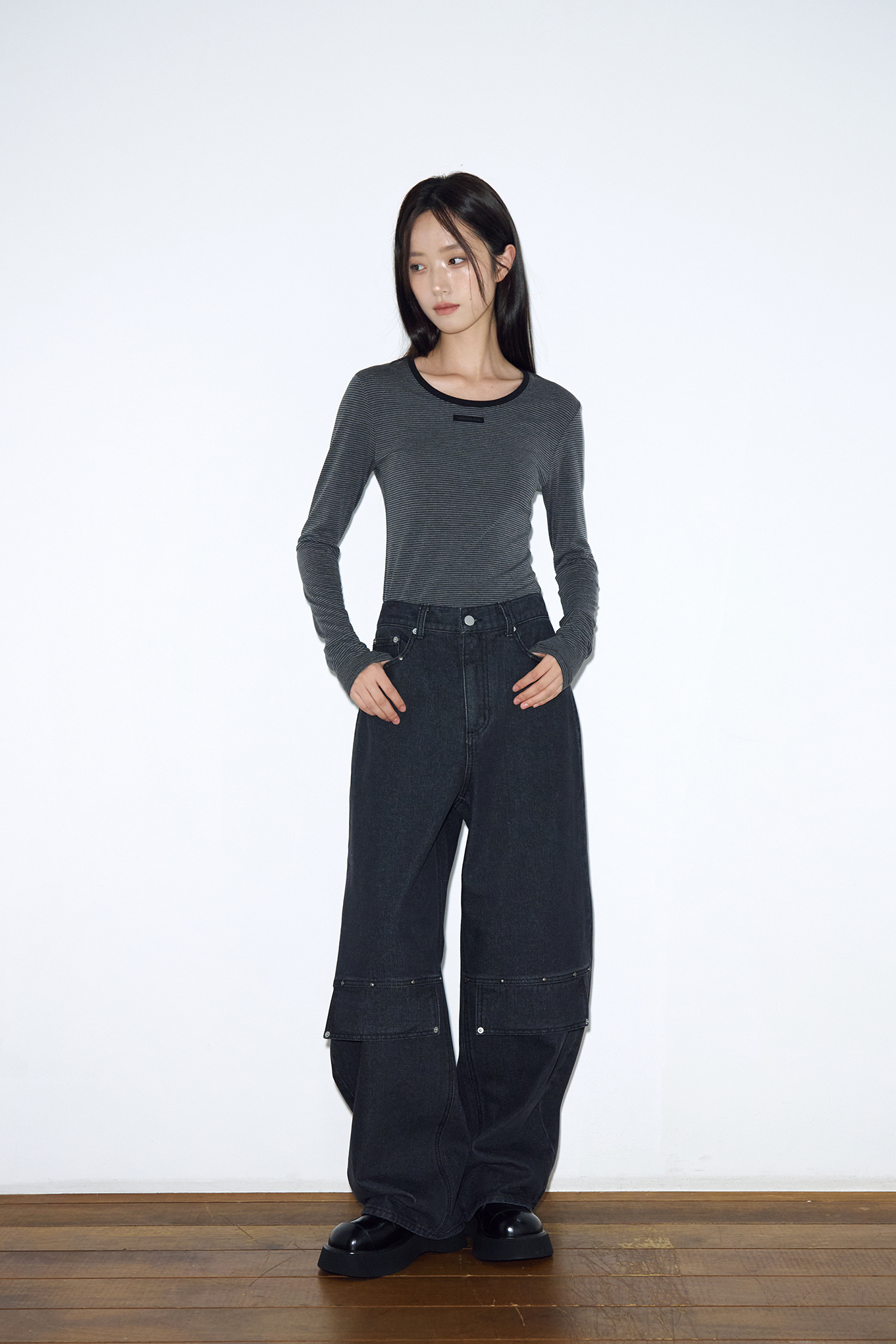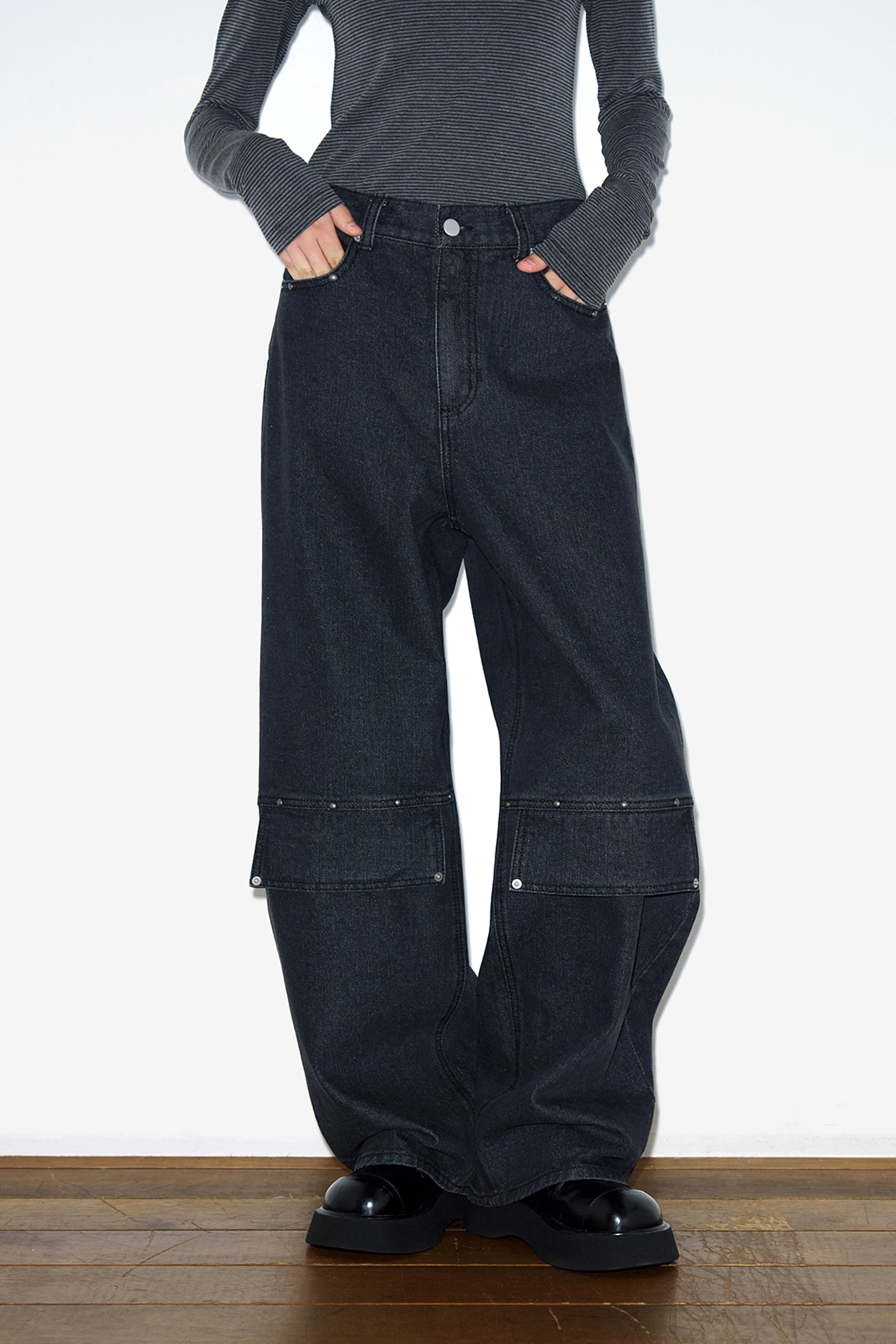 어드저스트 카펜터 스터드 와이드 팬츠 [데님 블랙 바이오]