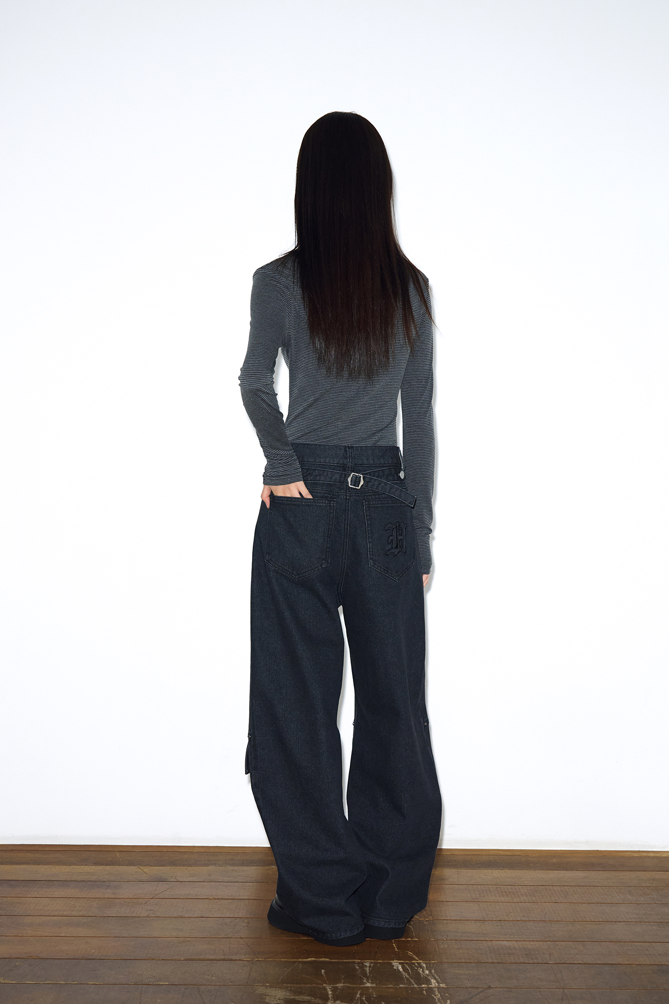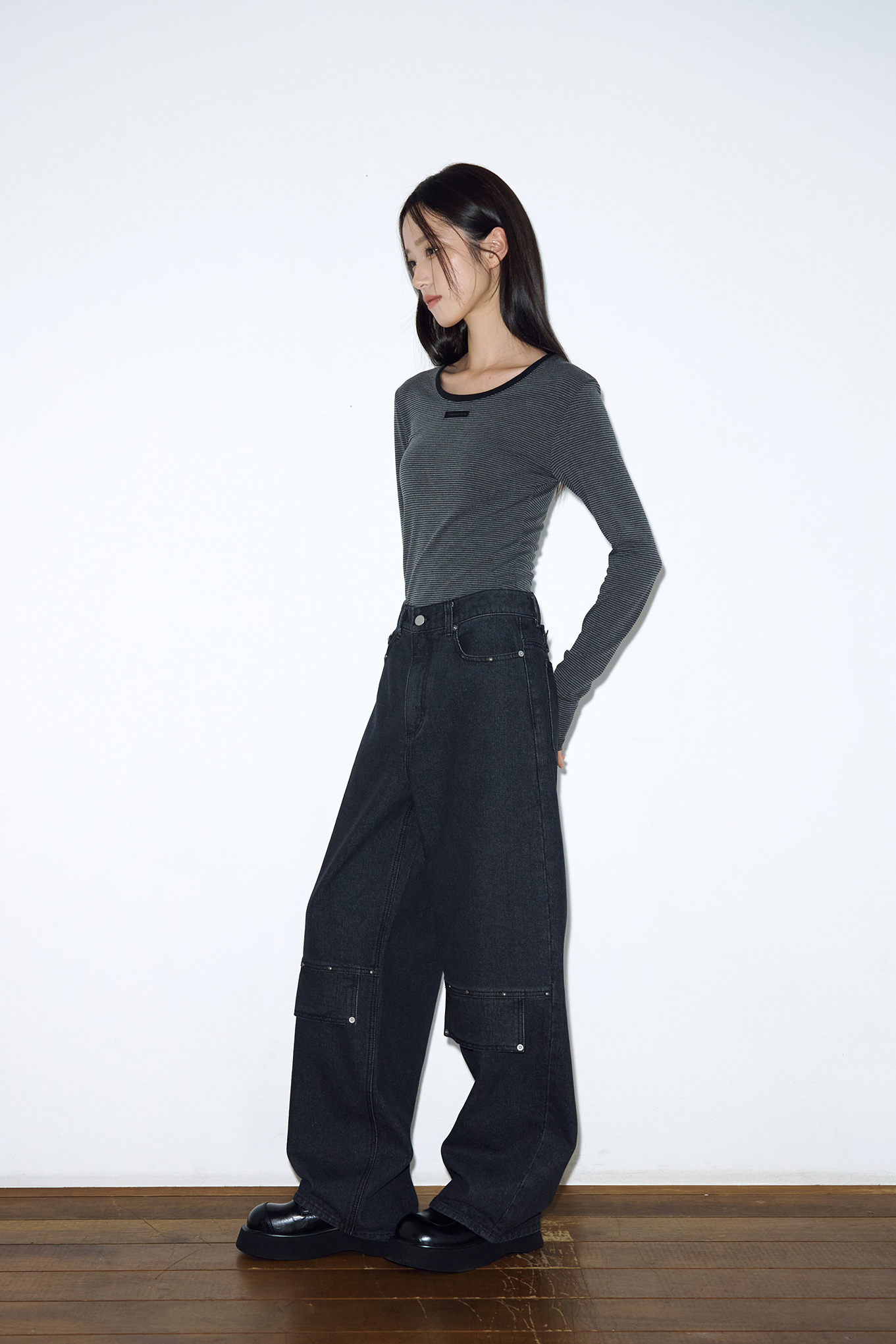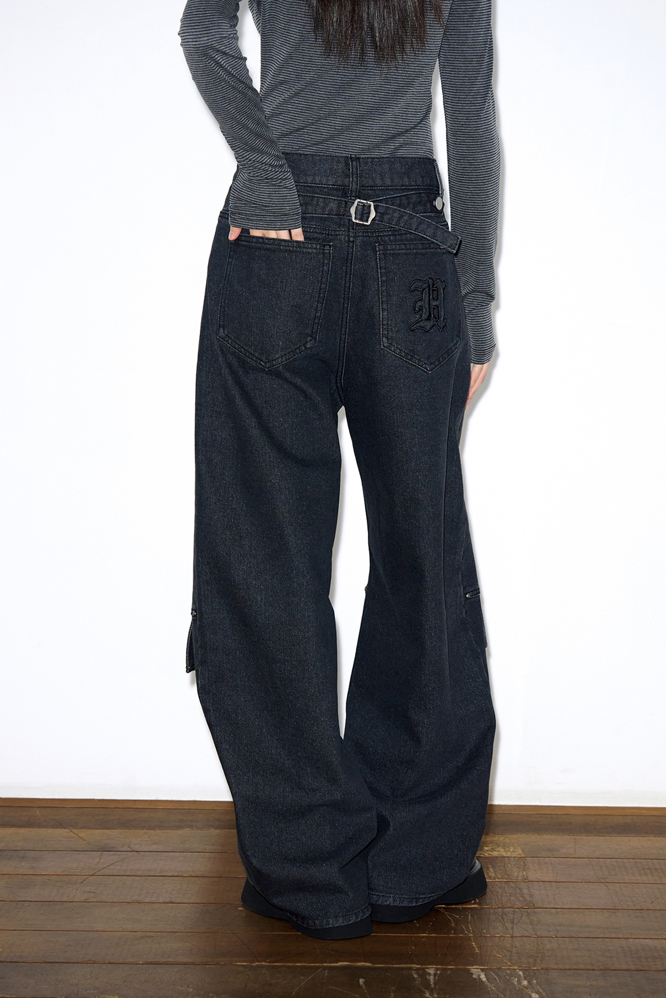 - 플랩 디테일로 러프한 매력을 담은 와이드 데님 팬츠입니다.