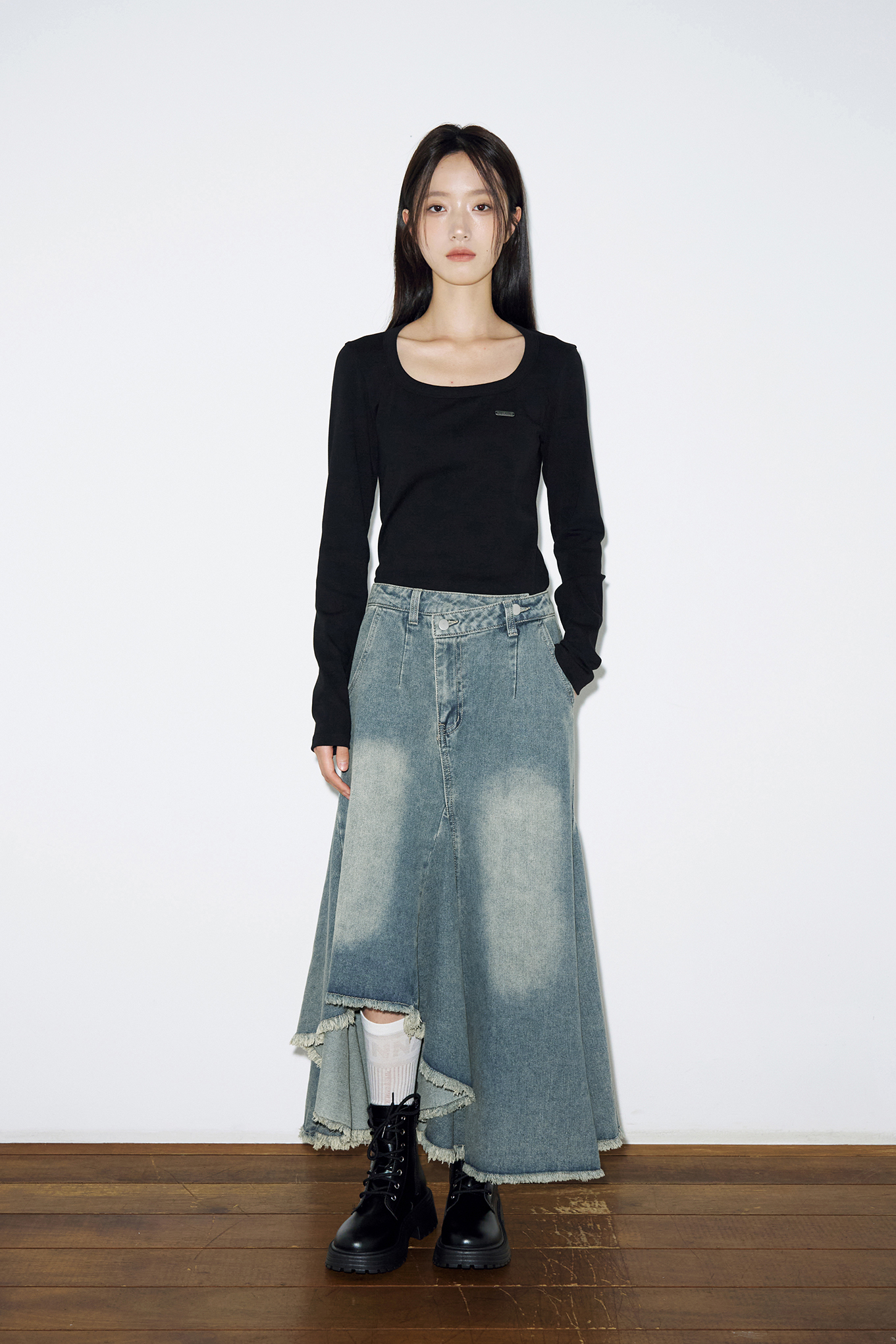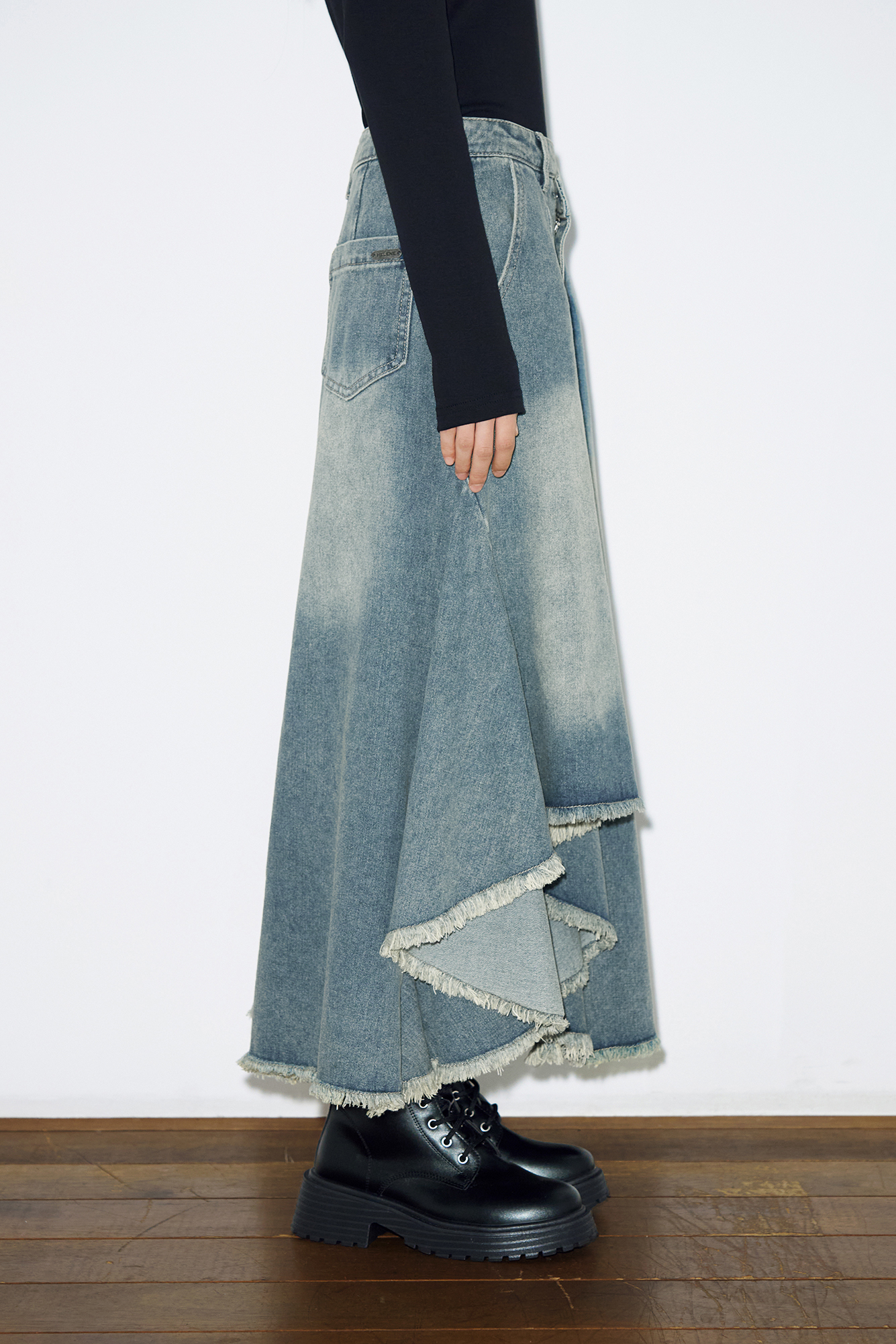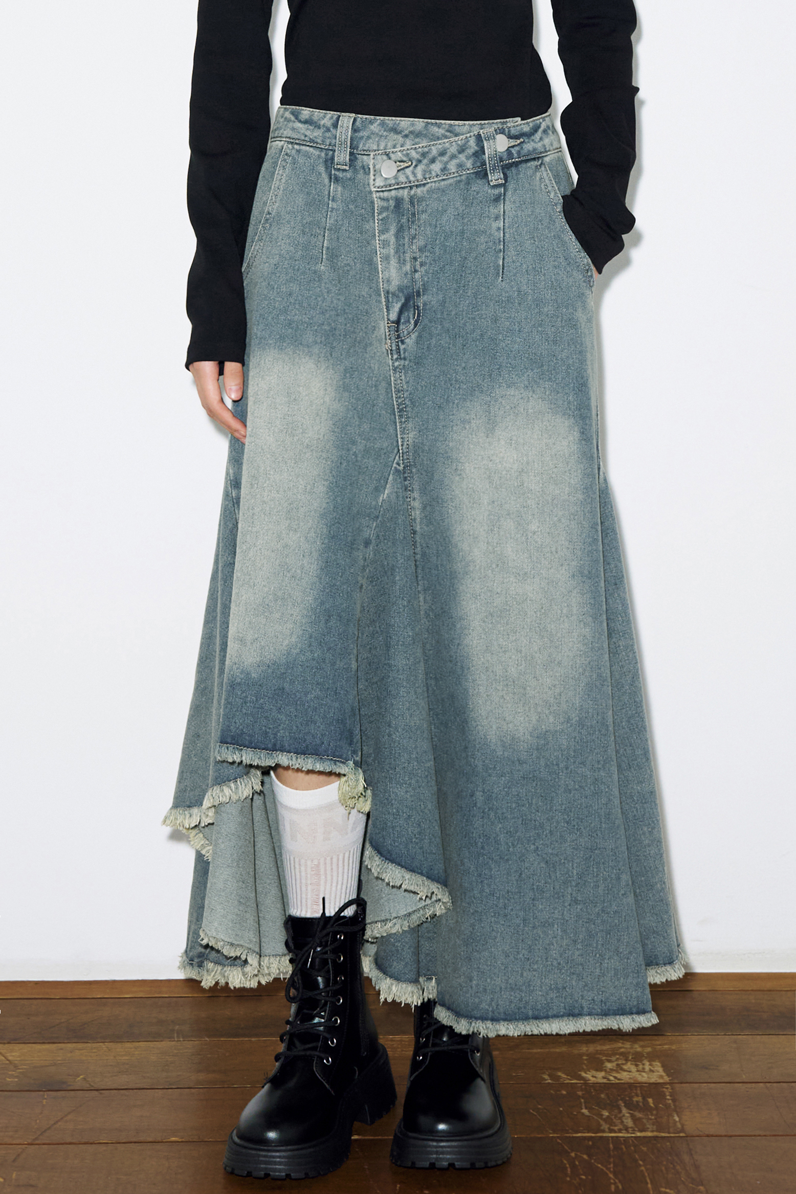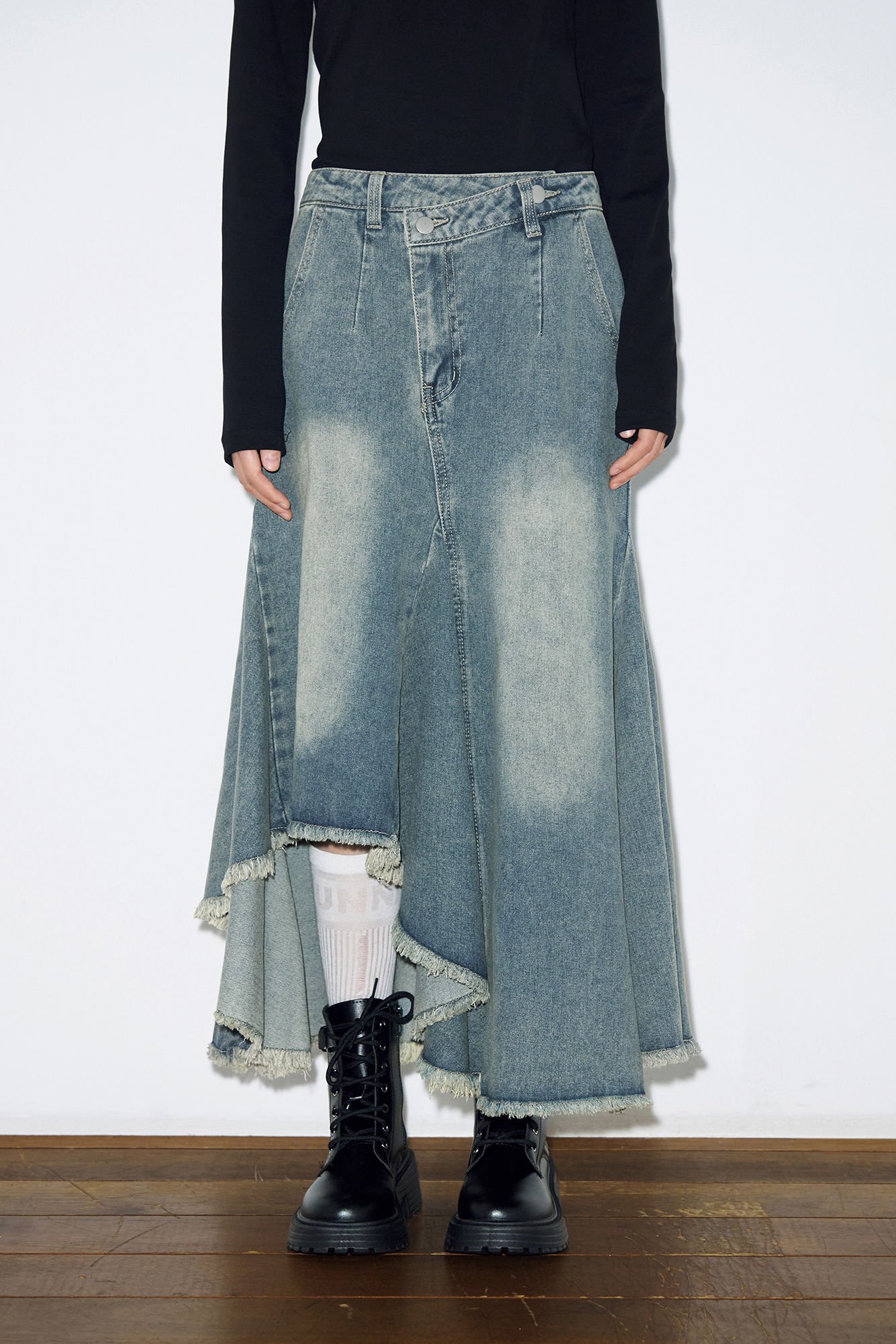 언벨런스 데님 롱 스커트 [인디고 블루]