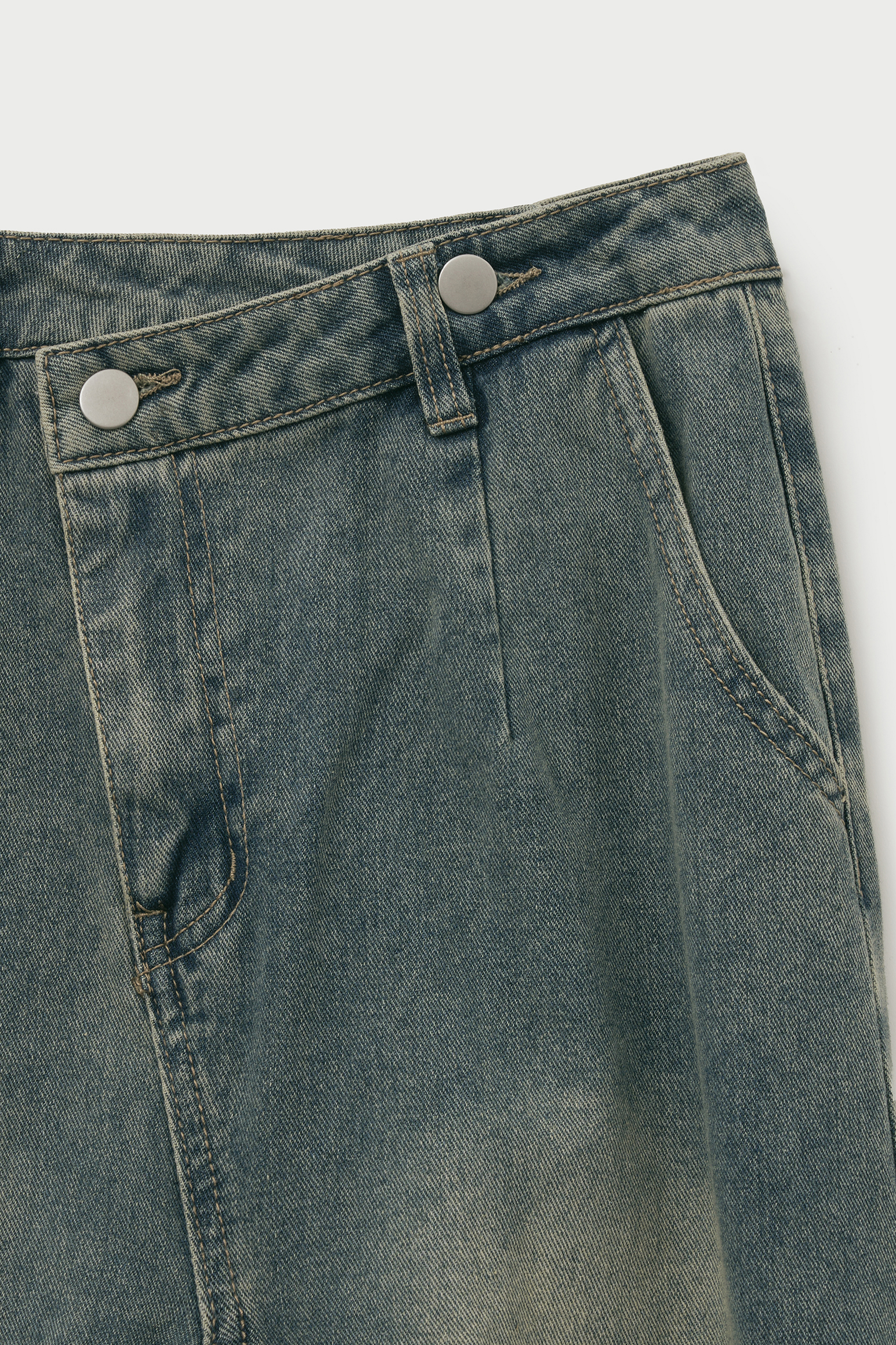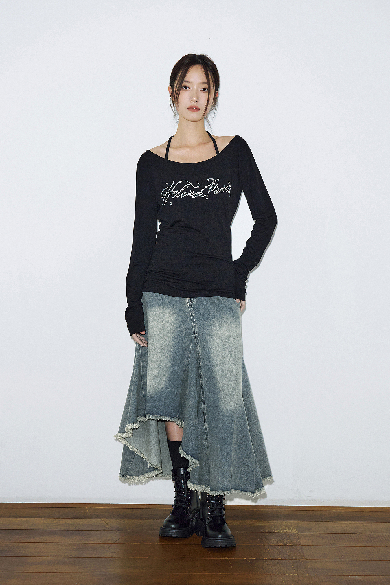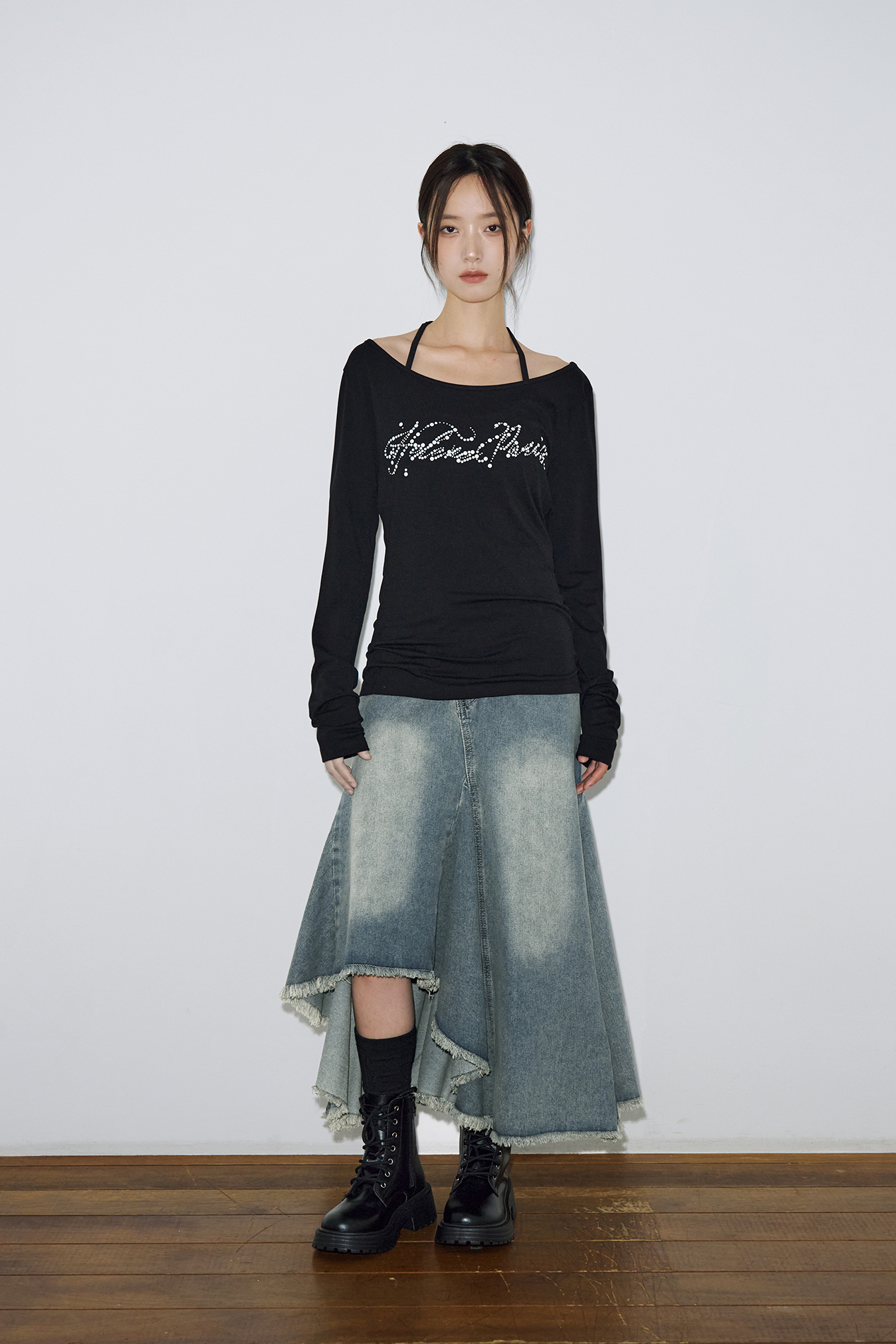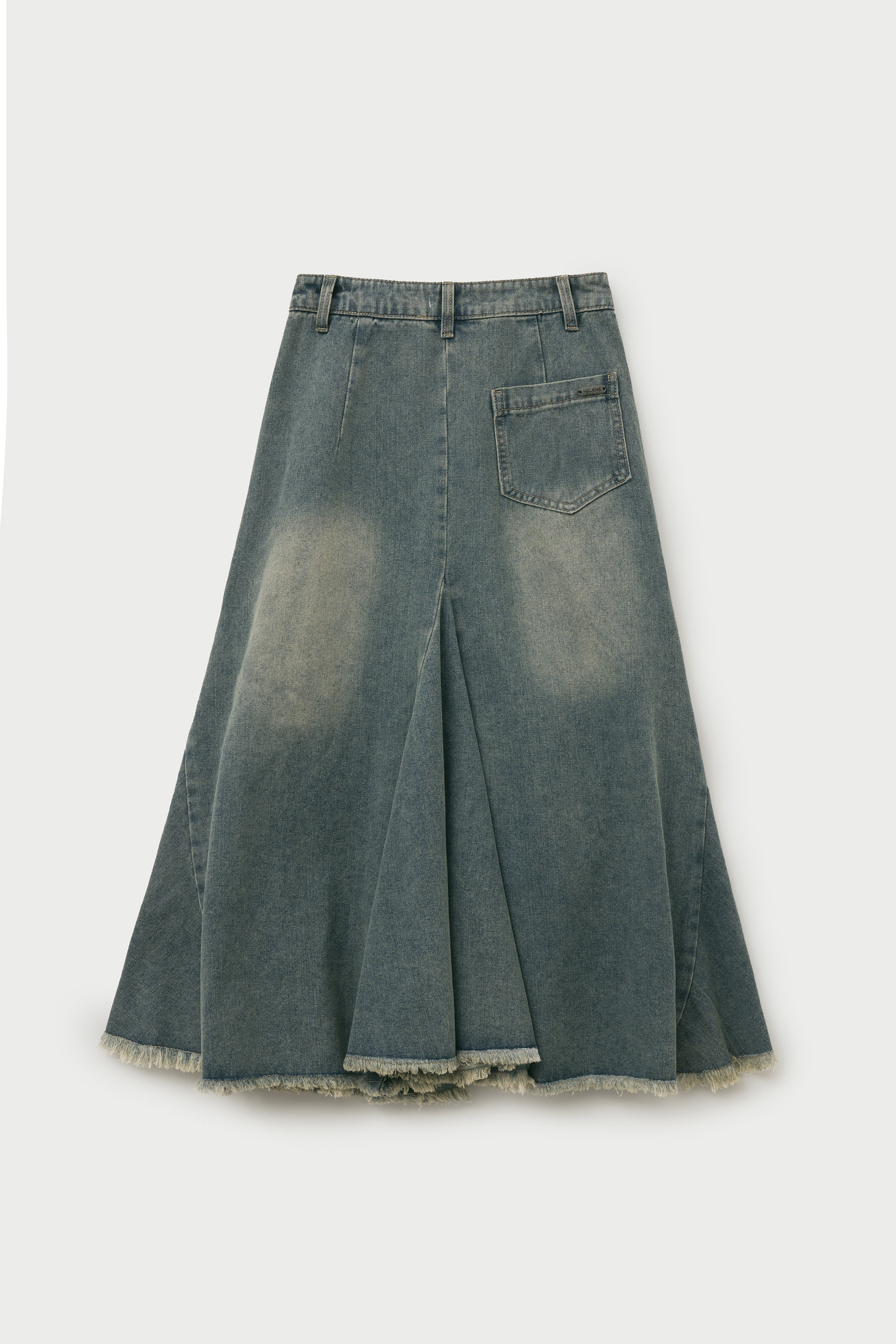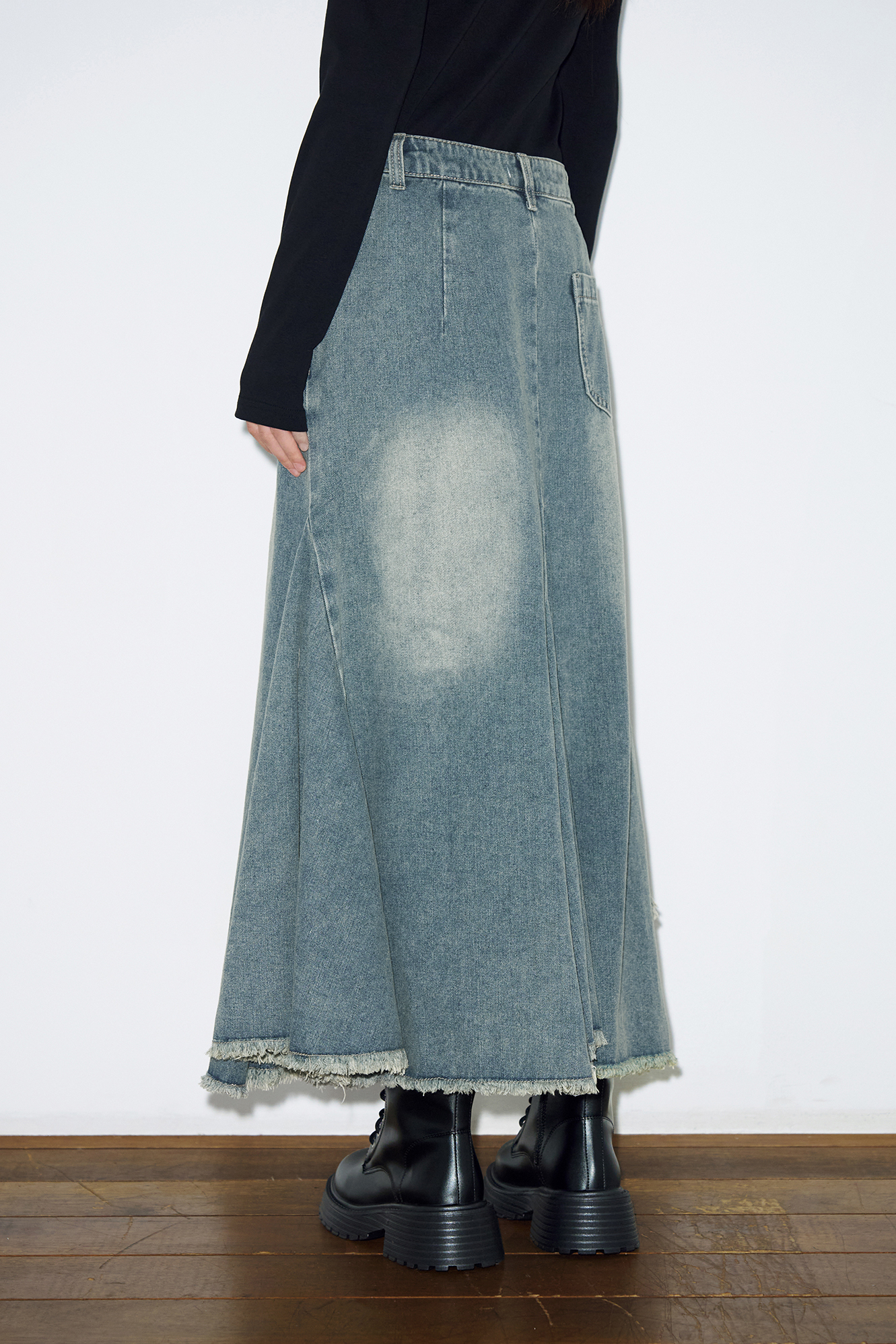 언벨런스 데님 롱 스커트 [인디고 블루]