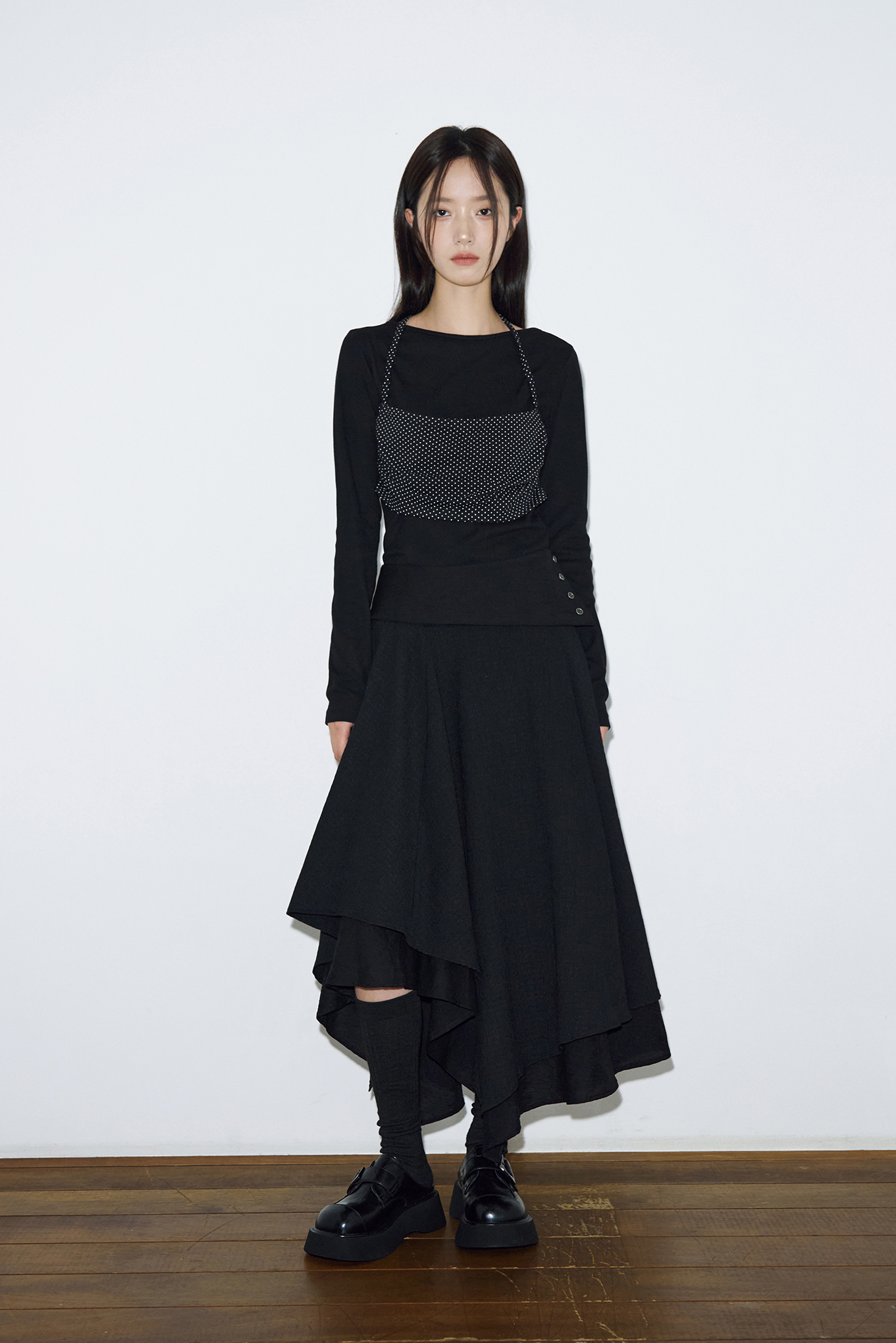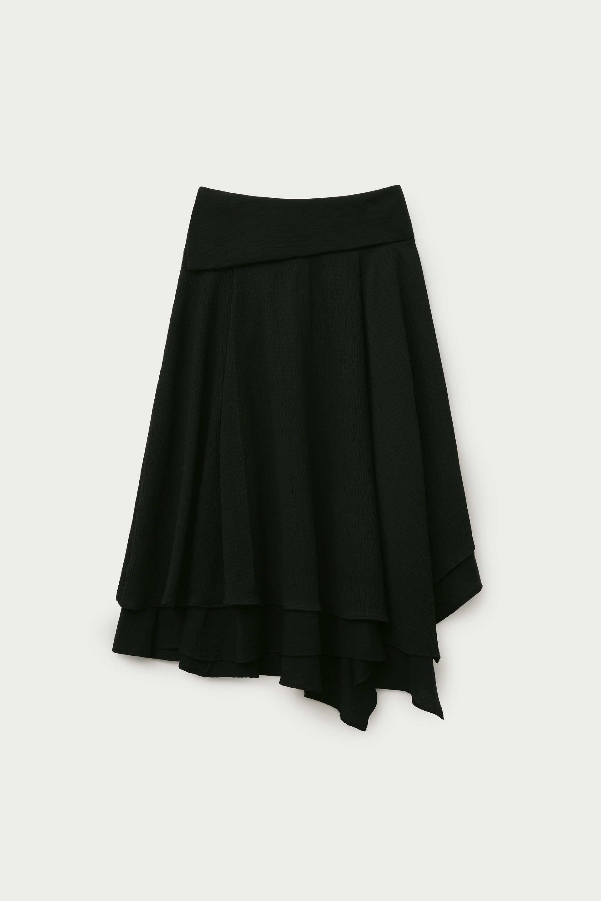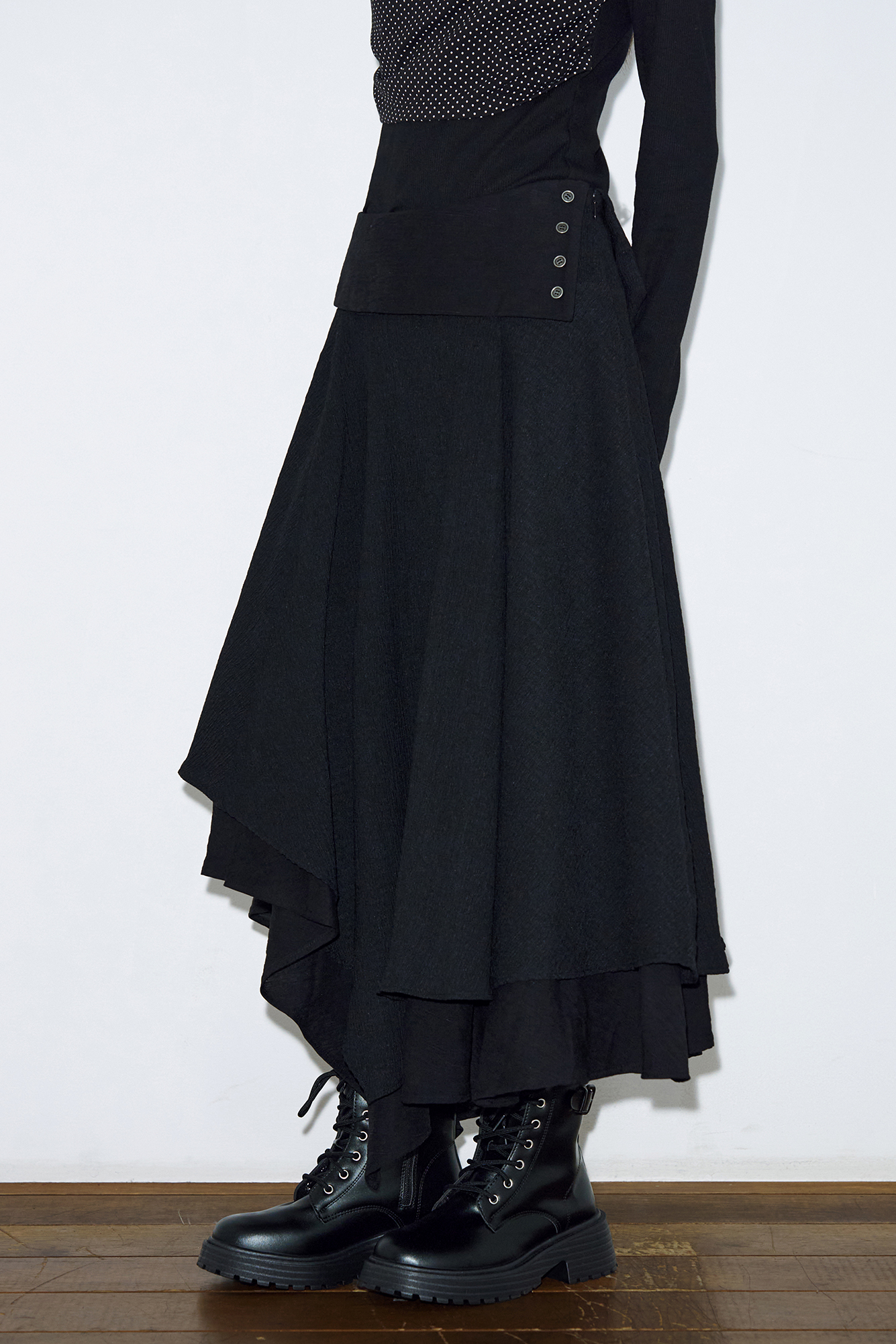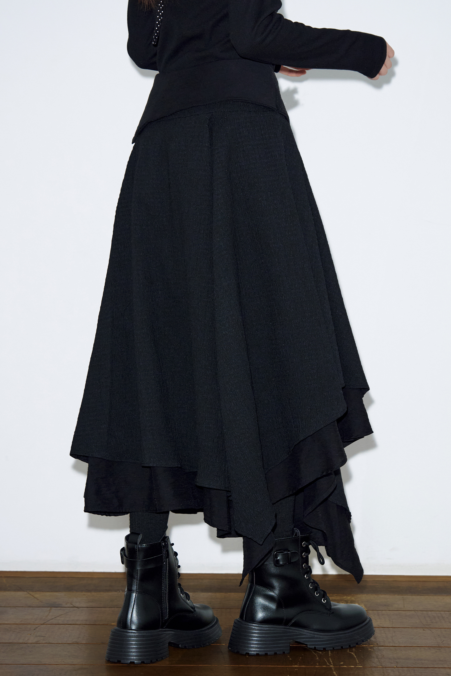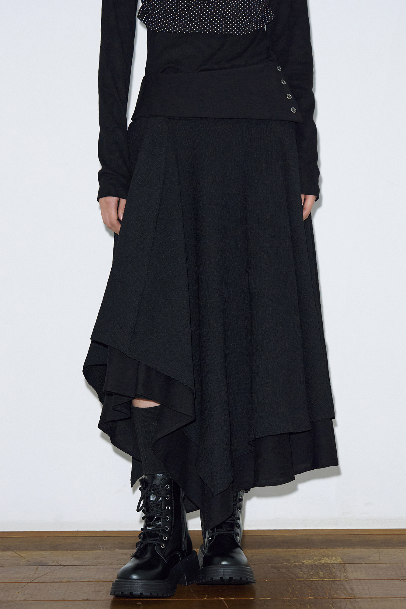 크리즈 레이어드 언벨런스 롱 스커트 [블랙]