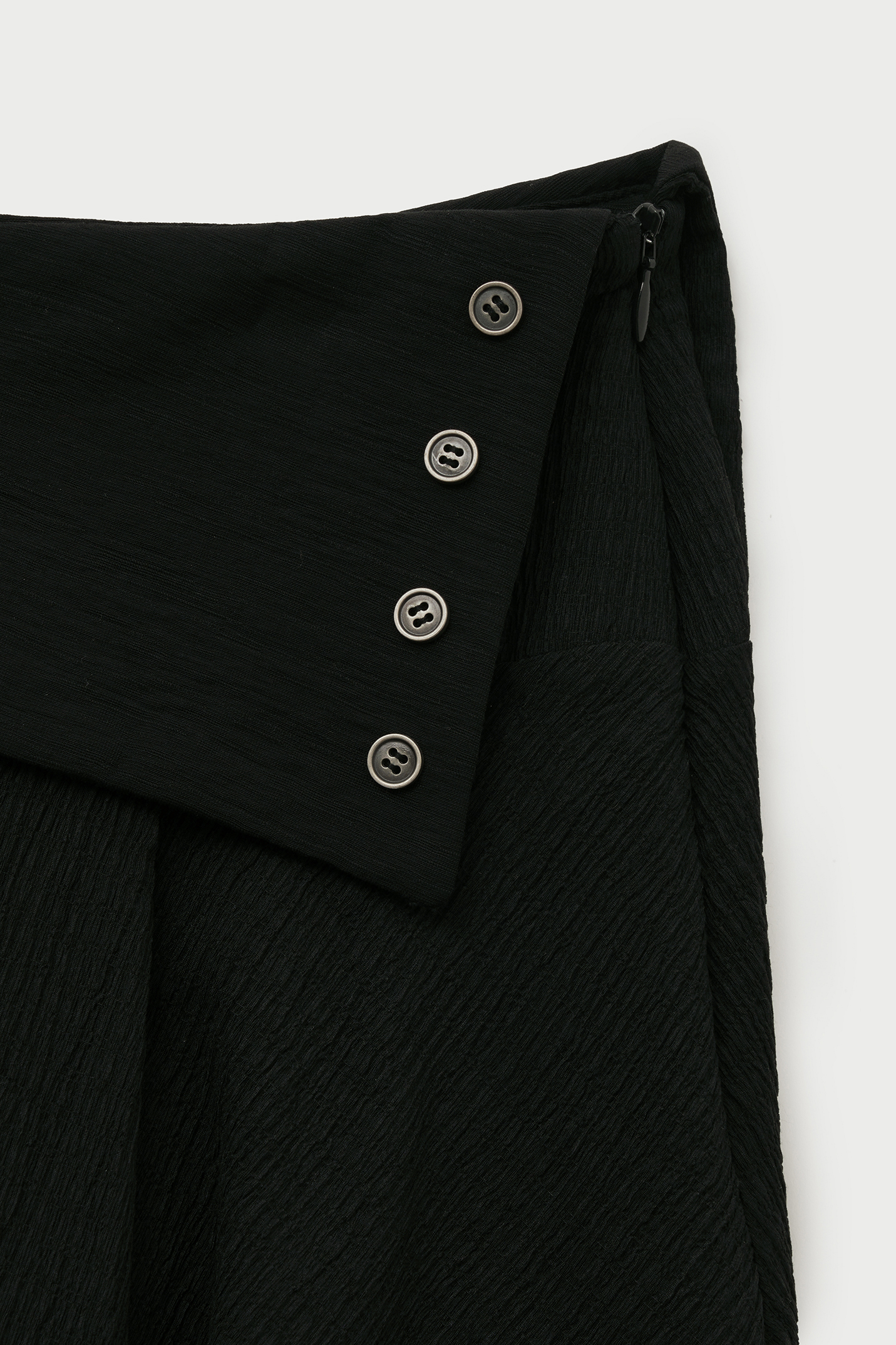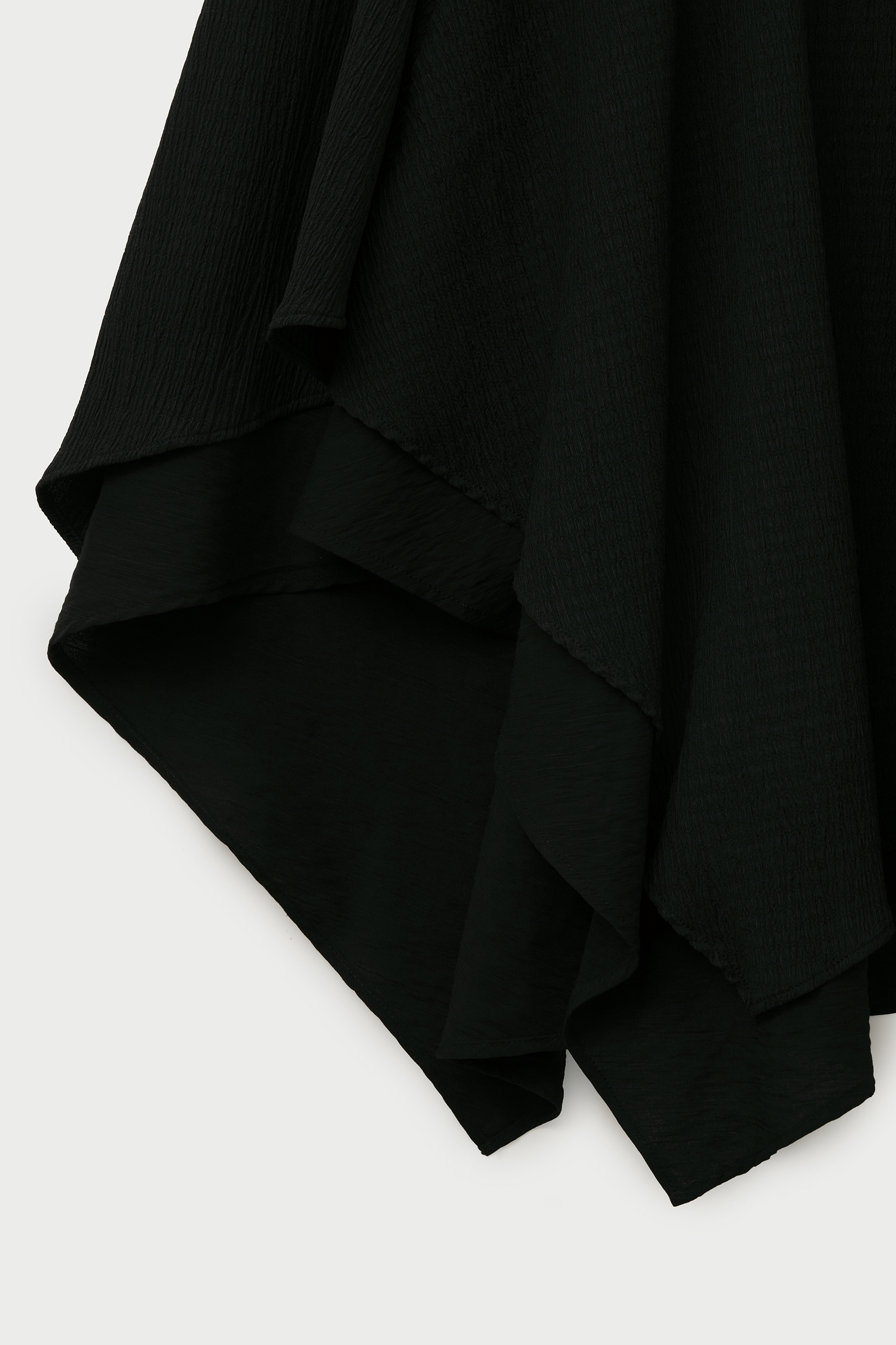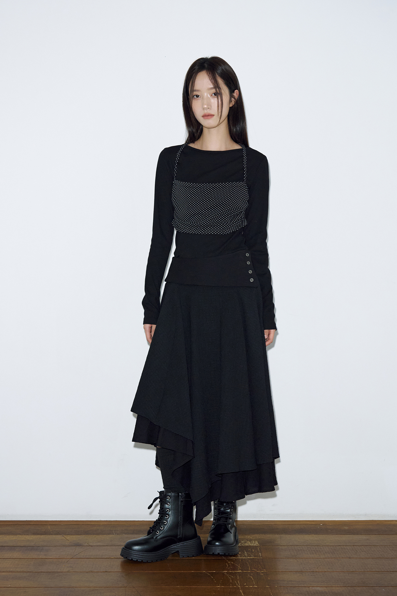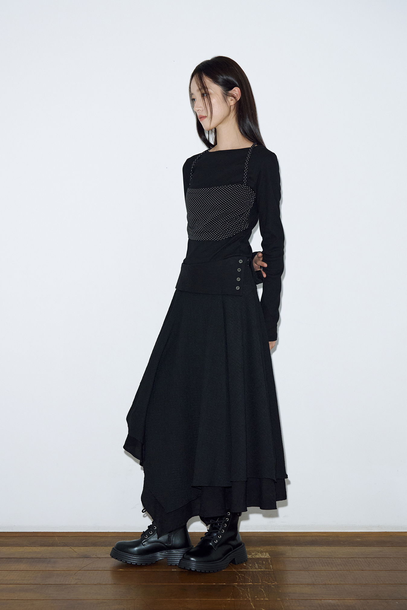 크리즈 레이어드 언벨런스 롱 스커트 [블랙]