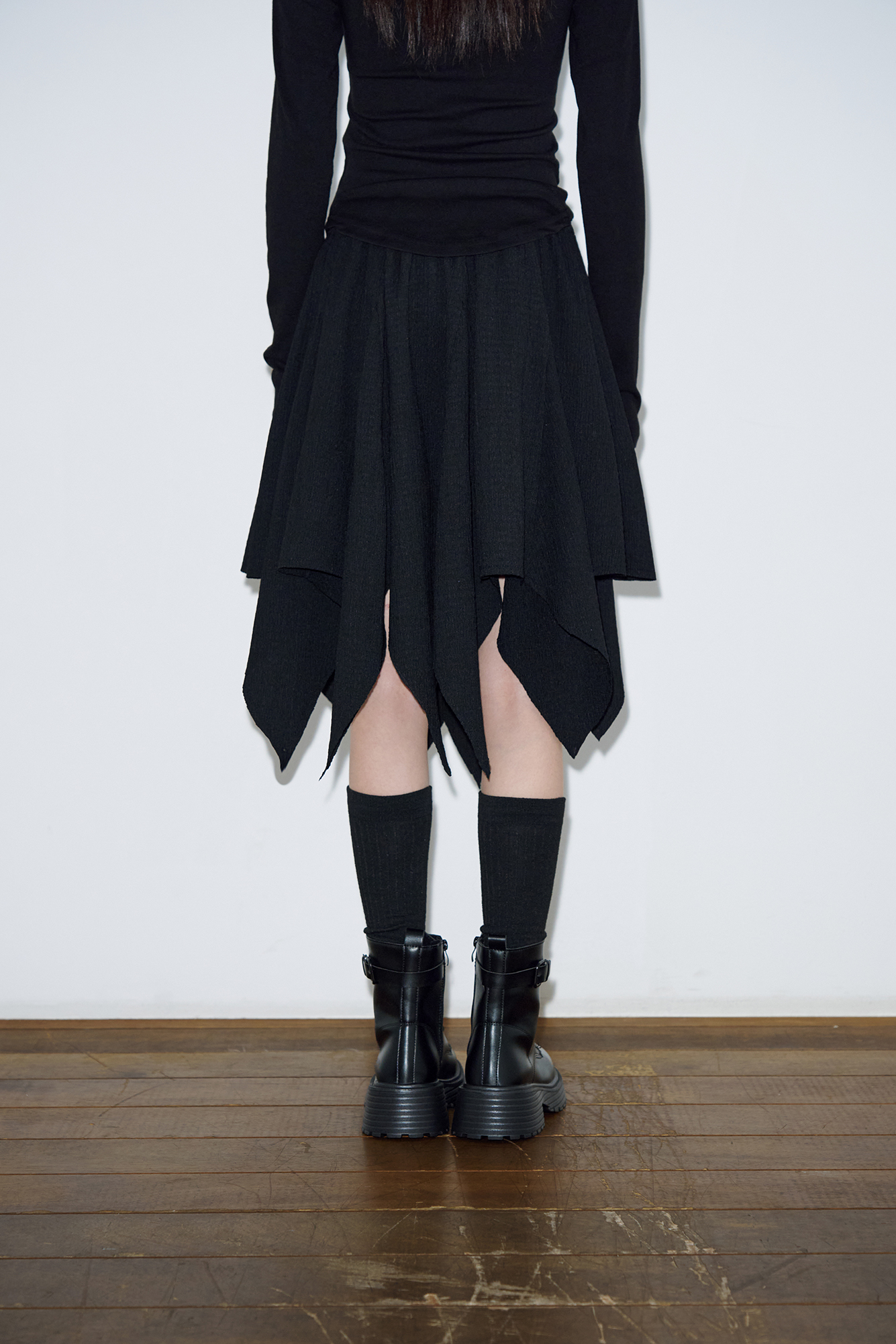 크리즈 플레어 숏 스커트 [블랙]