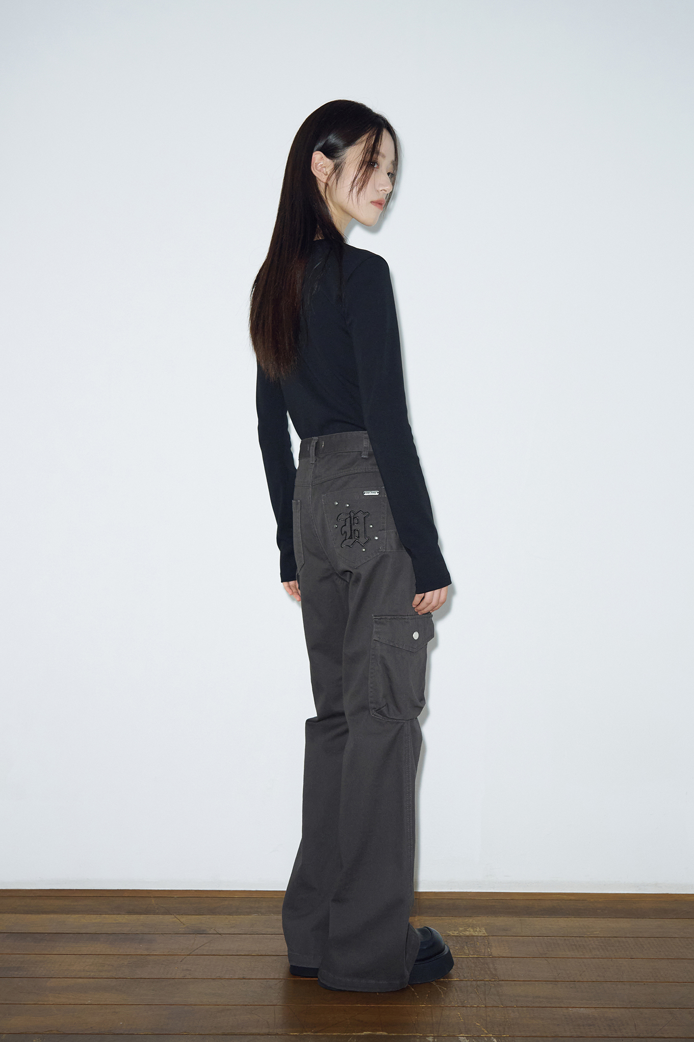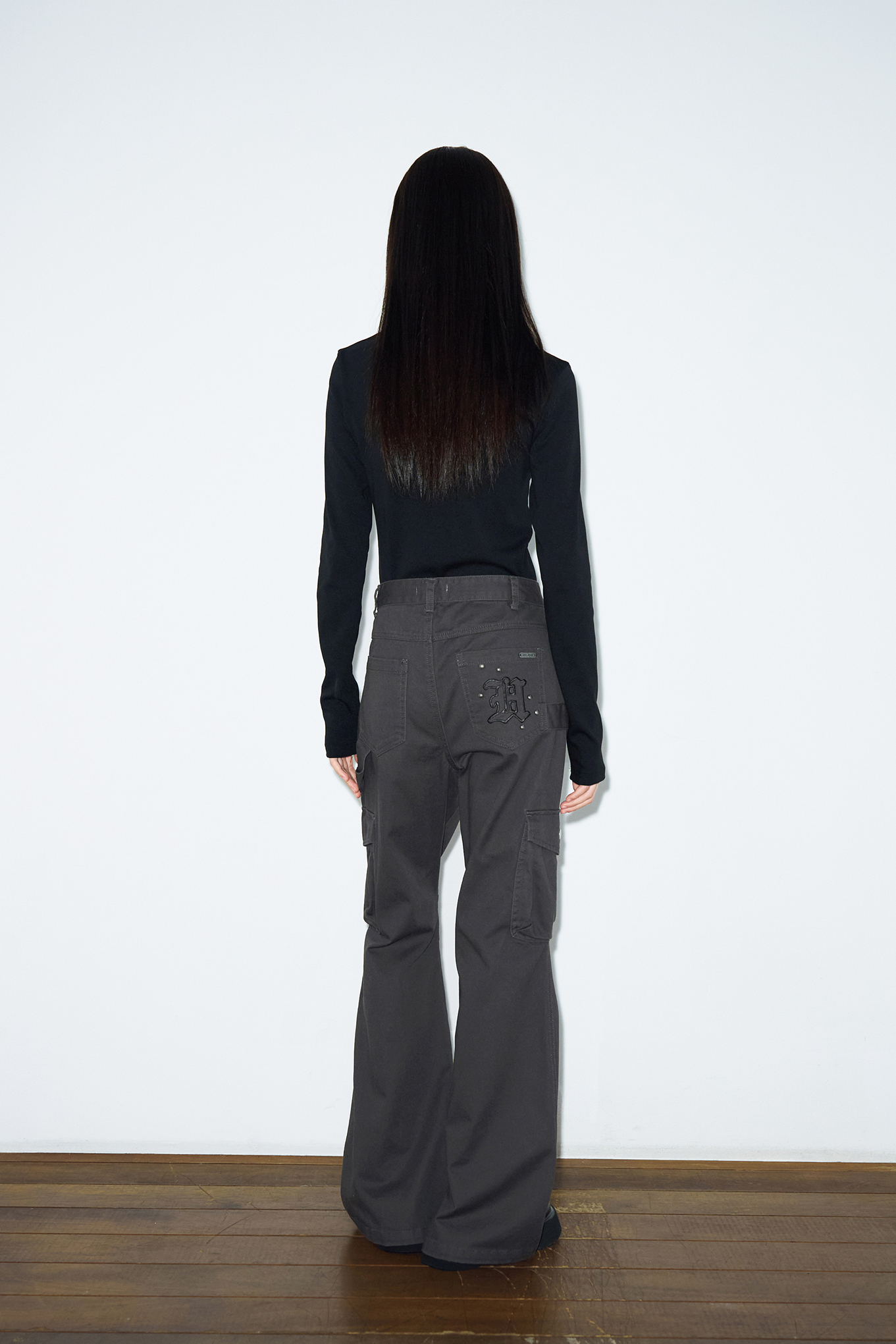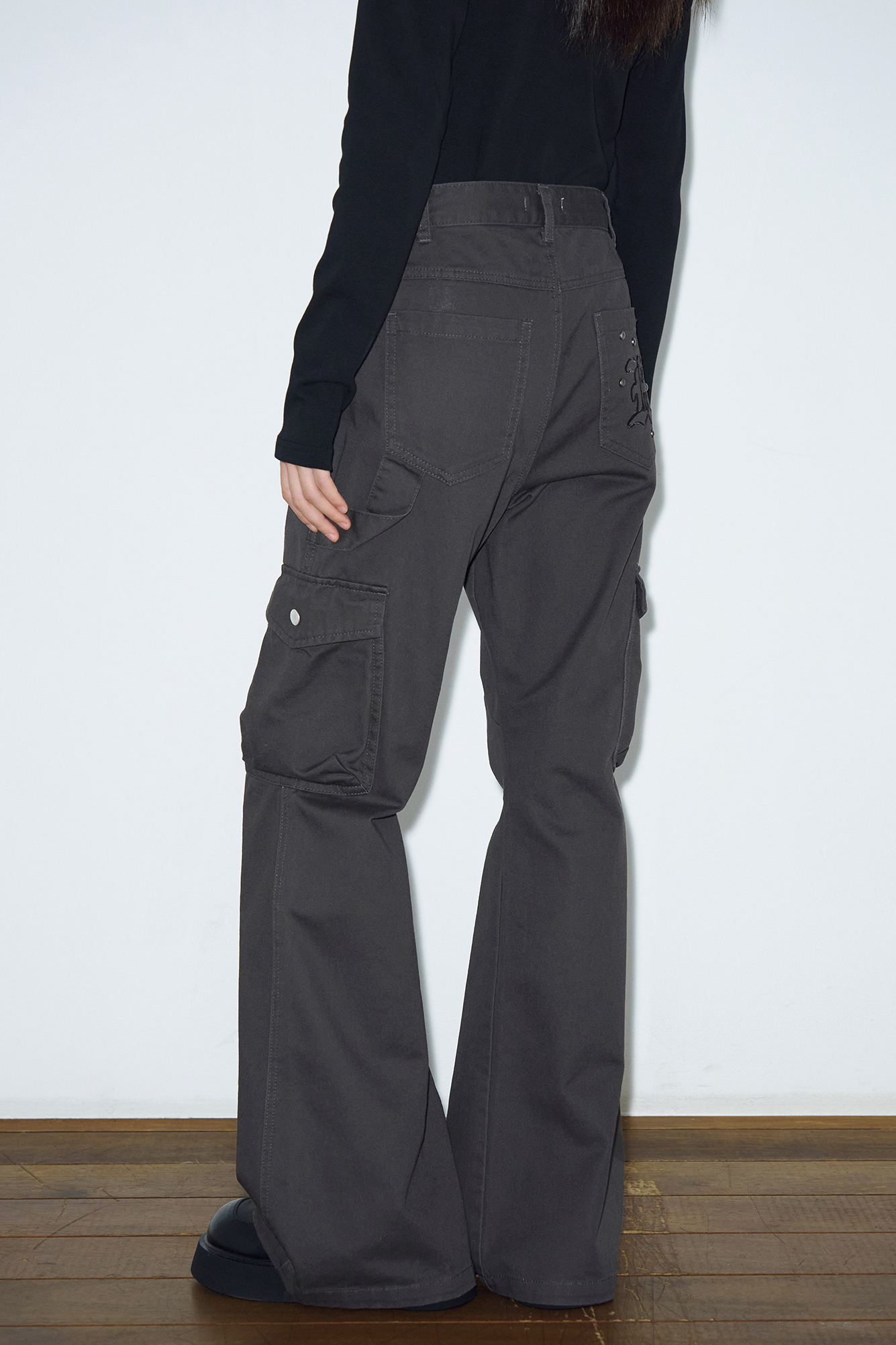 피그먼트 스터드 부츠컷 팬츠 [그레이]