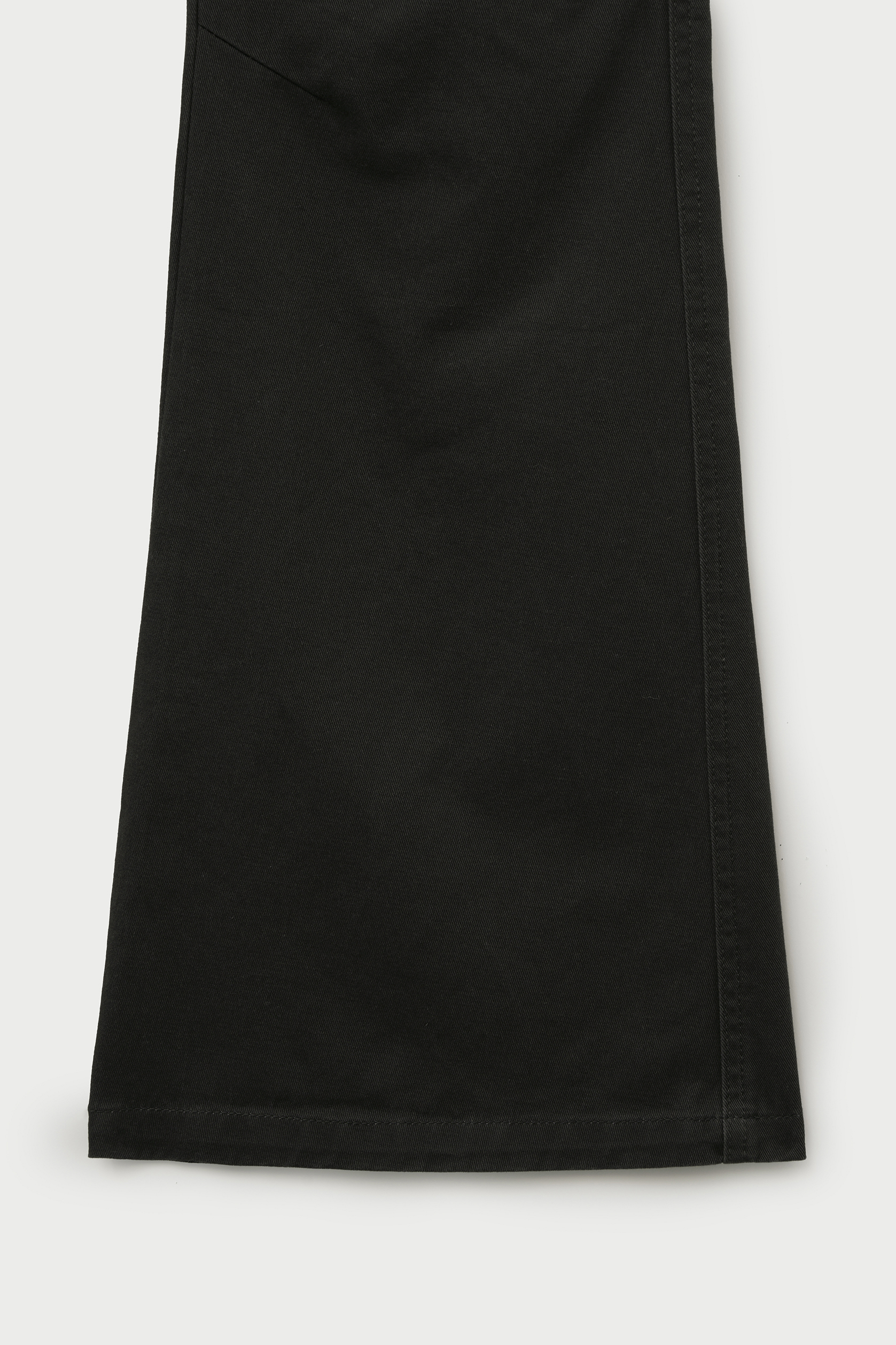 - 슬림한 허벅지 라인과 핀턱 디테일, 부츠컷 실루엣이 매력적입니다.