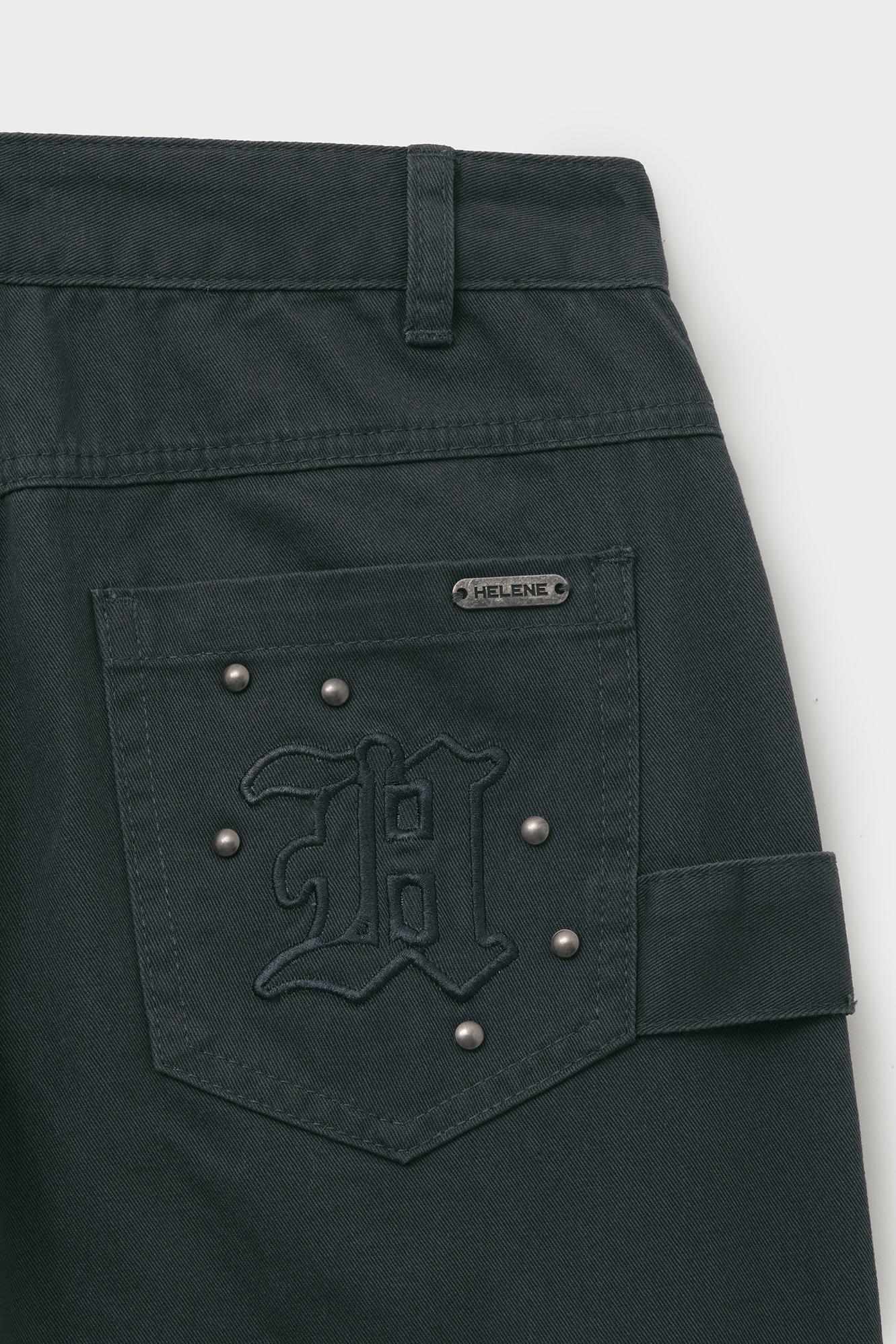 - 백 포켓에는 H 로고 자수와 앤틱한 스터드, 헬레네 그레이버 포인트를 더했습니다.