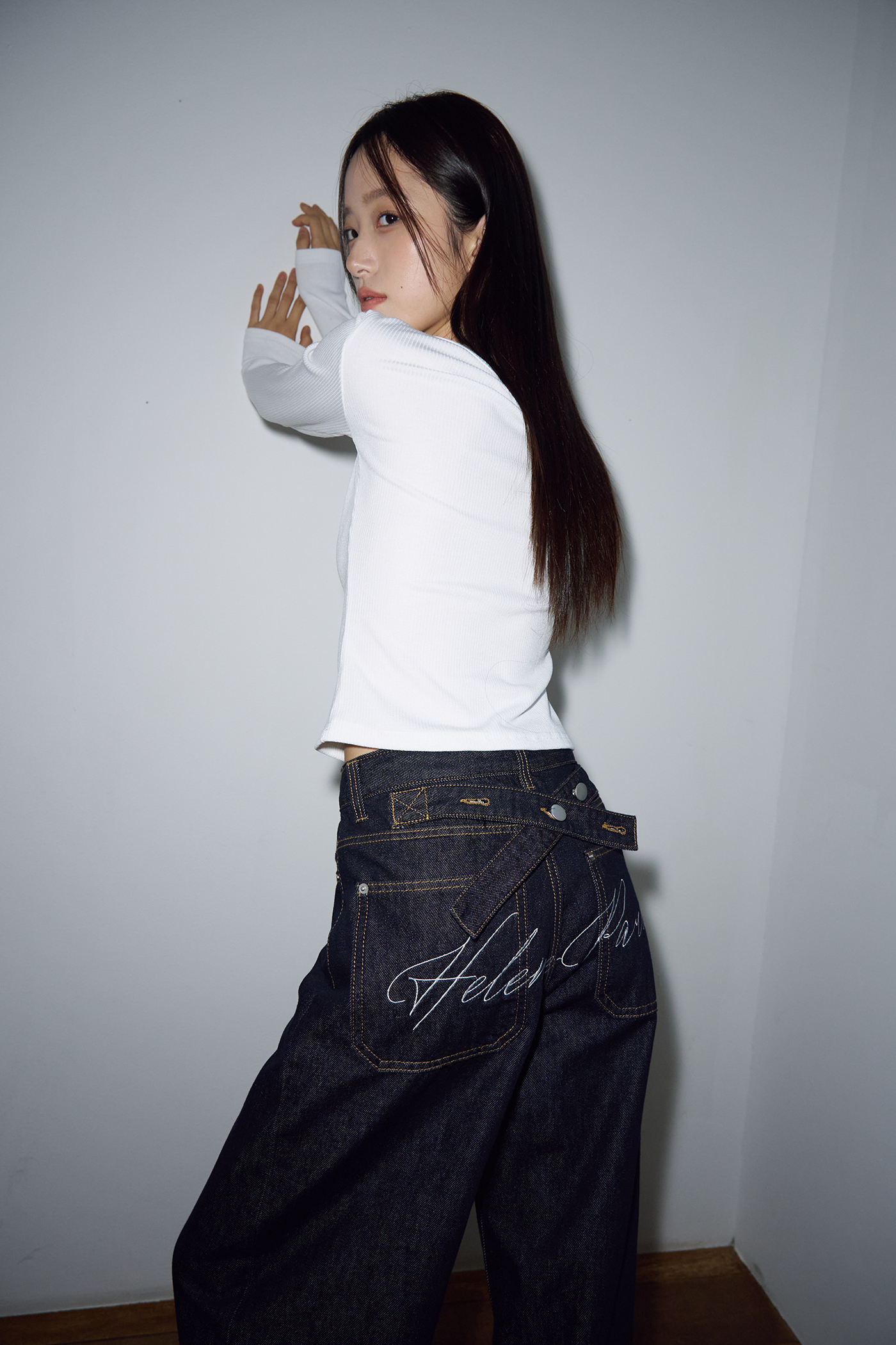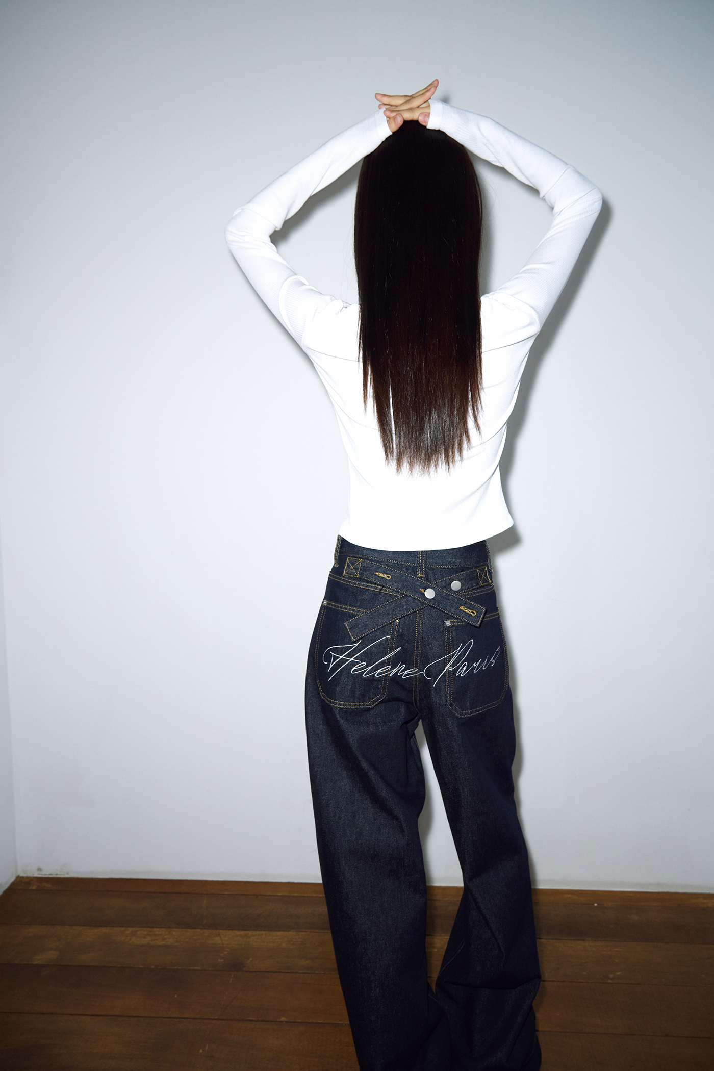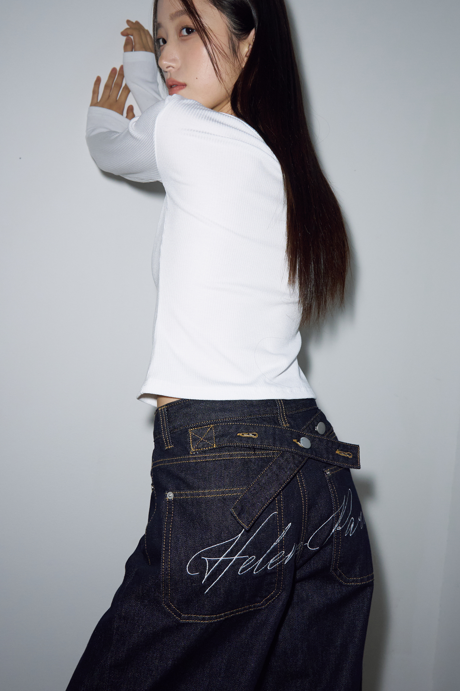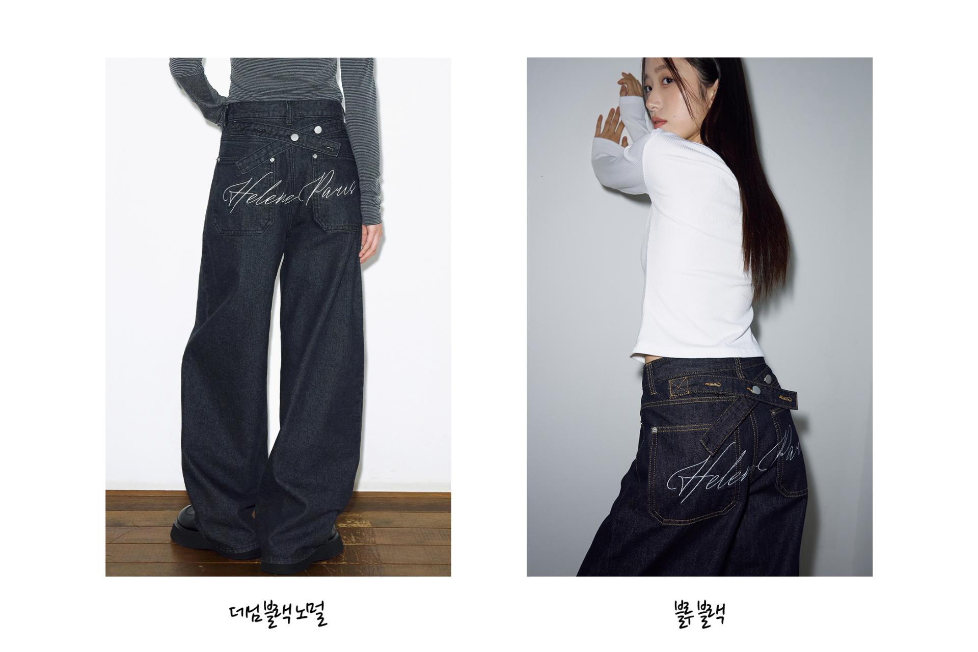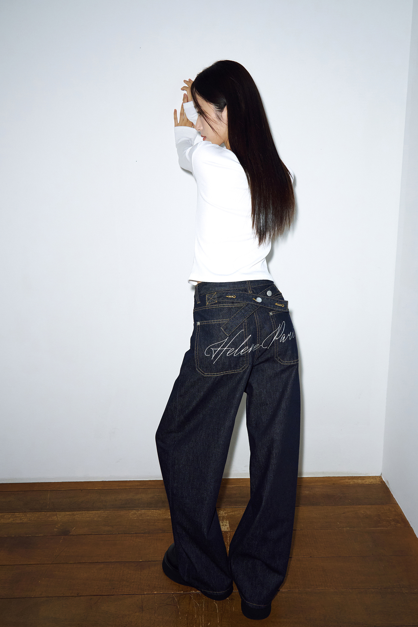 - 헬레네파리스 로고 아트 레터링 자수로 클래식하면서도 유니크한 포인트를 담은 데님 팬츠입니다.