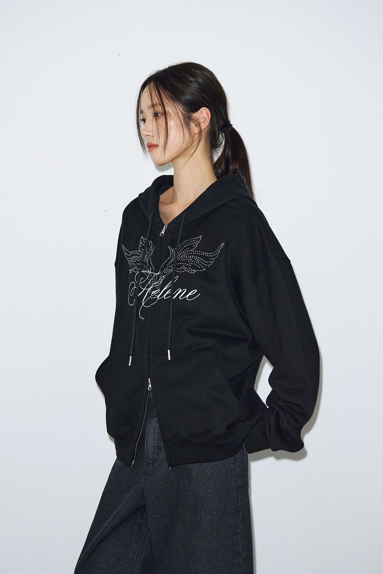 - 깔끔한 헬레네 로고 프린팅과 엔젤 큐빅이 트렌디한 포인트가 됩니다.