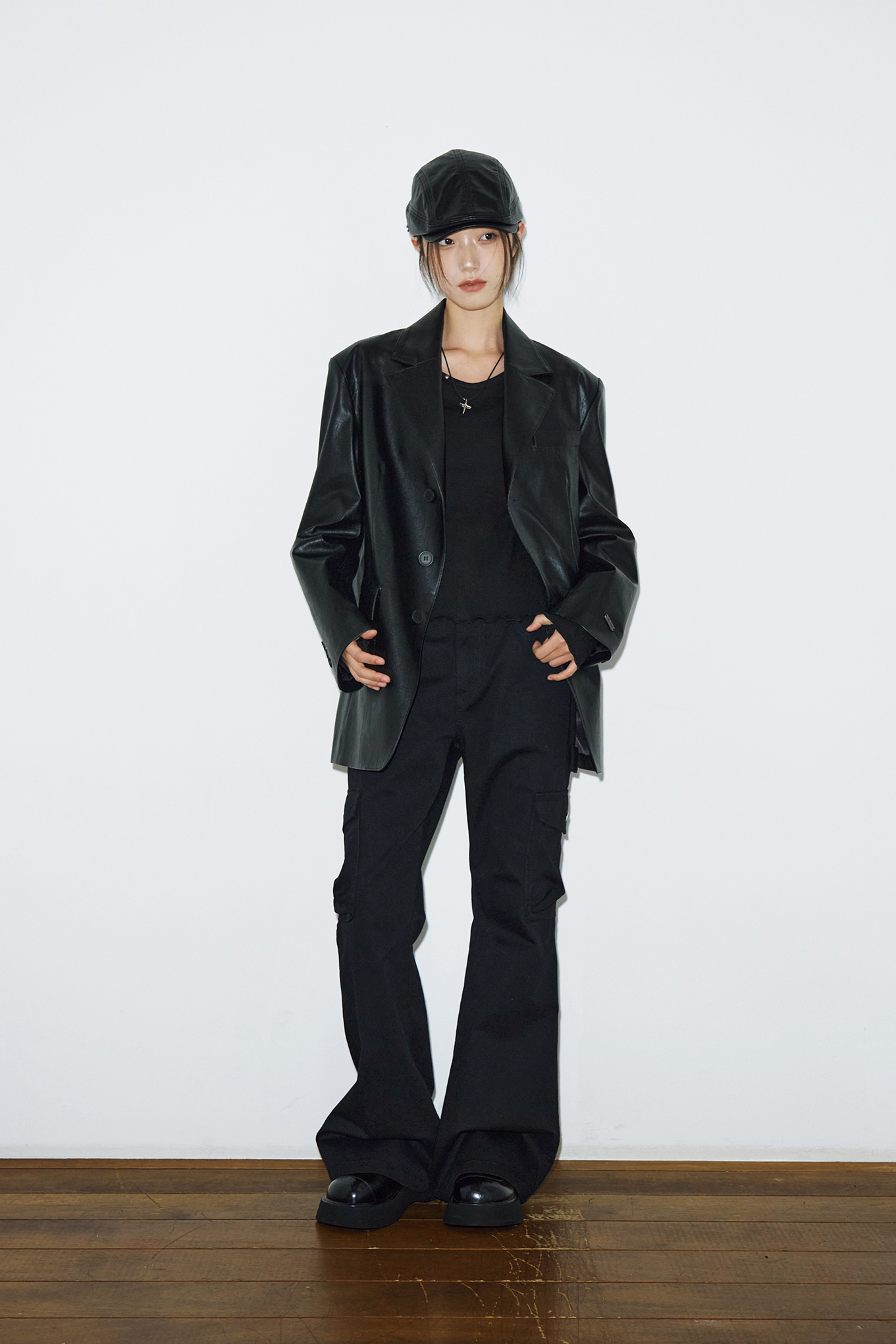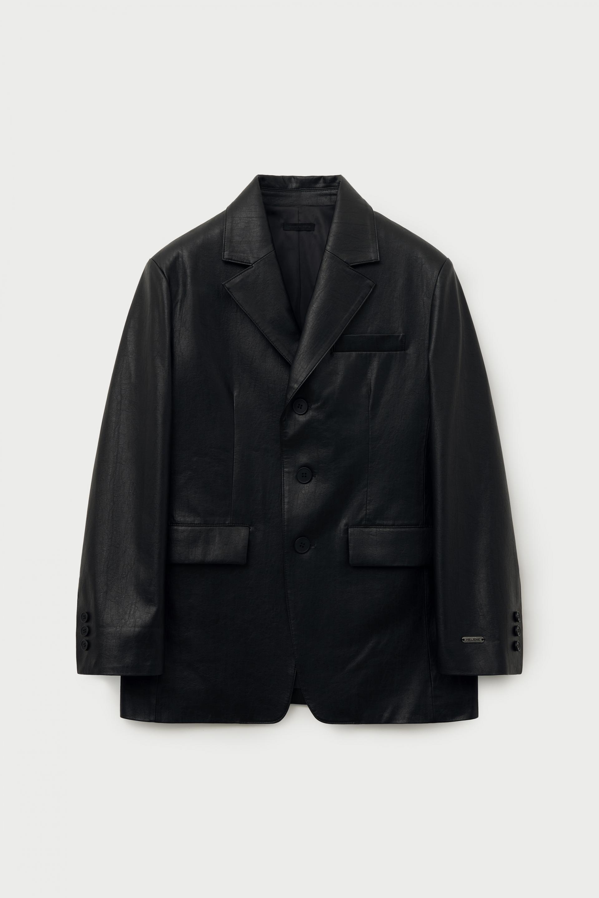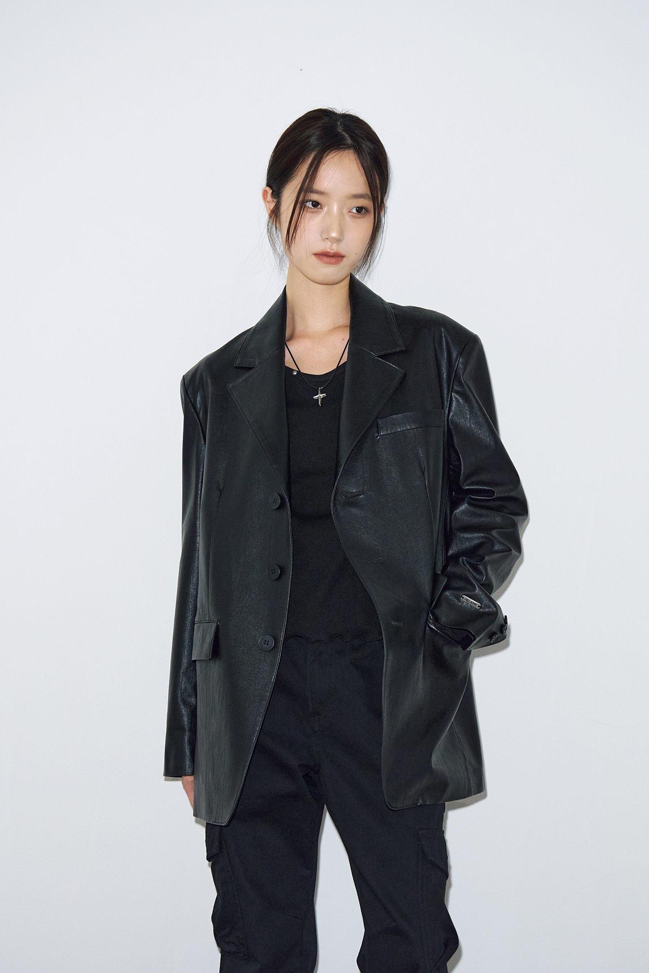 - 매트한 레더 패브릭의 트렌디한 오버핏 재킷입니다.