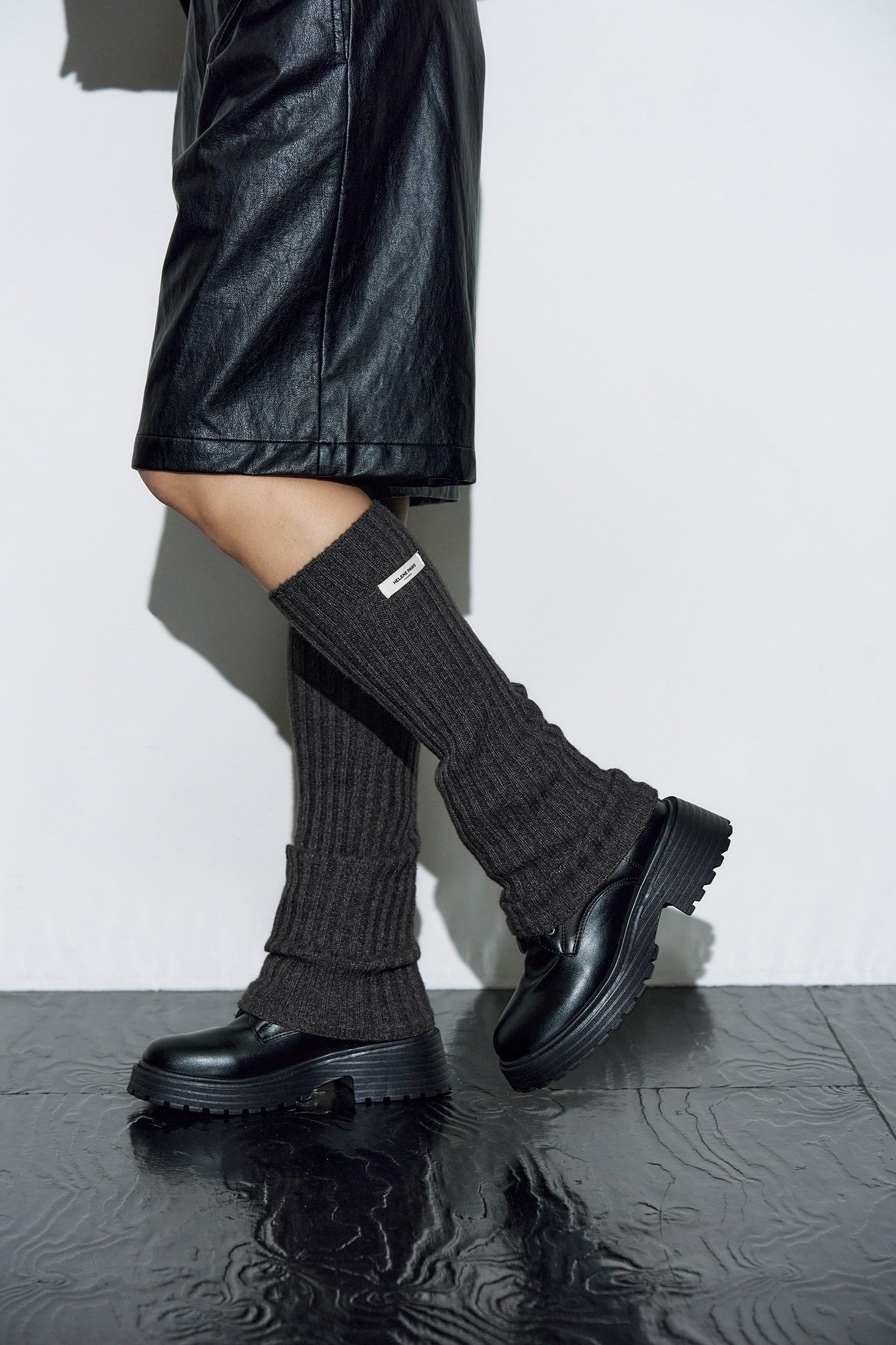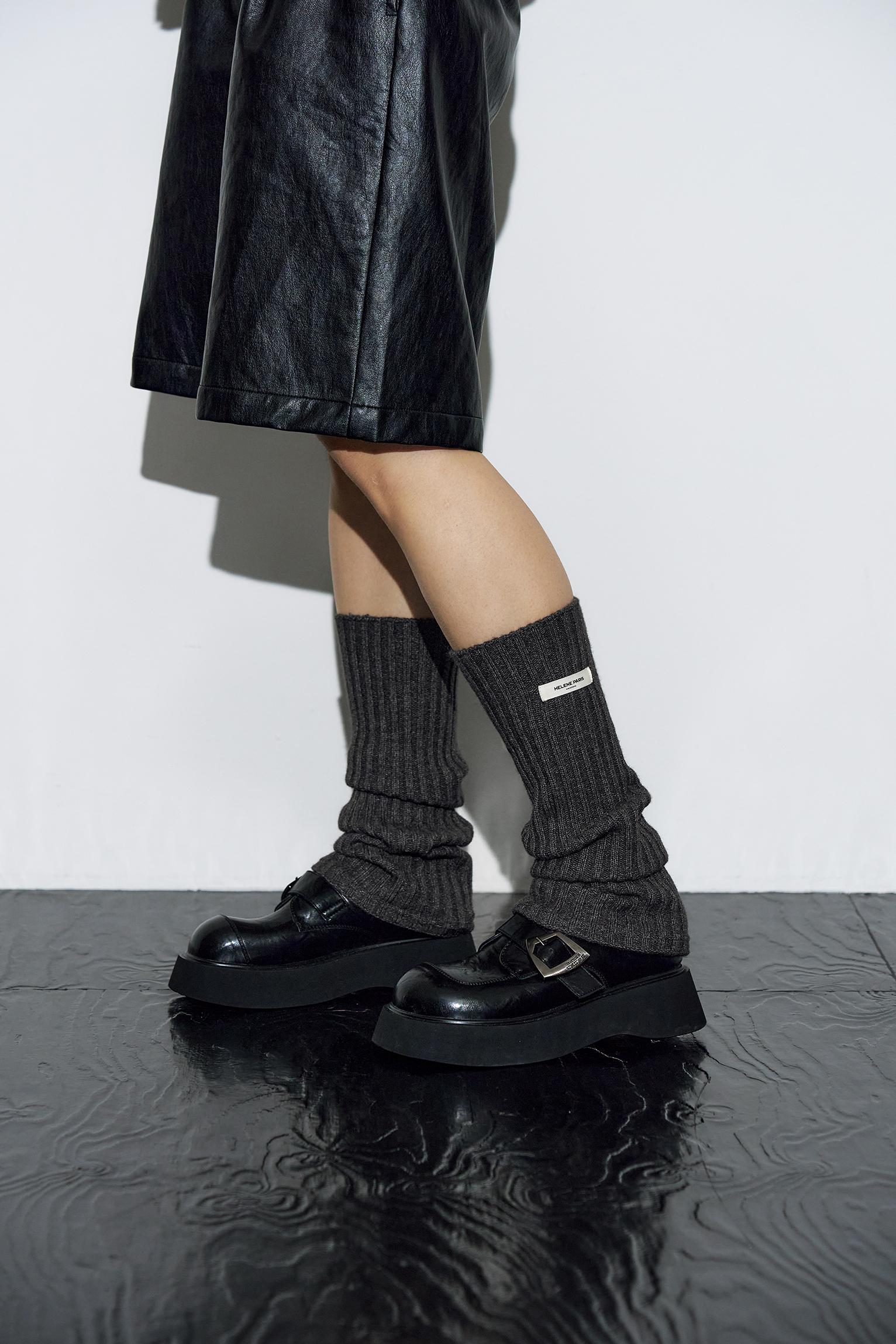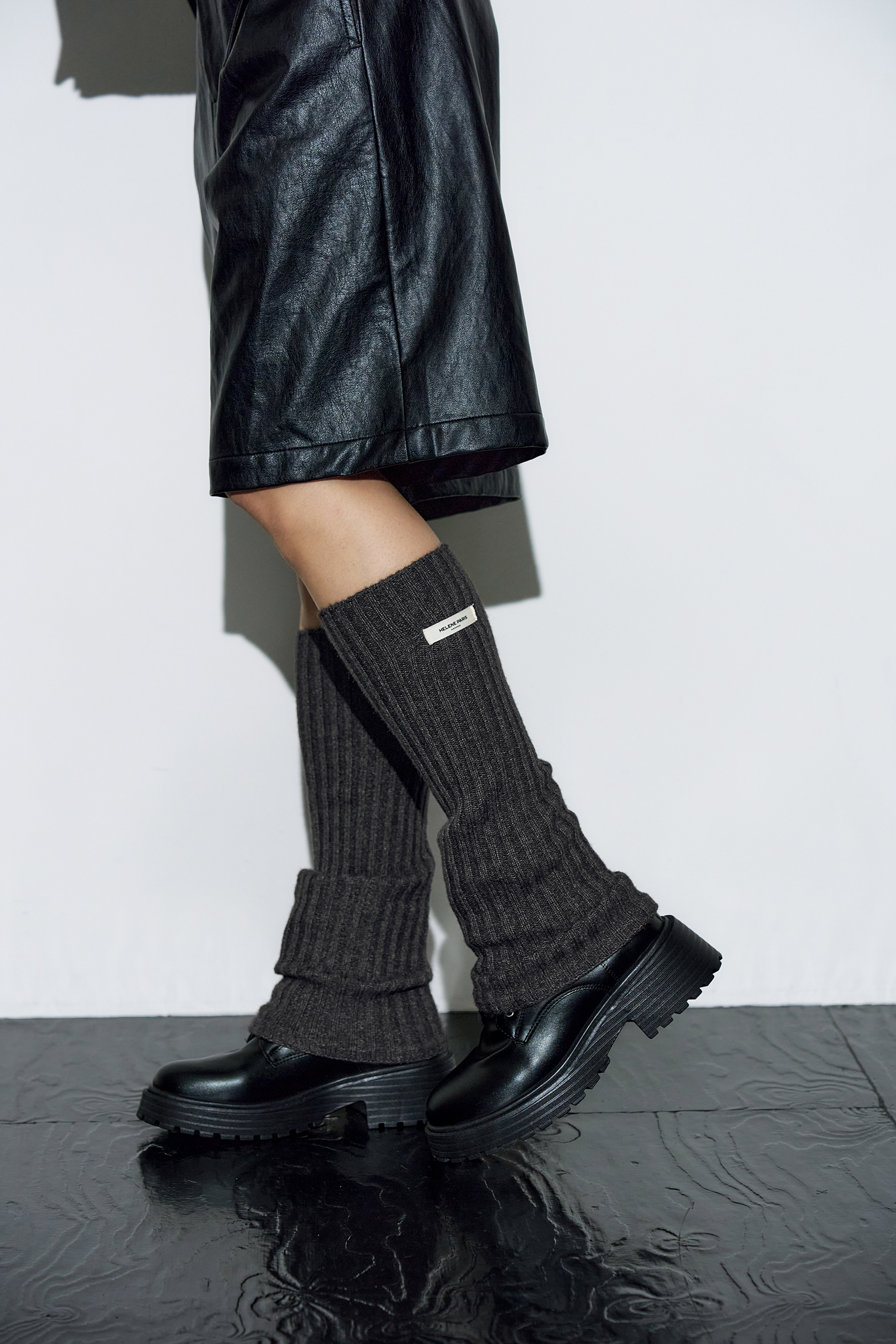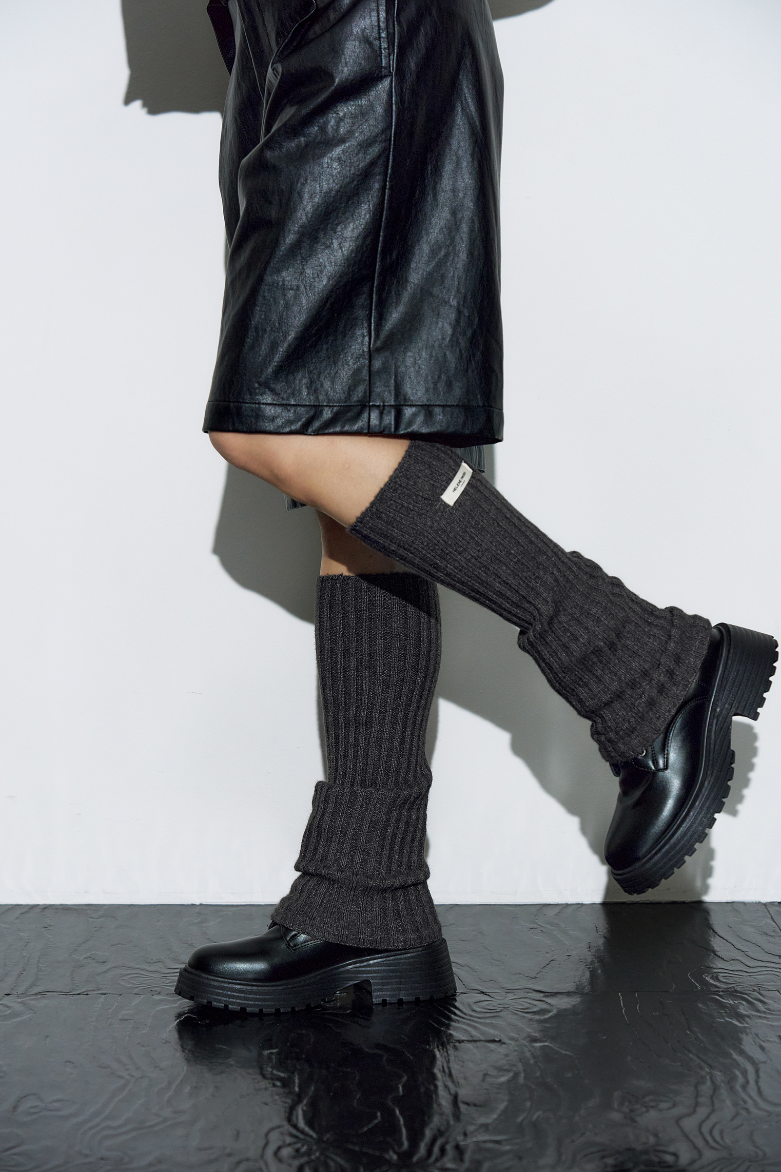리브드 레그 워머 [차콜]
