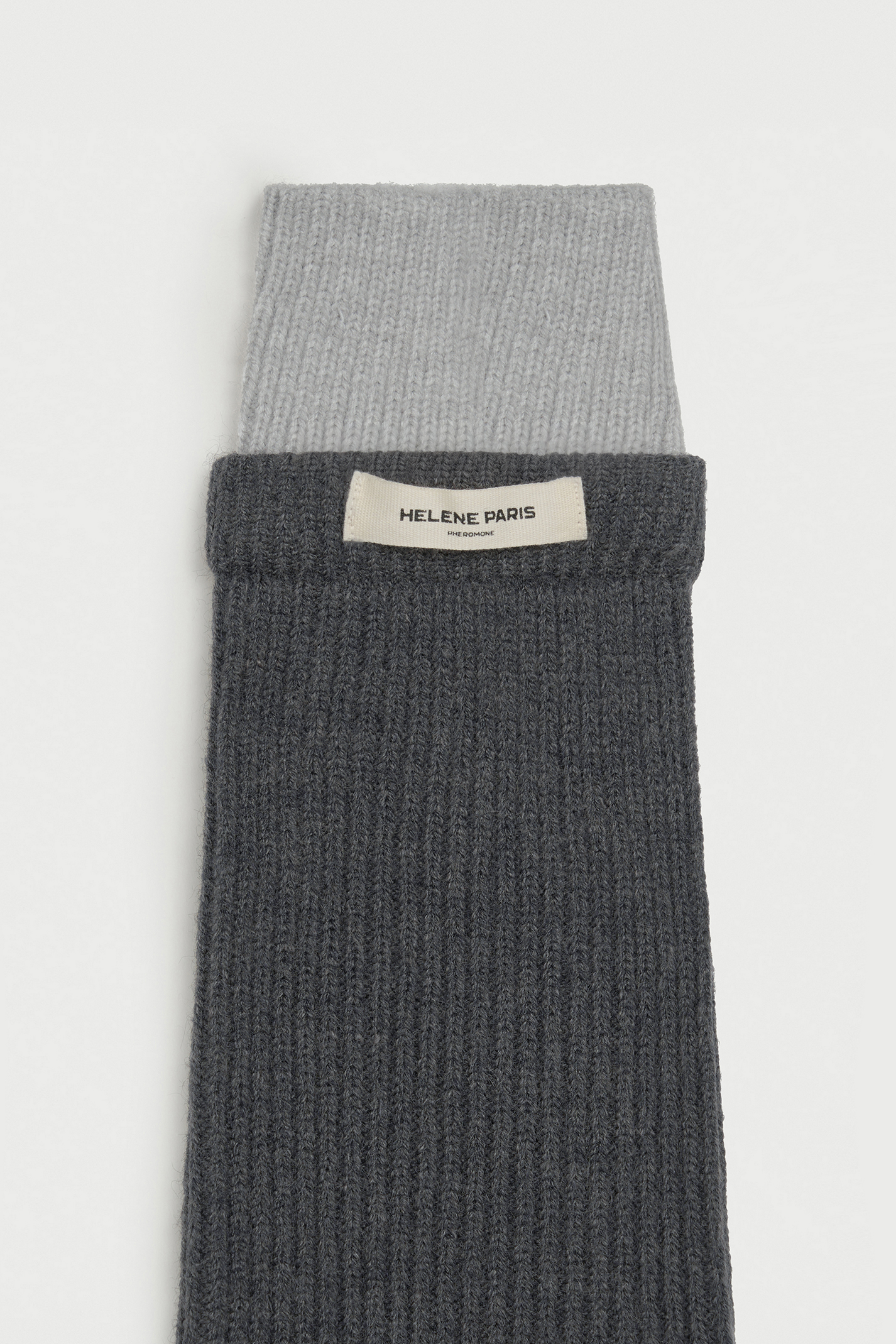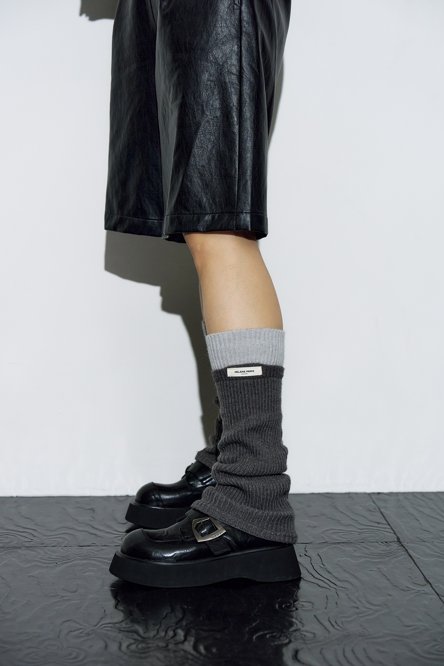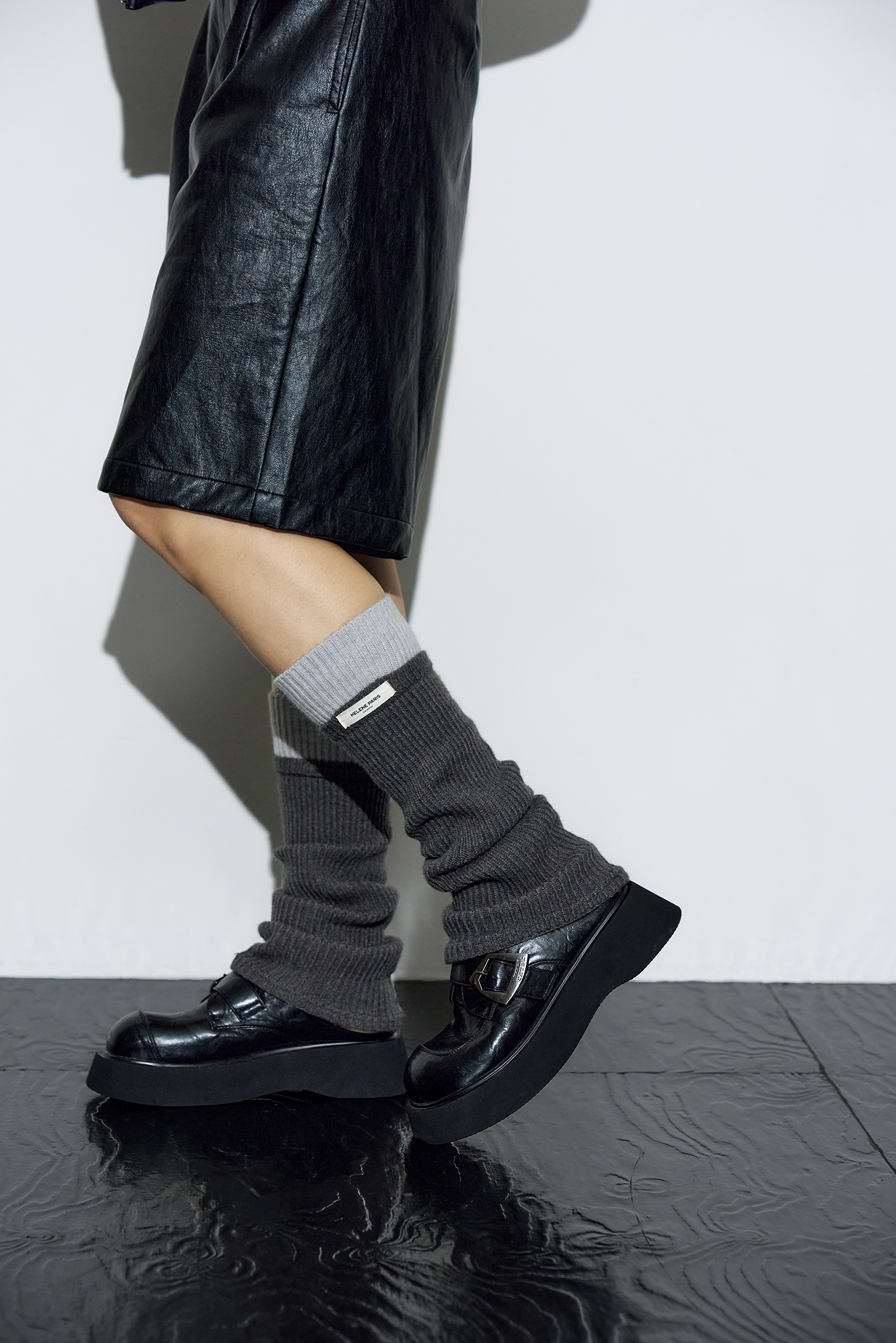 투 톤 리브드 레그 워머 [차콜-그레이]
