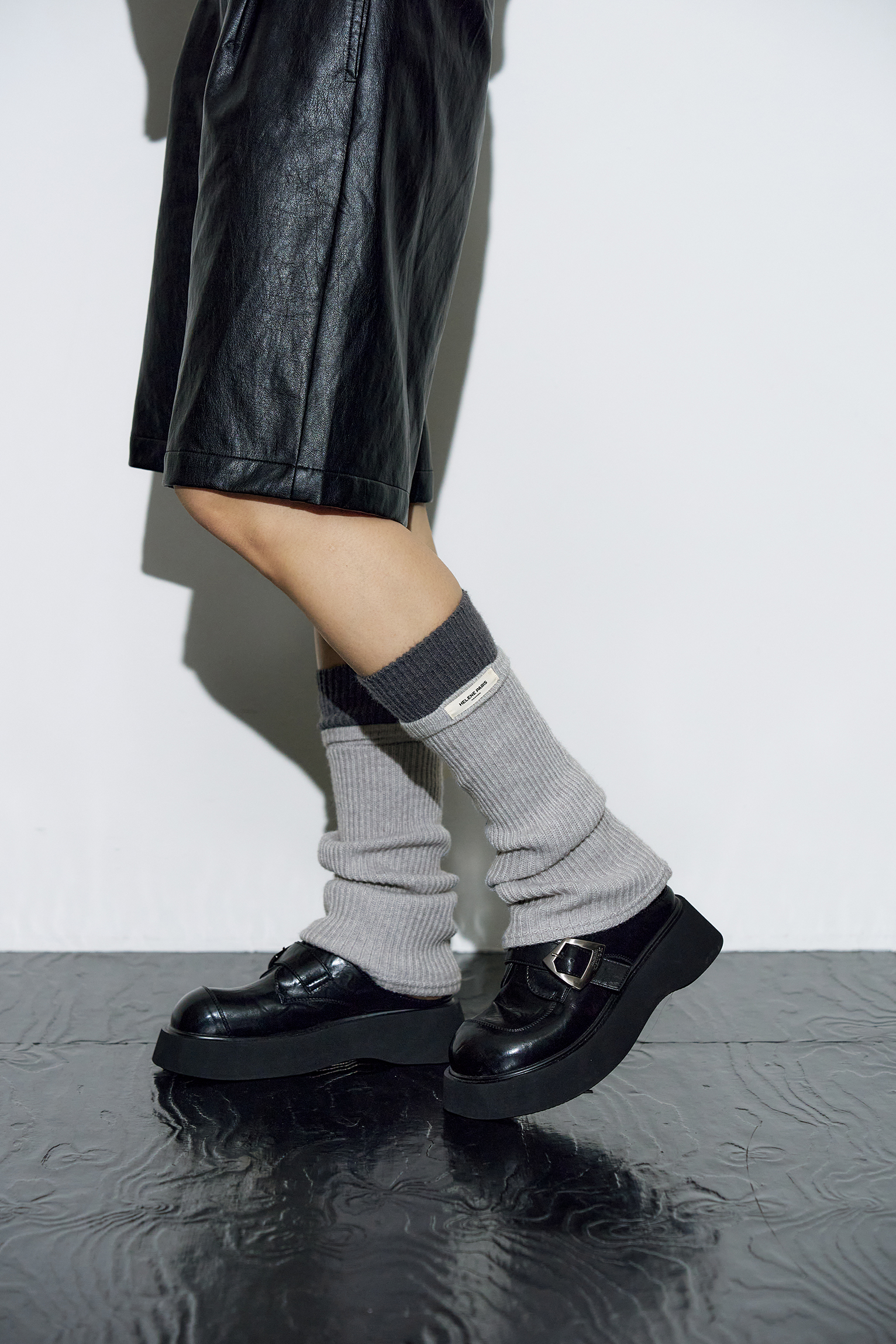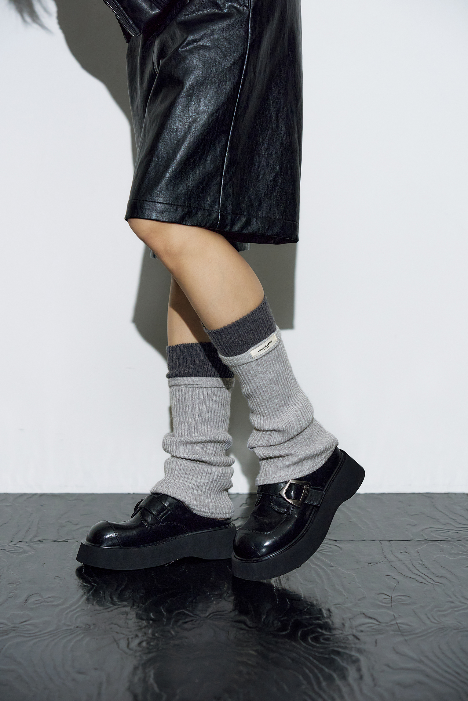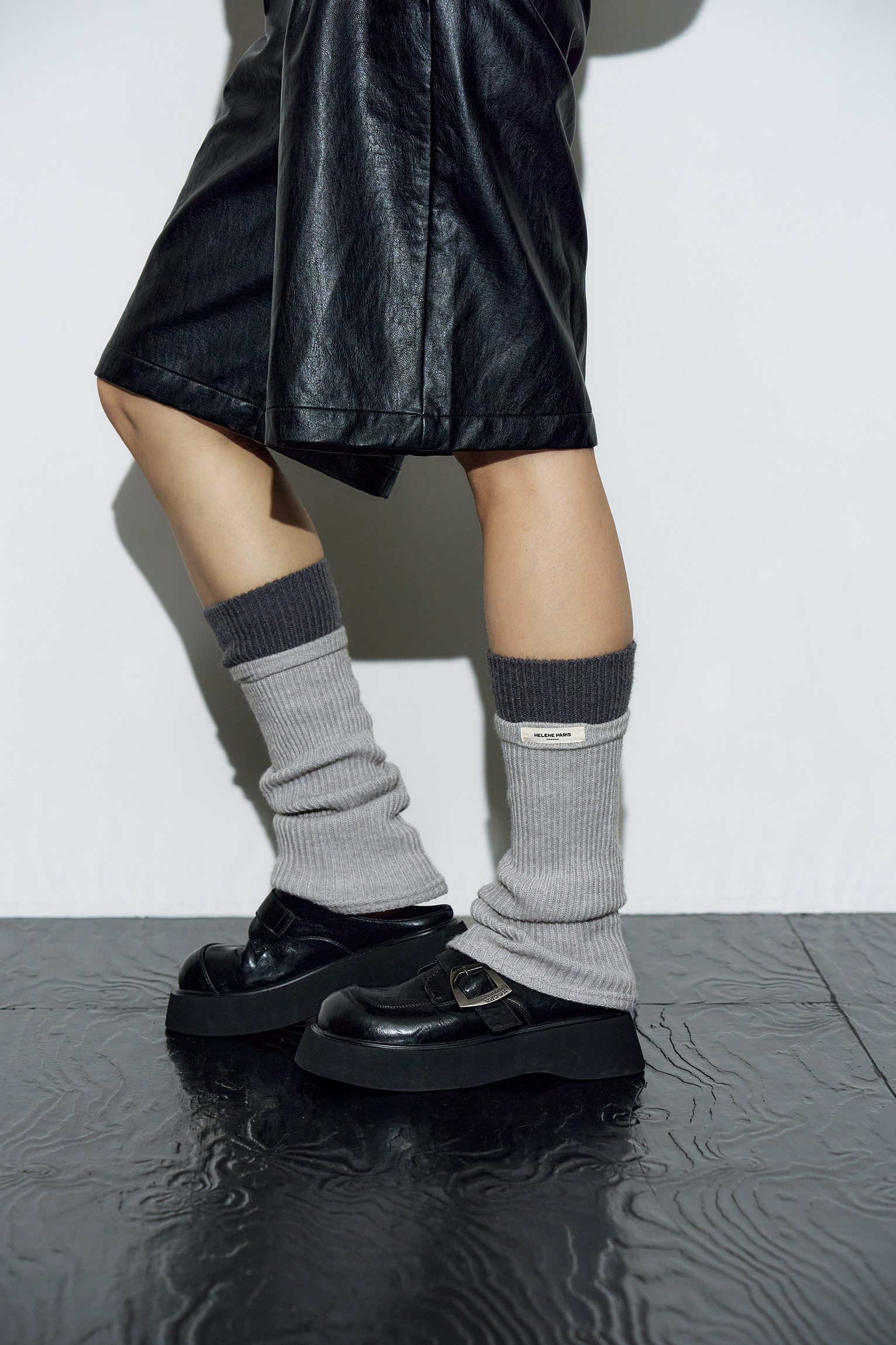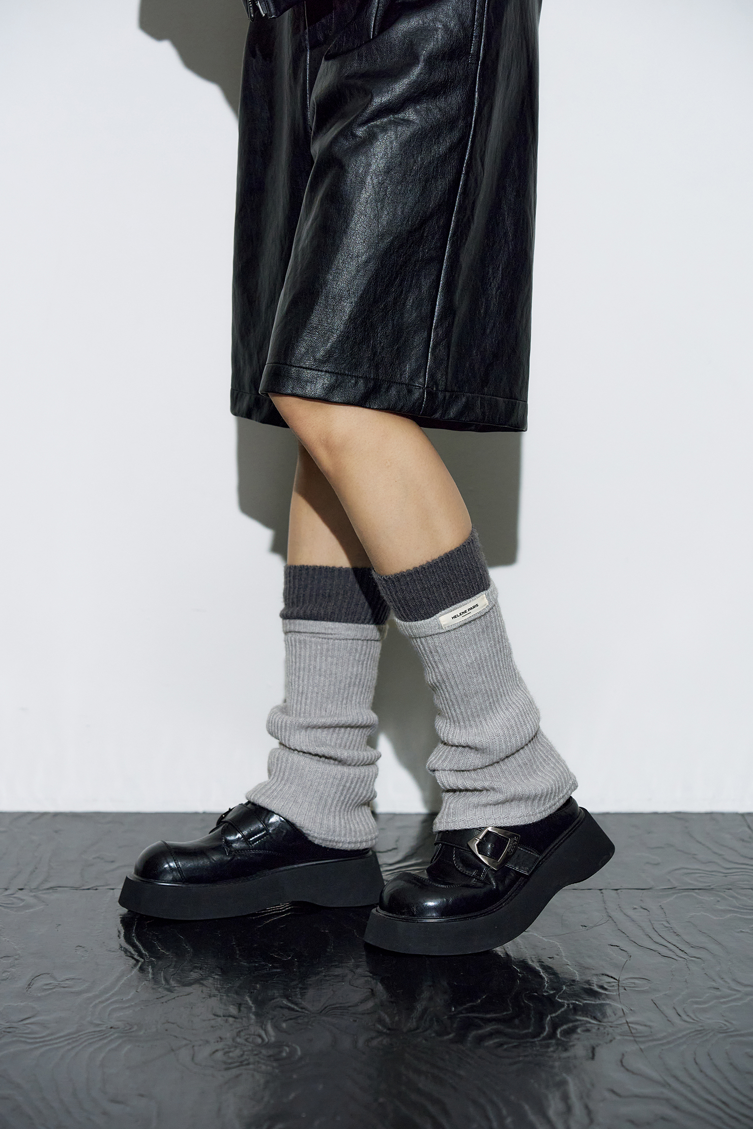 투 톤 리브드 레그 워머 [그레이-차콜]