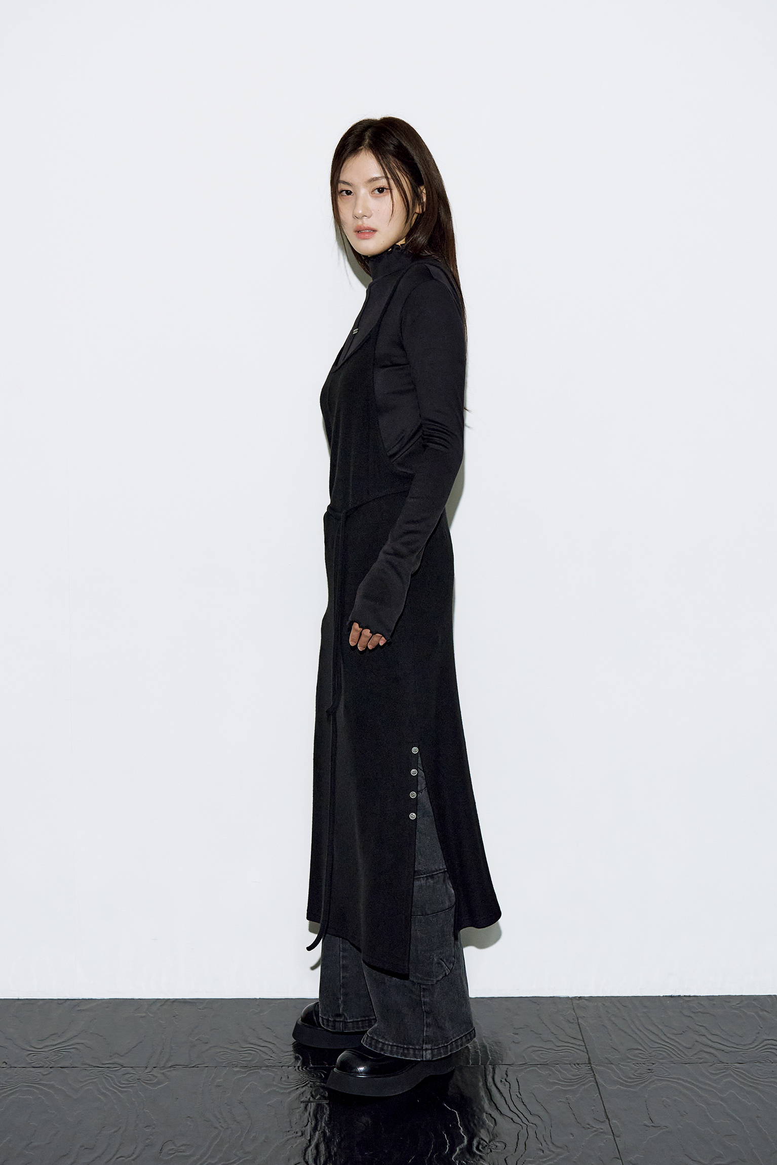 - 한 쪽 밑단에는 슬릿 디테일을 더하여 활동성을 높였습니다.