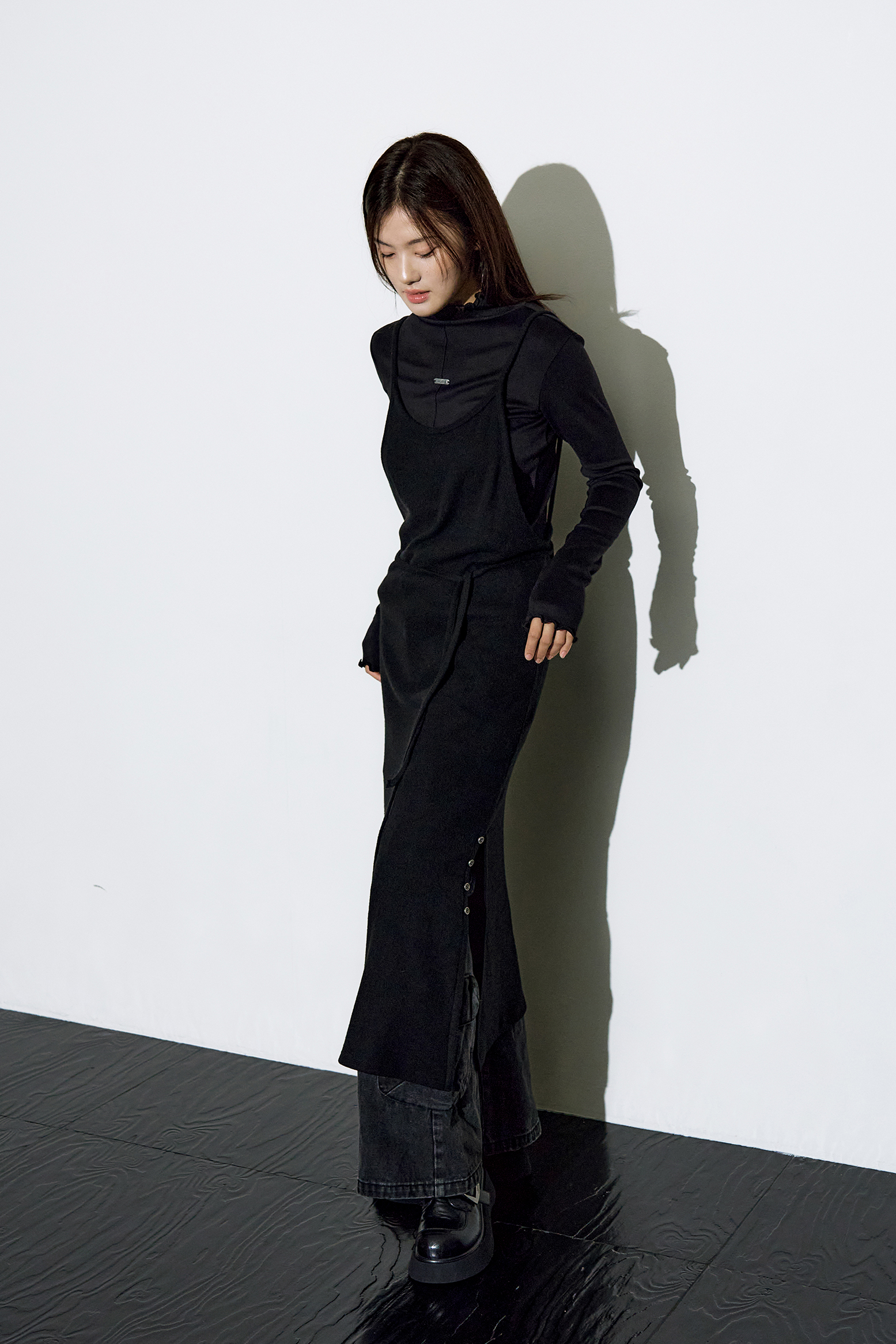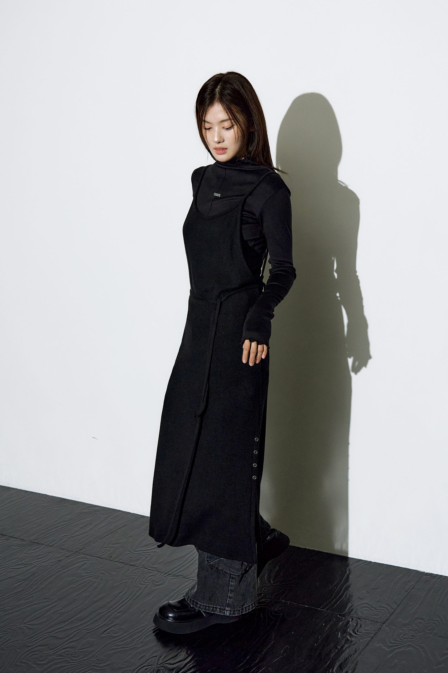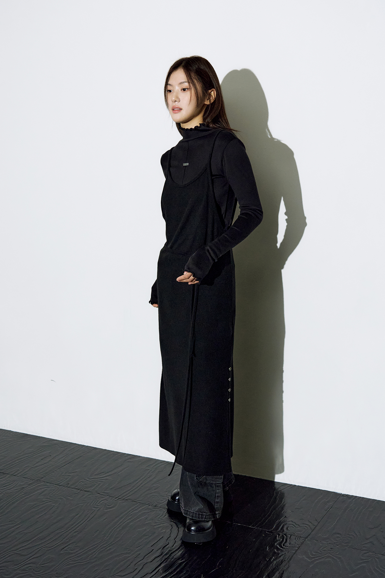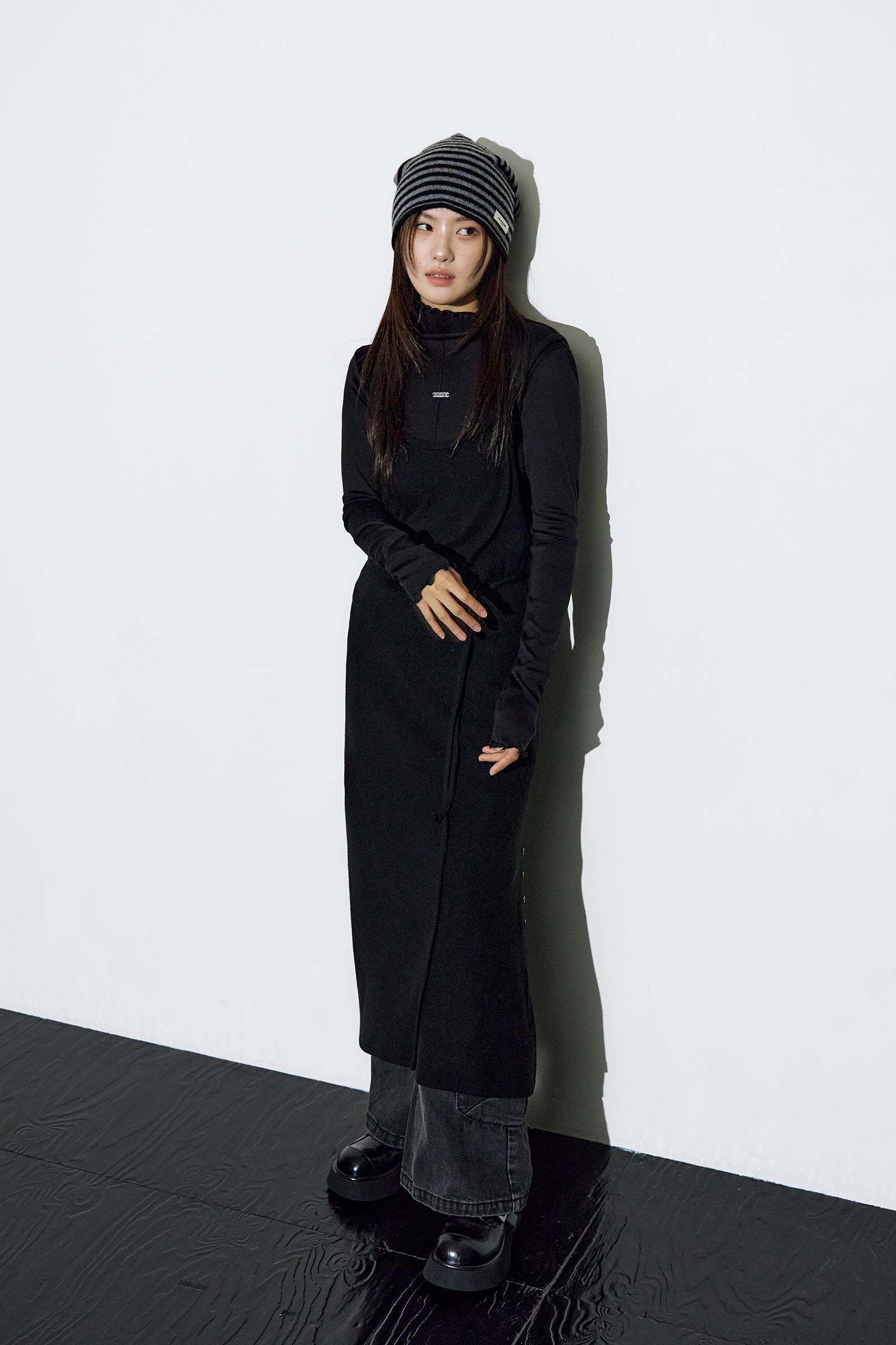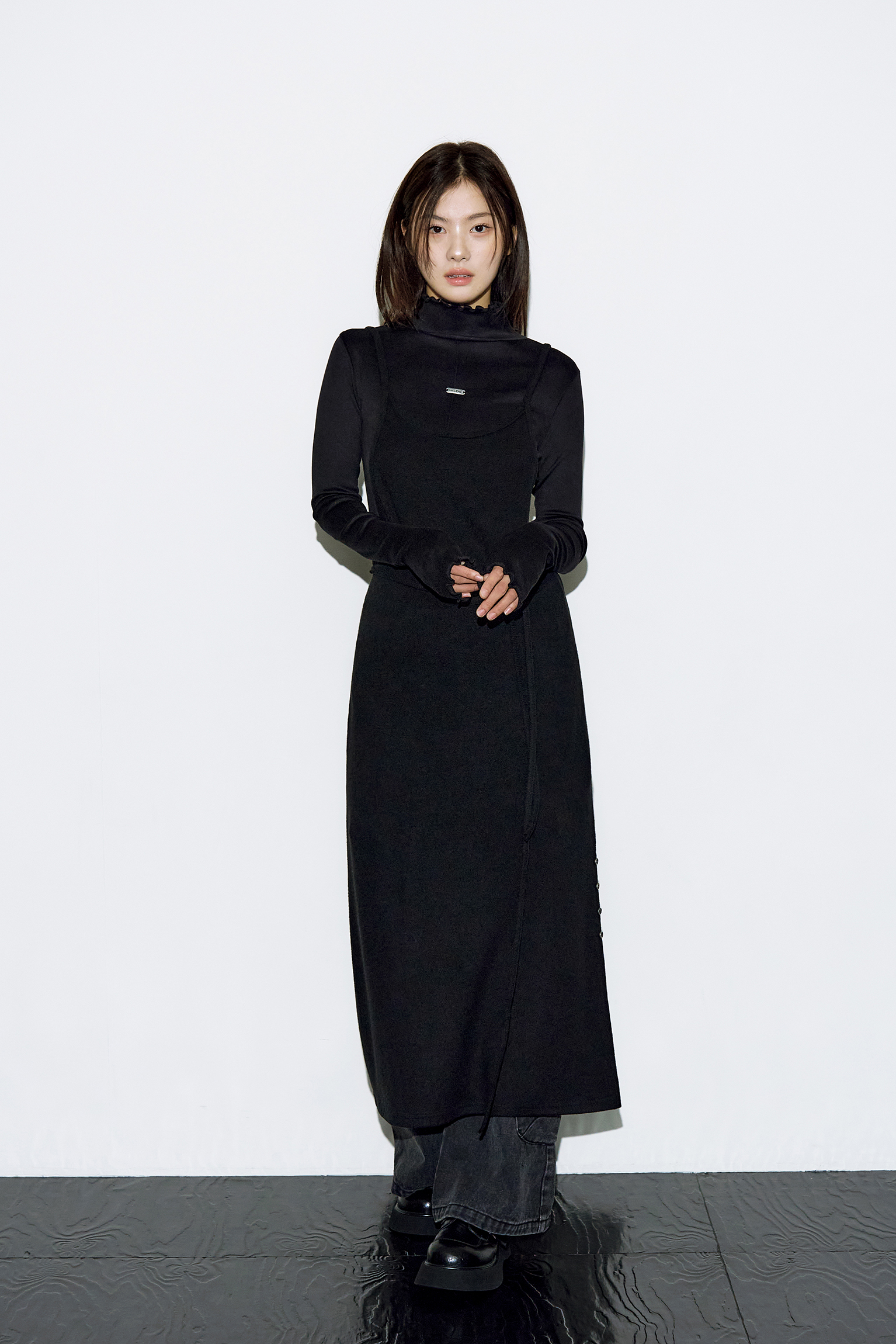 블룸 니팅 웜 레이어드 롱 원피스 [블랙]