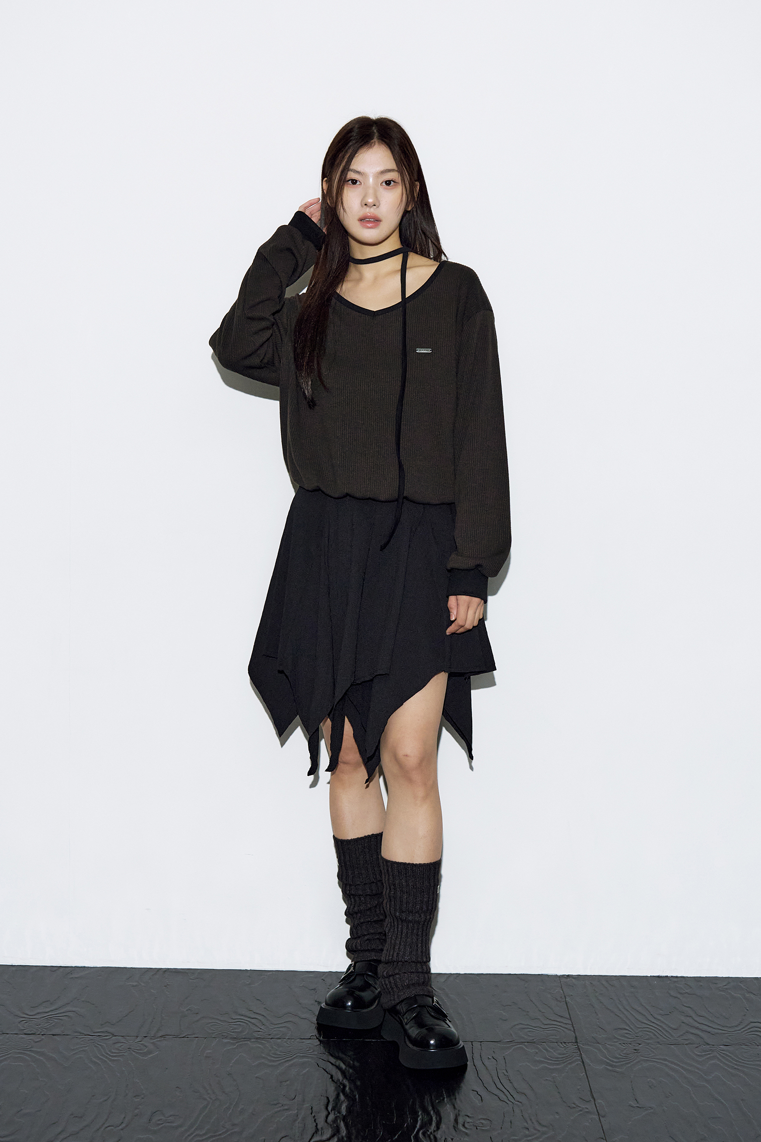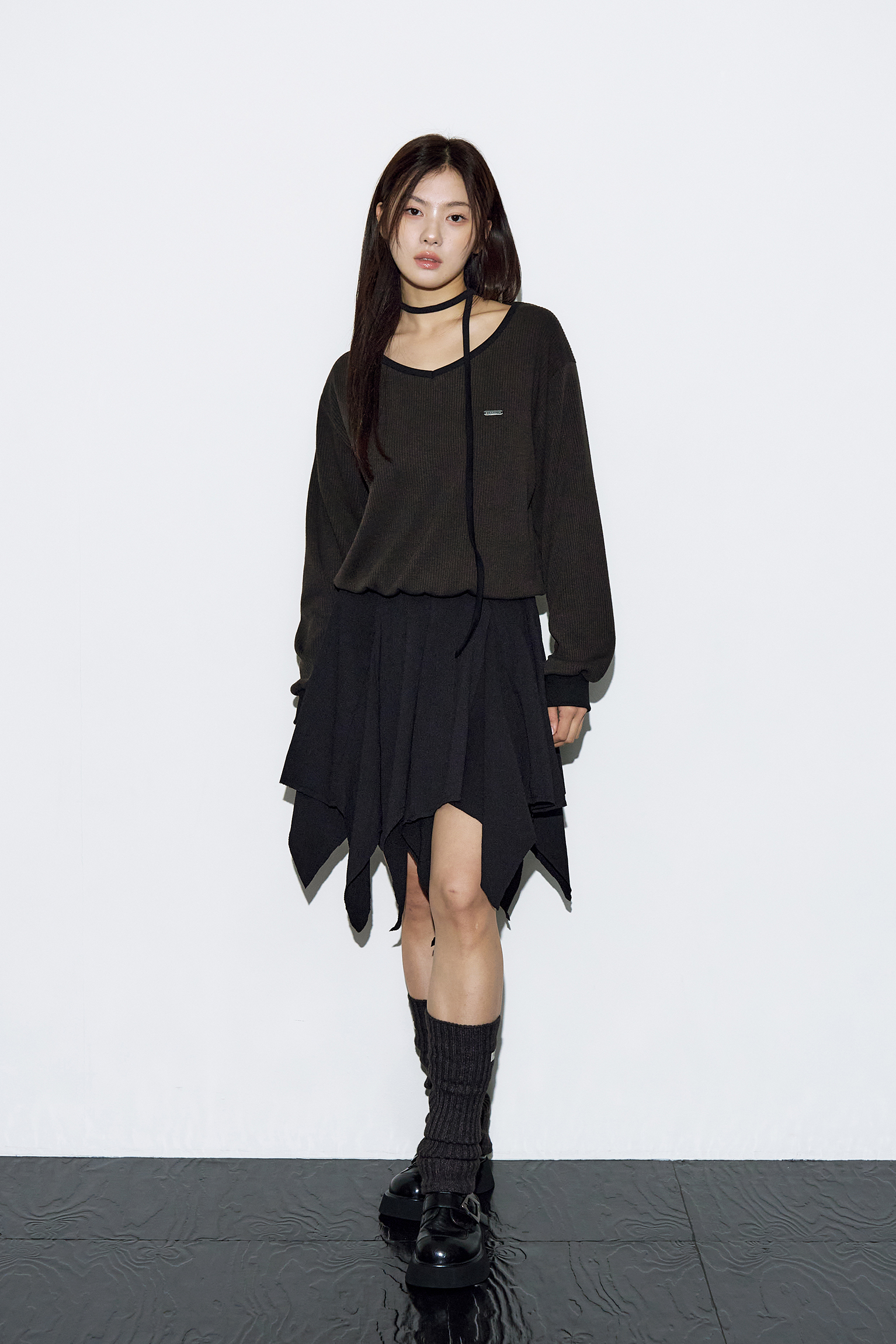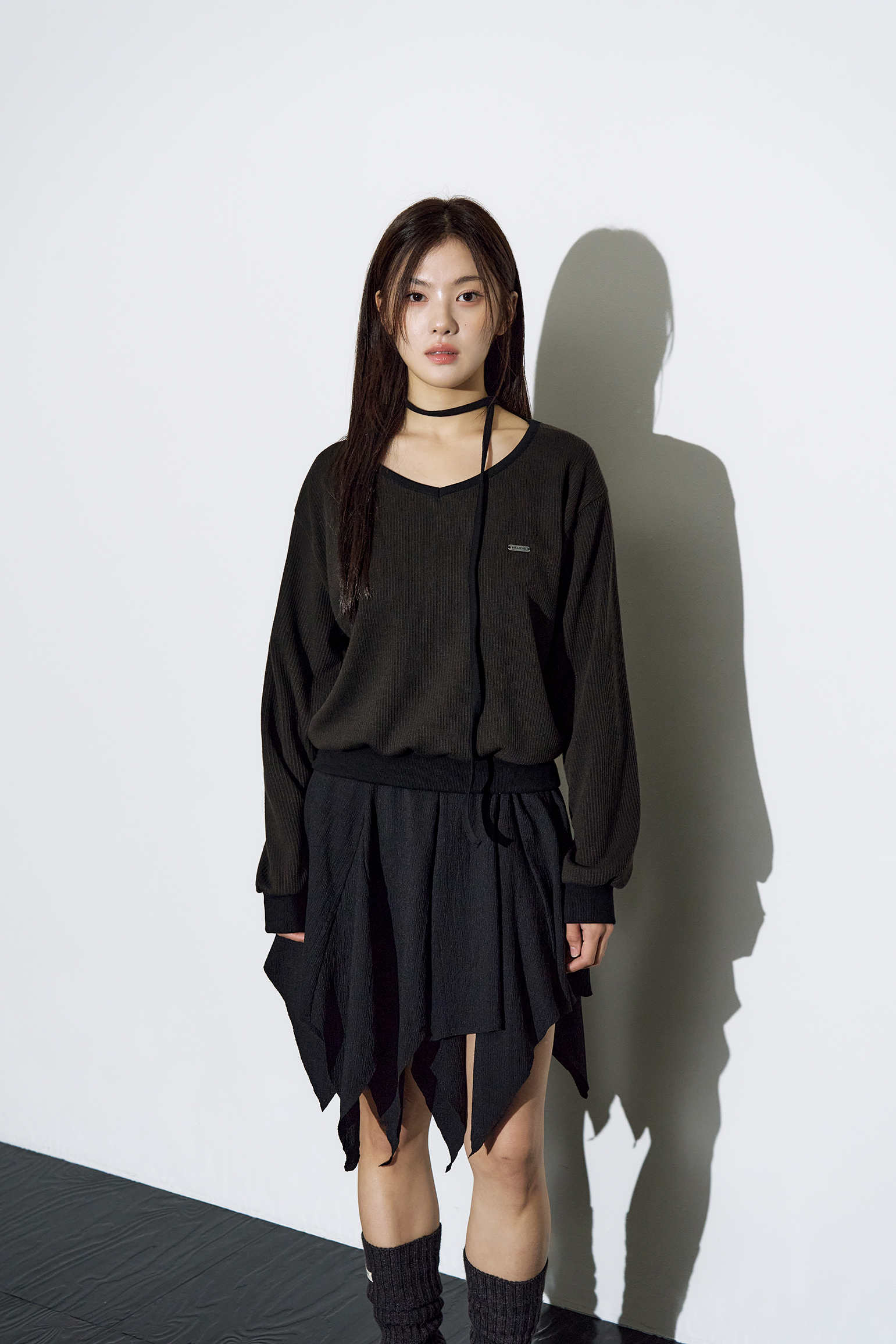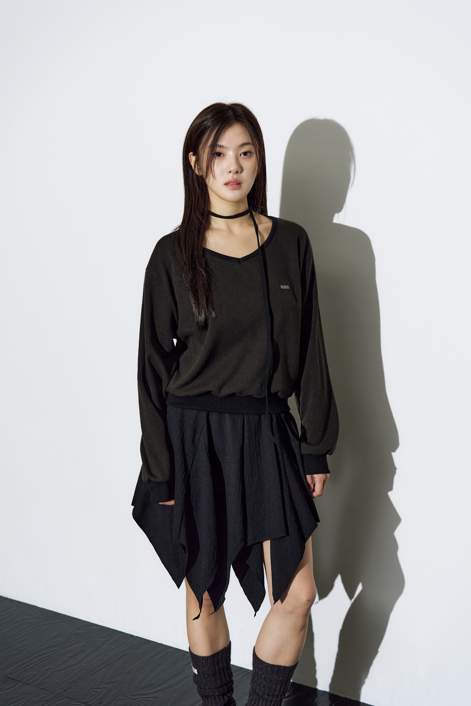 - 부드럽게 떨어지는 브이넥 라인으로 페미닌한 실루엣 완성