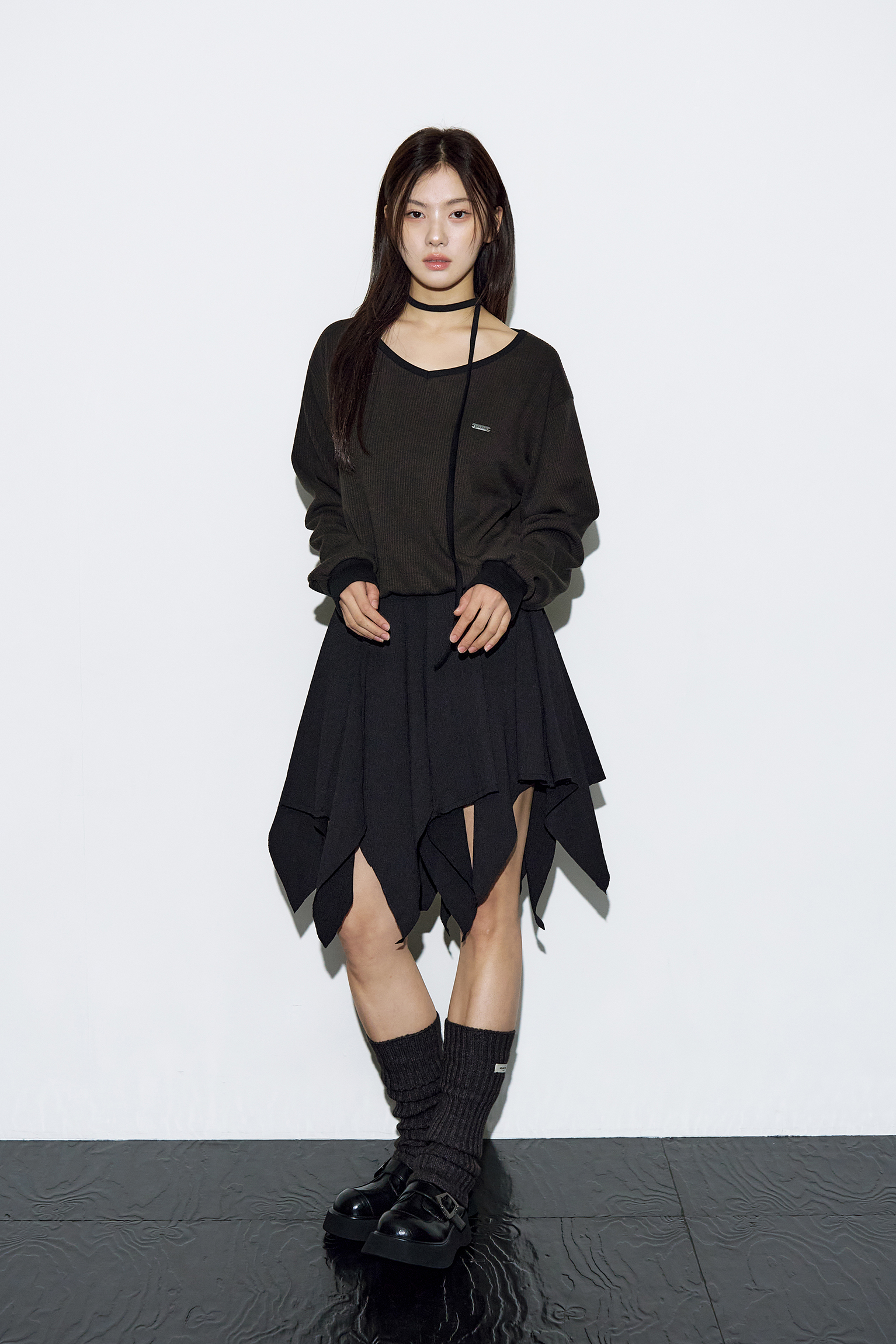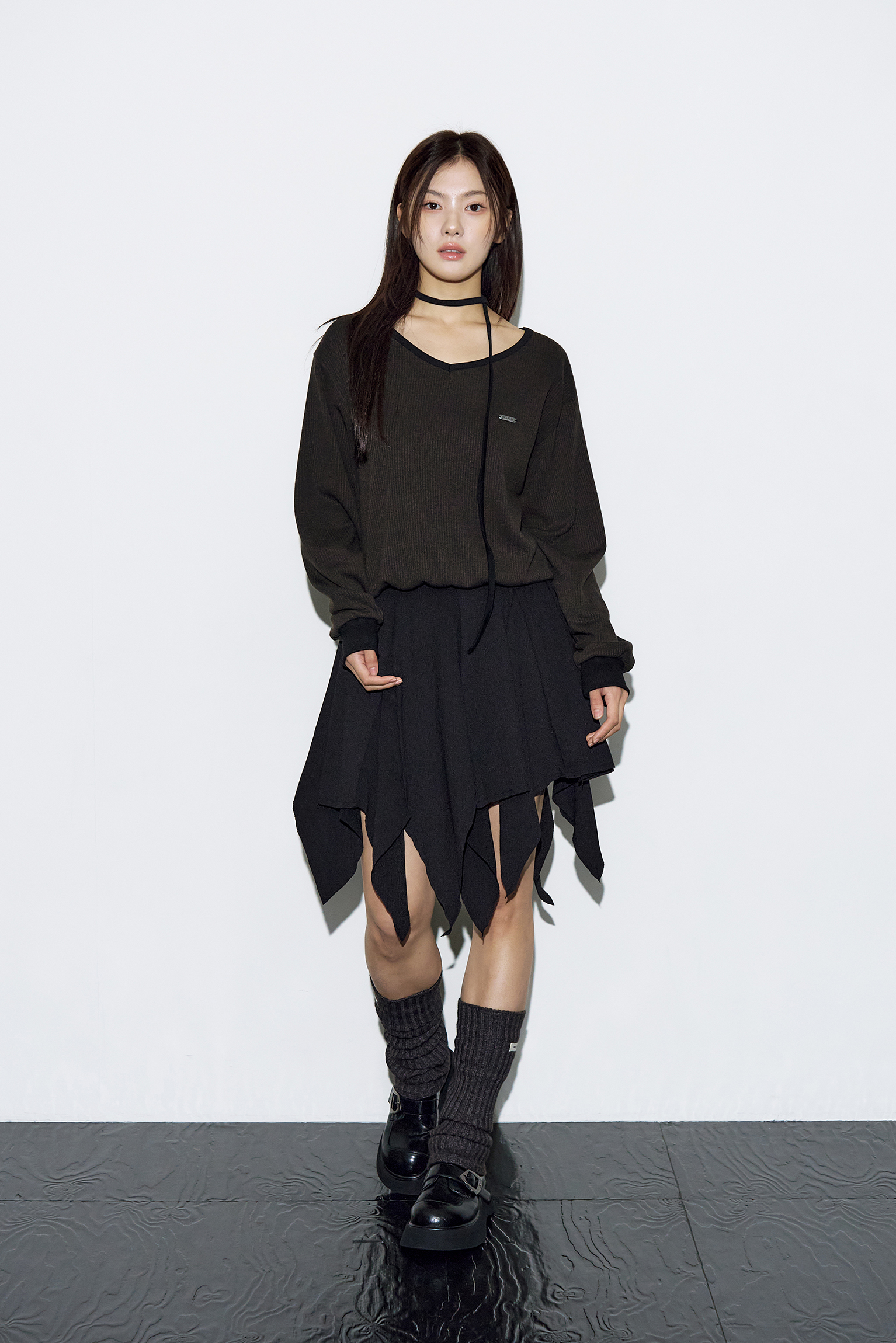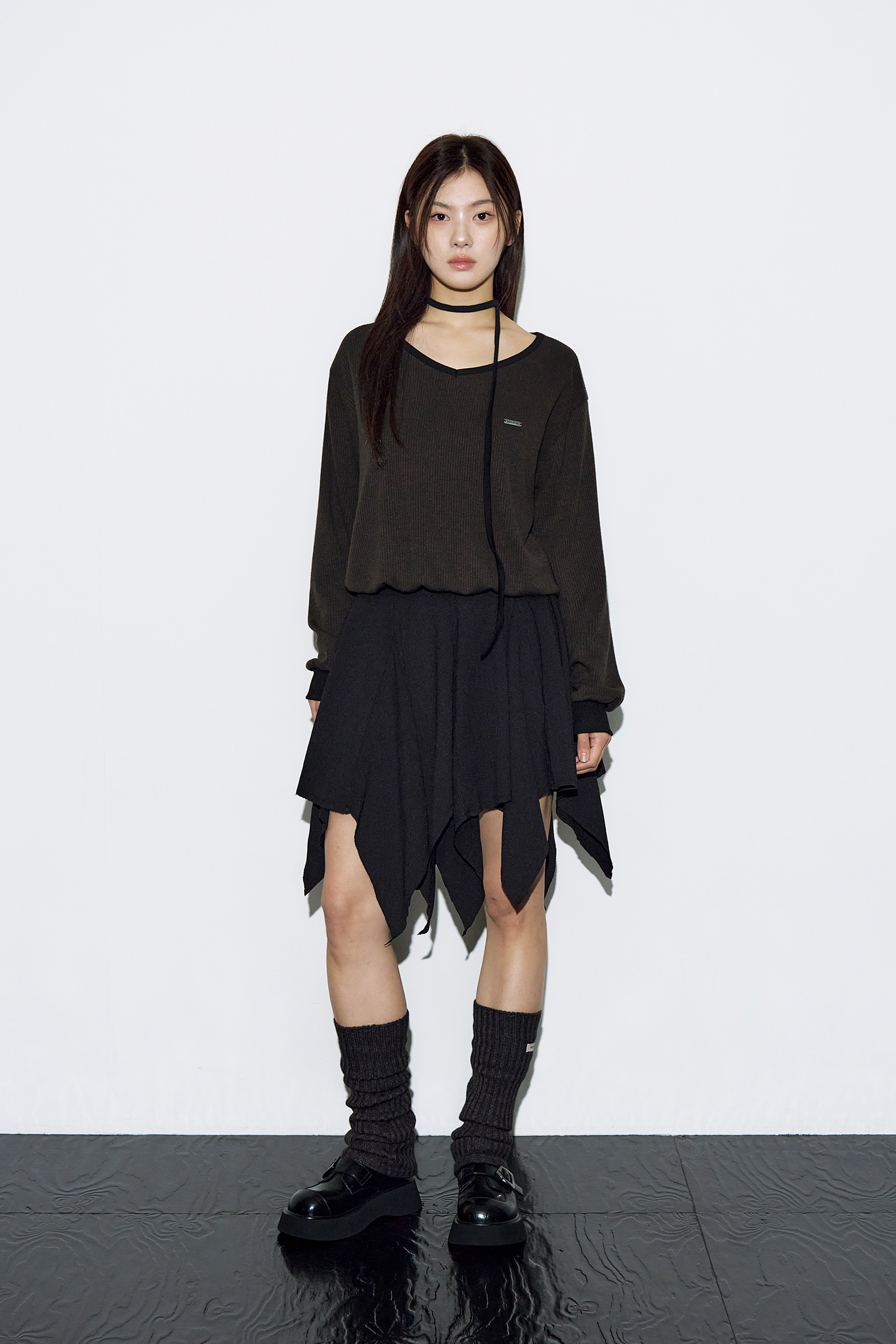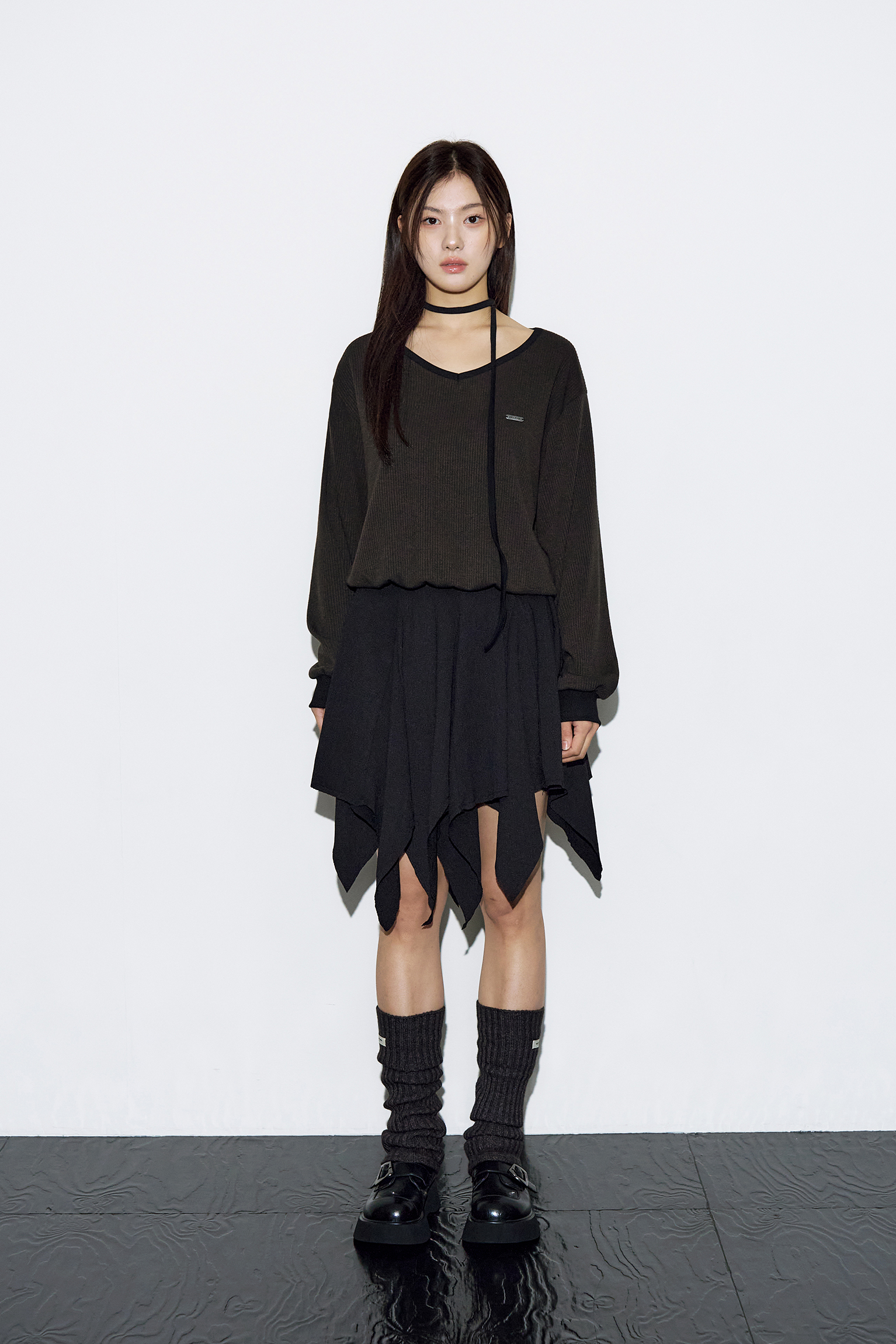 - 부드럽게 떨어지는 브이넥 라인으로 페미닌한 실루엣 완성