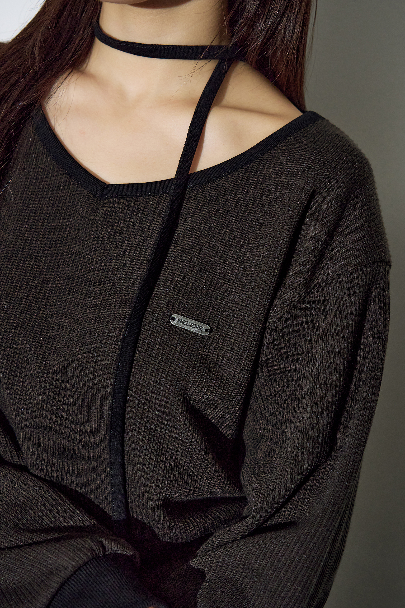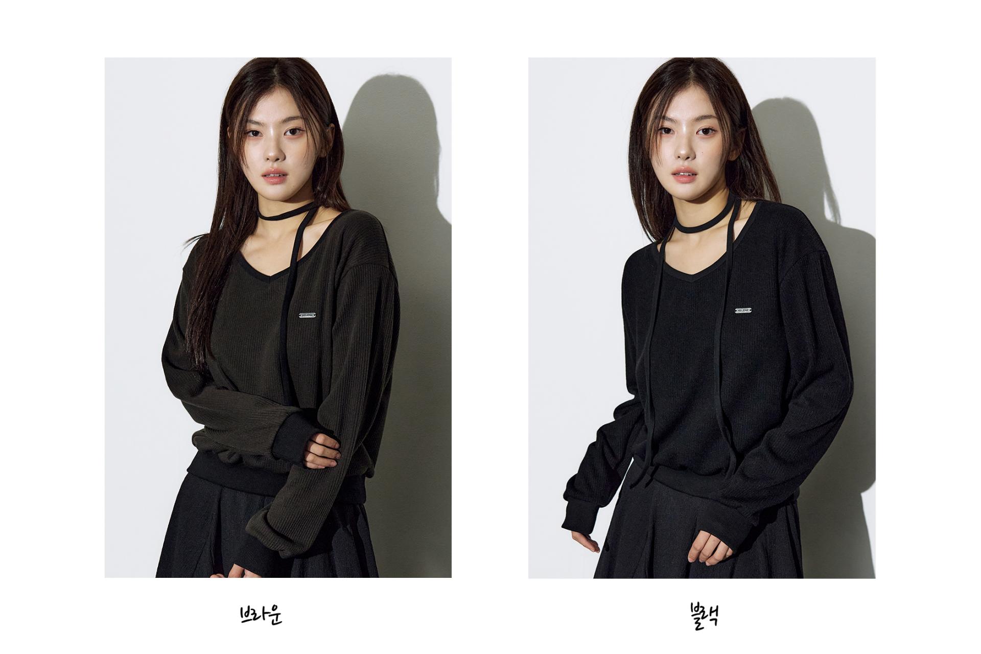 - 넥 스트랩 레이어링으로 다양한 연출이 가능한 브이넥 스웻 셔츠