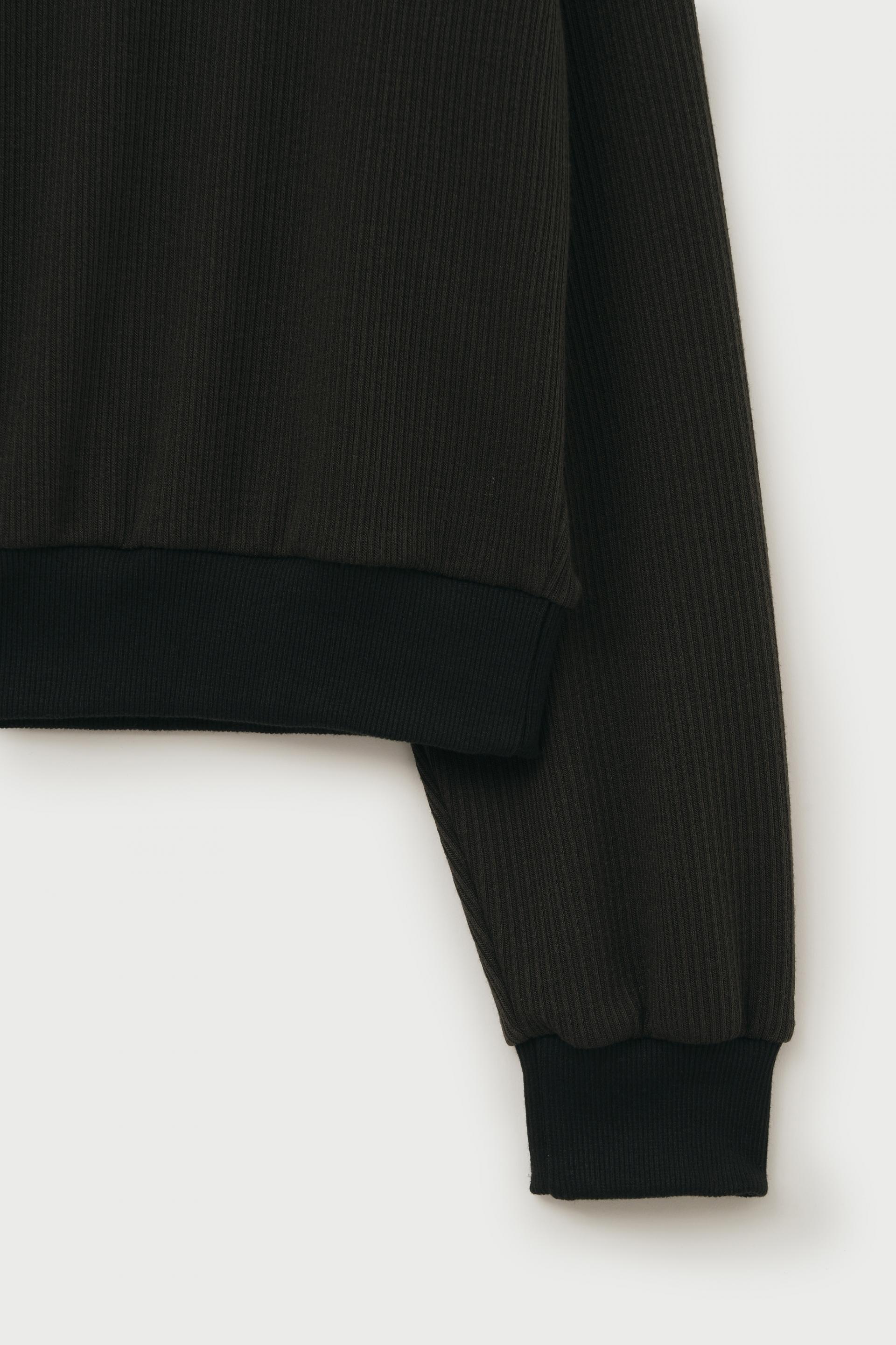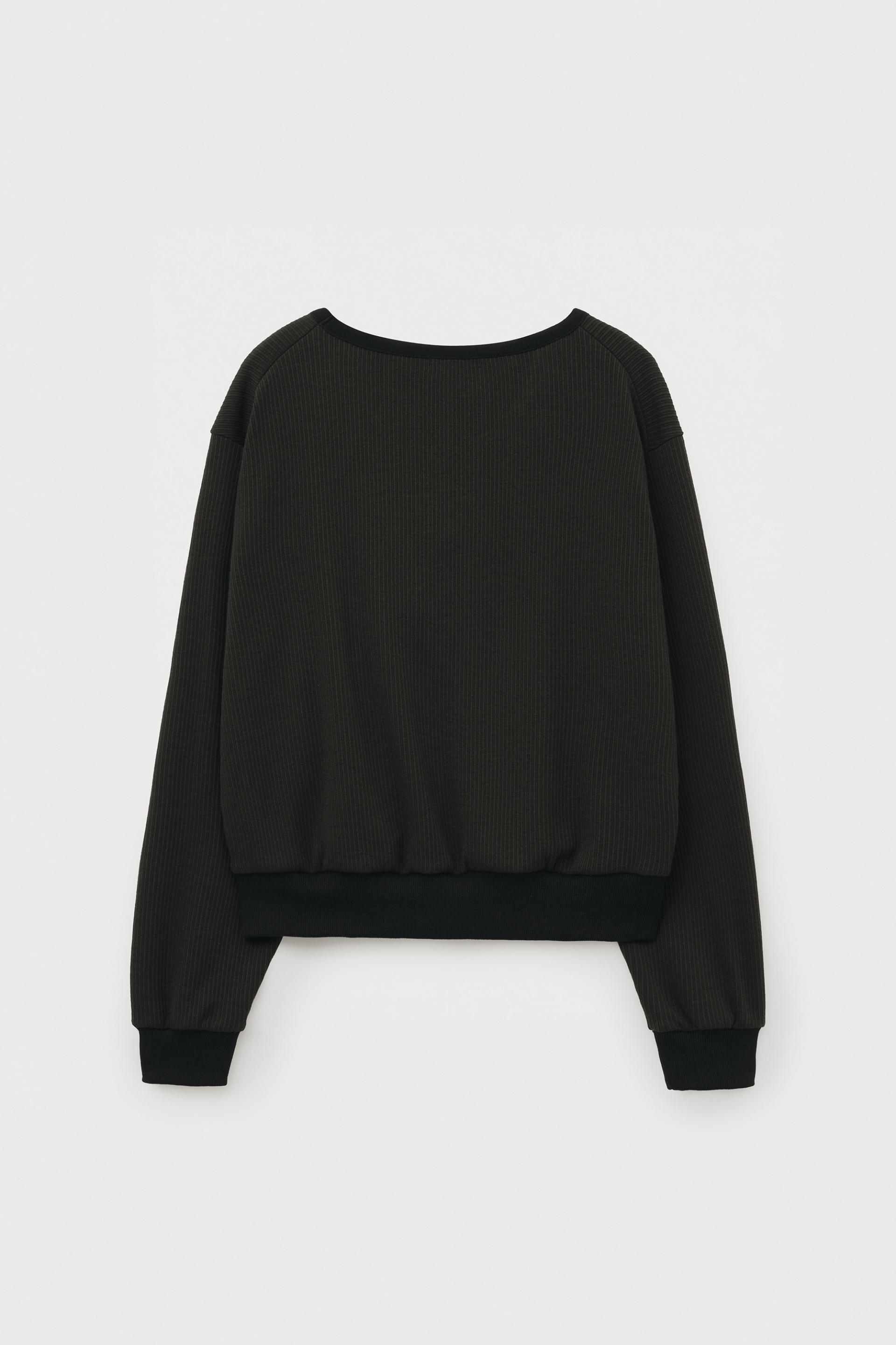 - 소매, 밑단의 배색 립 조직이 안정감 있는 핏 연출