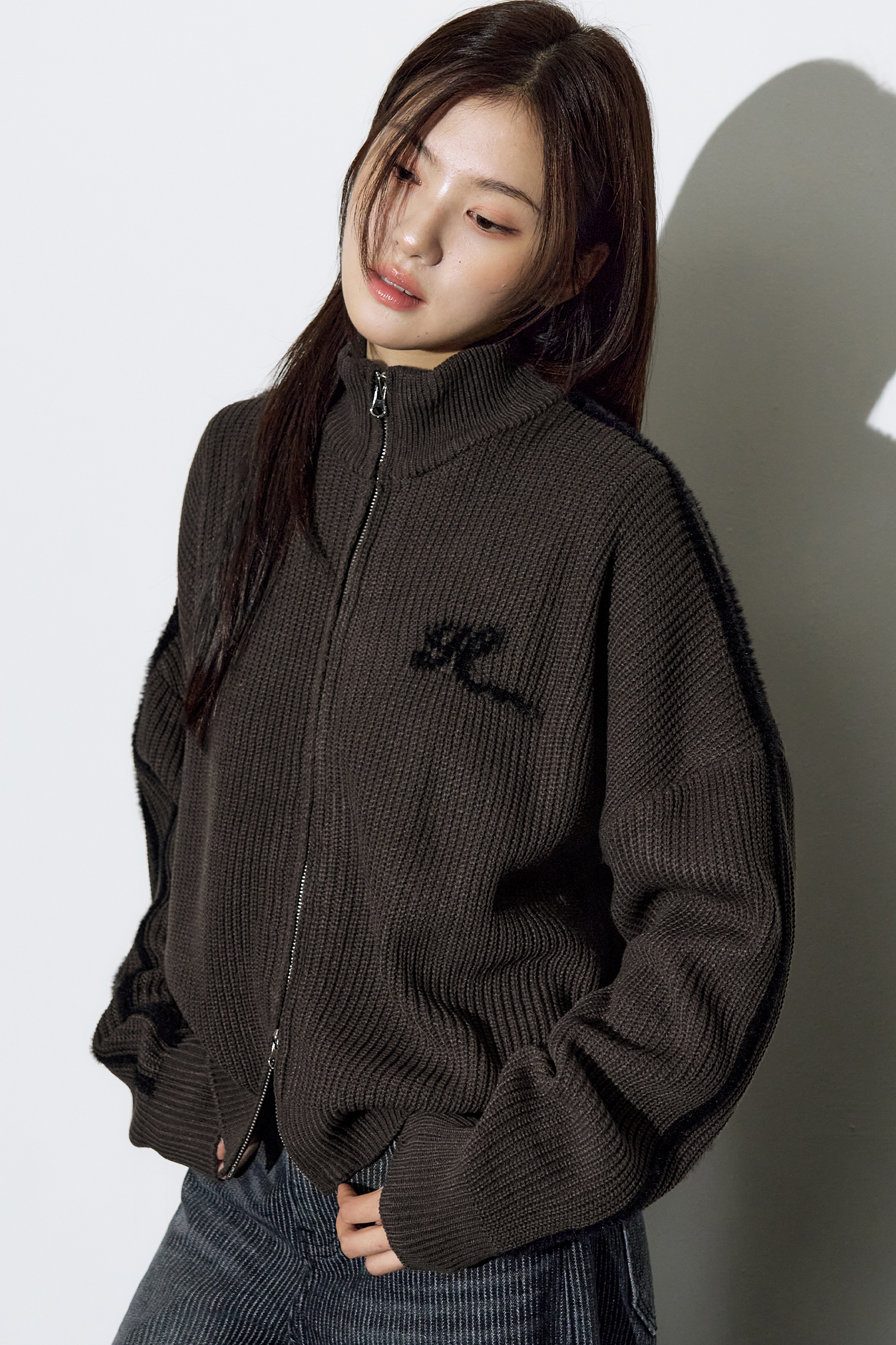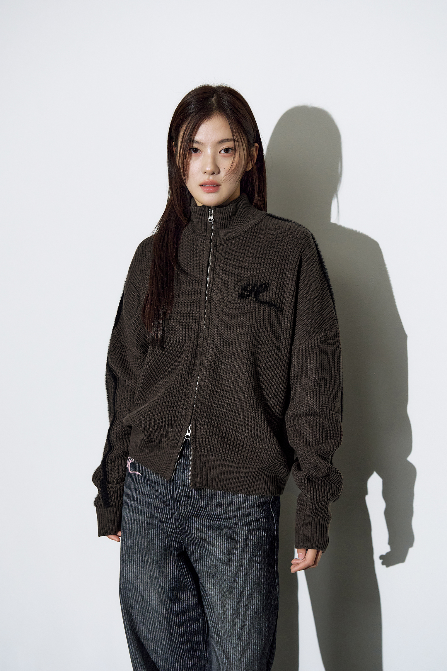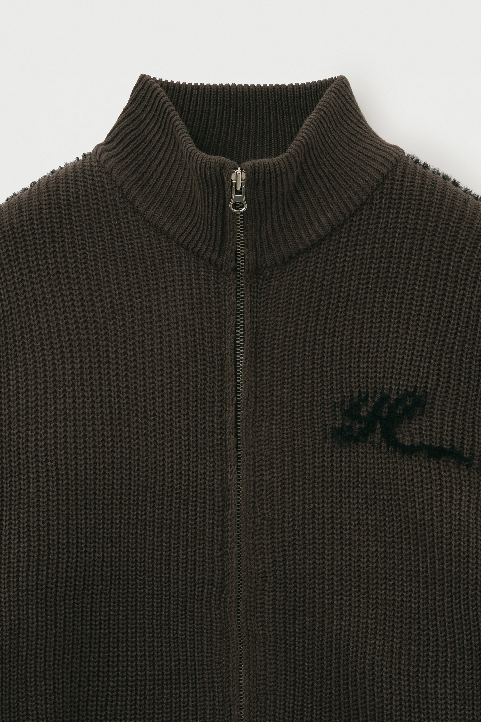 심볼 로고 헤어리 풀오버 니트 집업 [브라운-블랙]