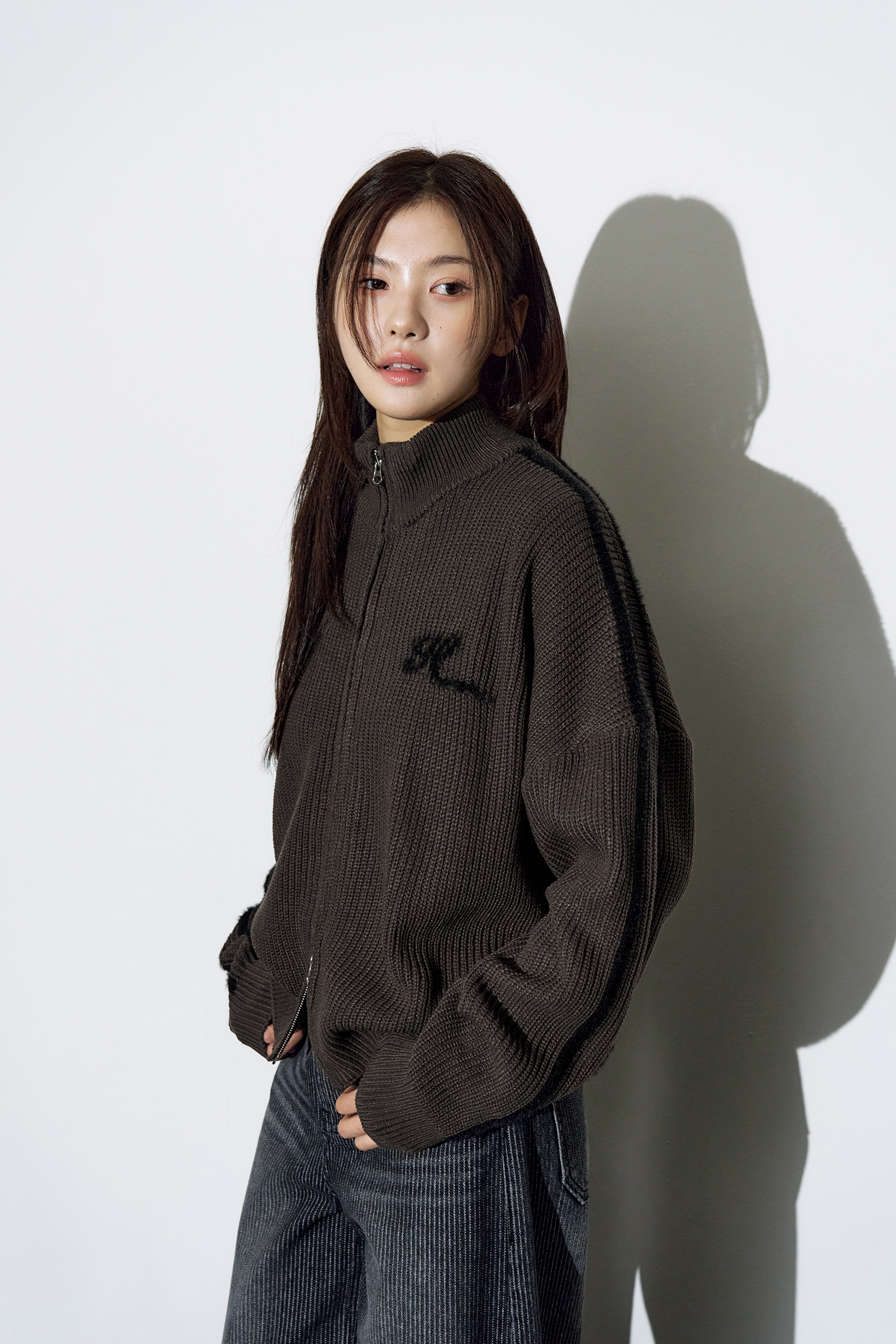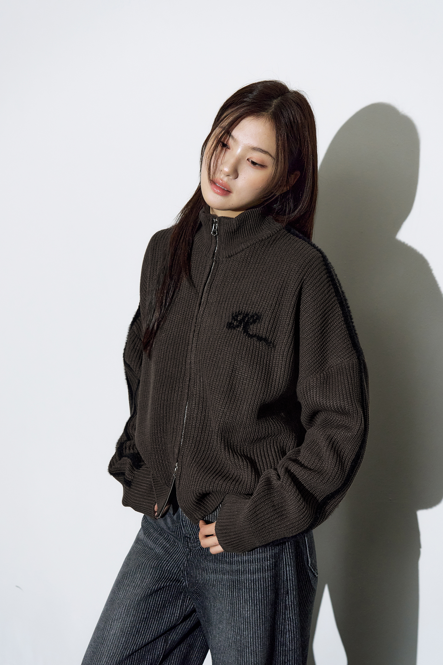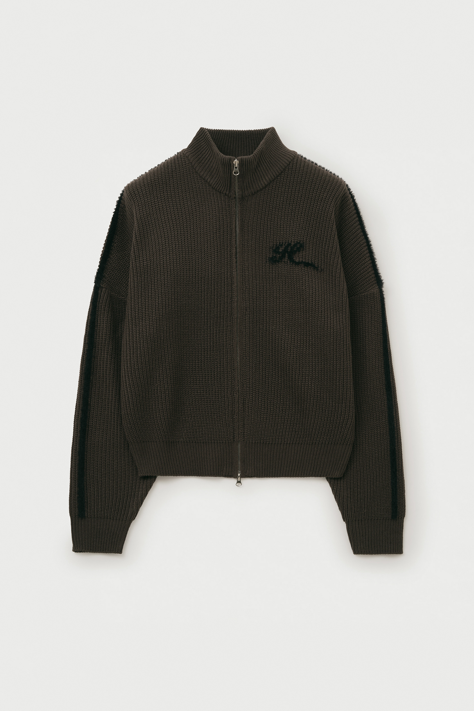 심볼 로고 헤어리 풀오버 니트 집업 [브라운-블랙]