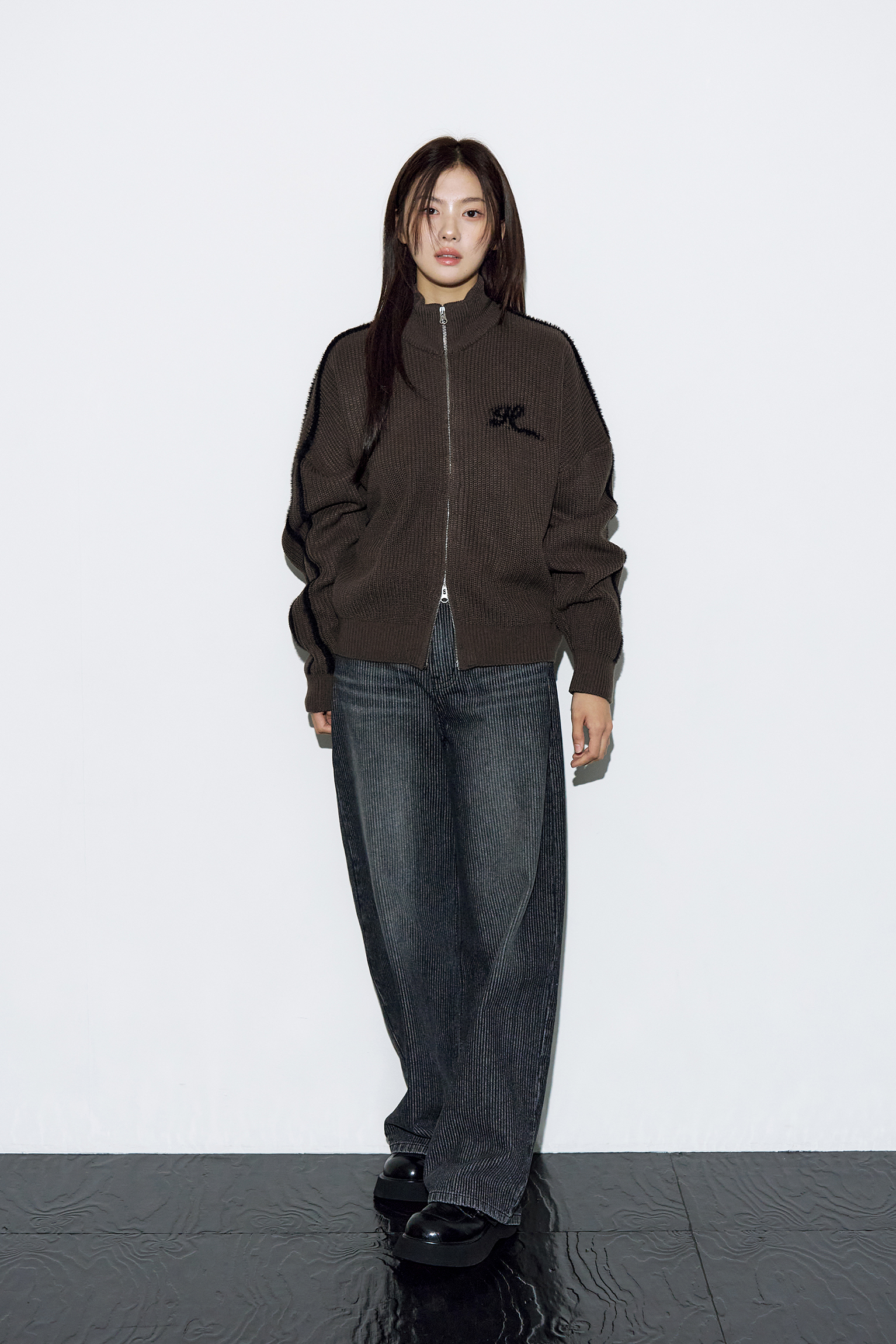 - 오버핏 세미 하이넥 니트 집업입니다.