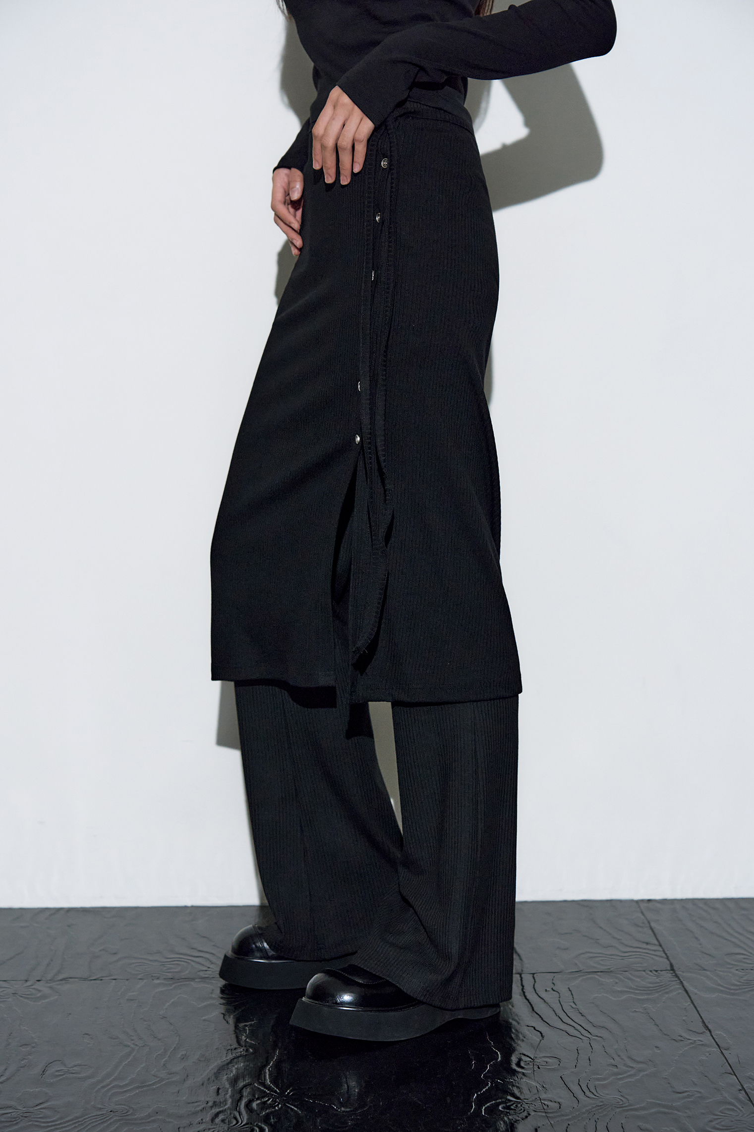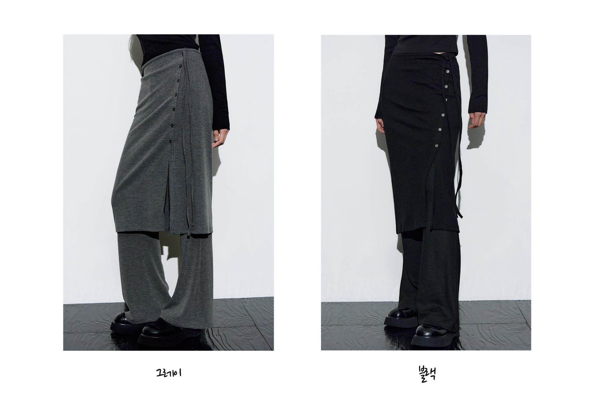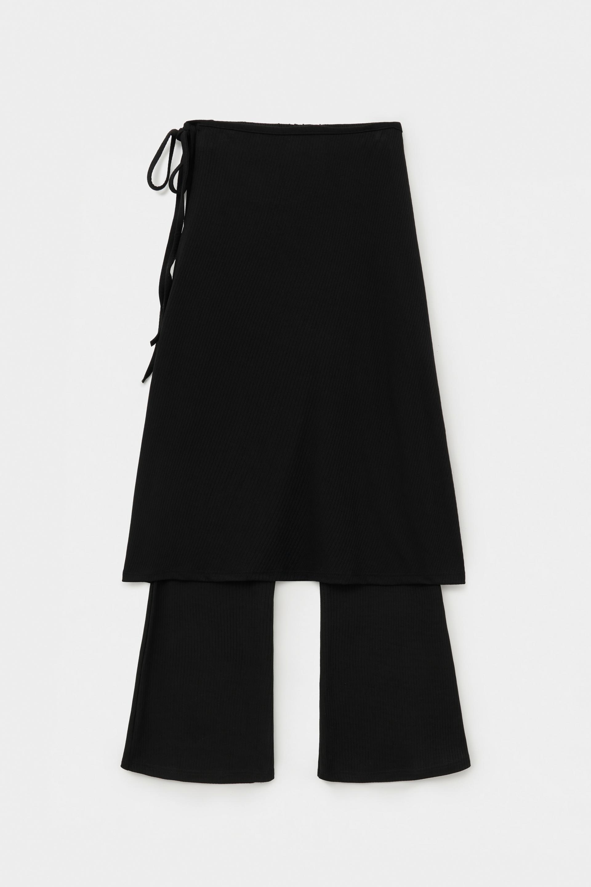 [11월 28일 예약배송] 아브보르 리브드 레이어드 스커트 팬츠 [블랙]