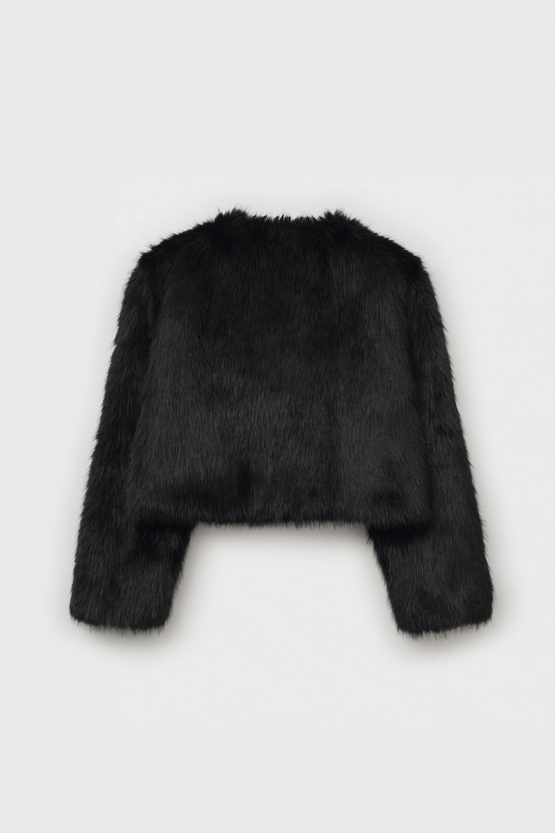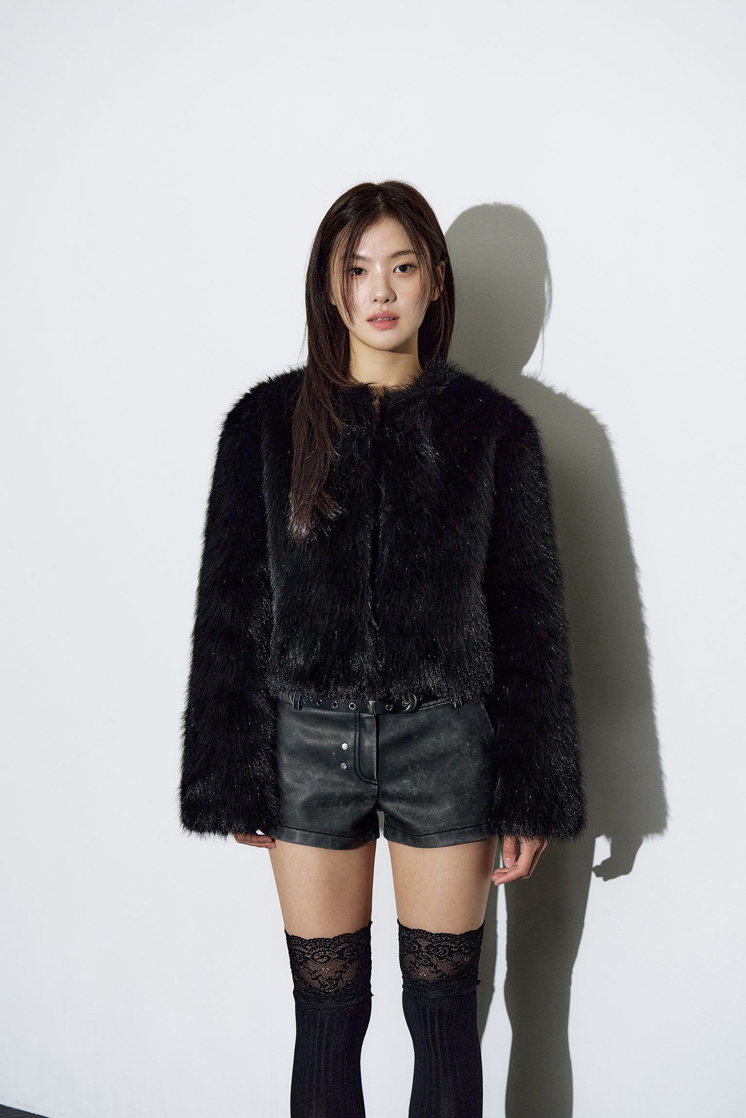 - 트렌디한 무드를 더하는 숏 기장의 칼라리스 퍼 코트입니다.
