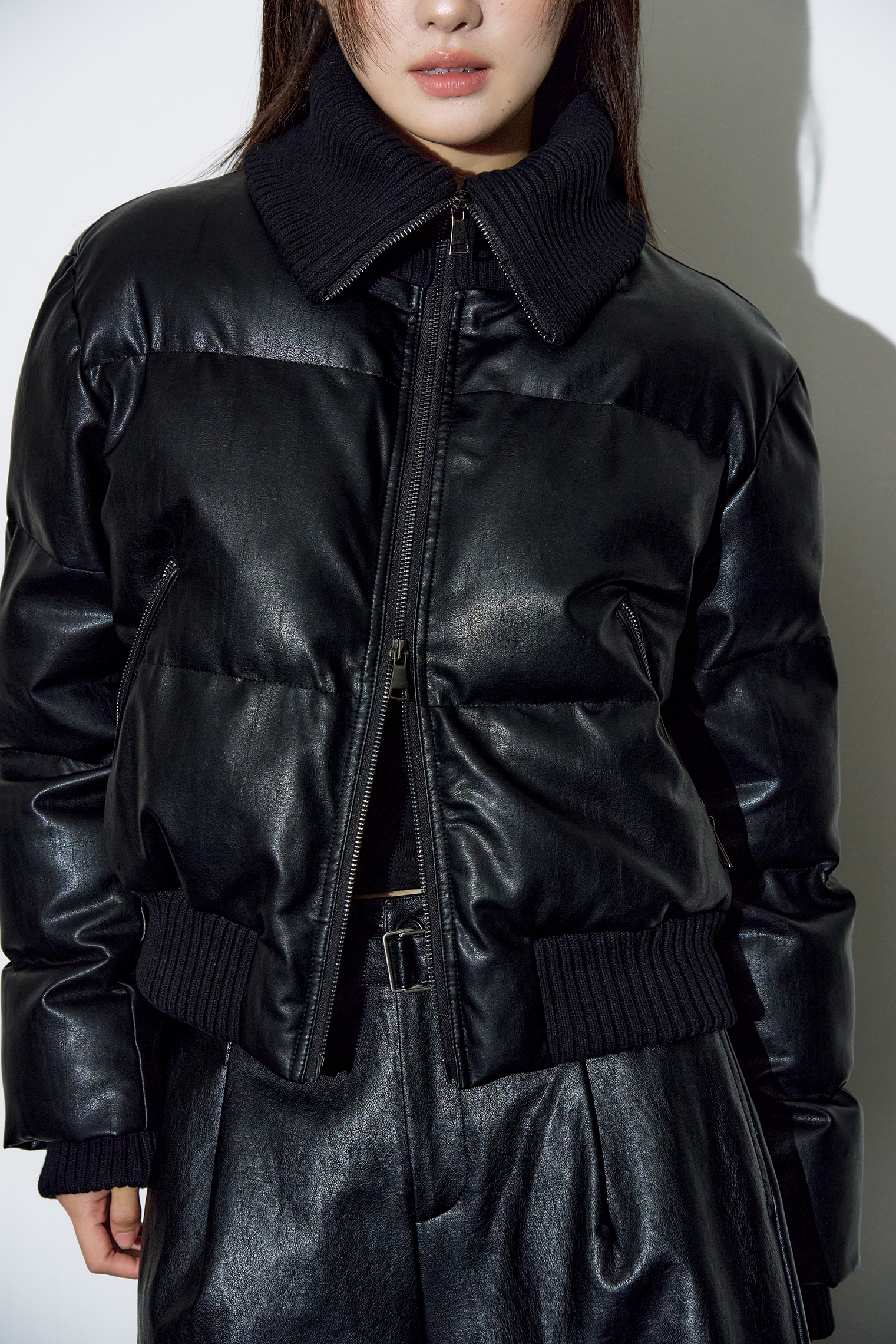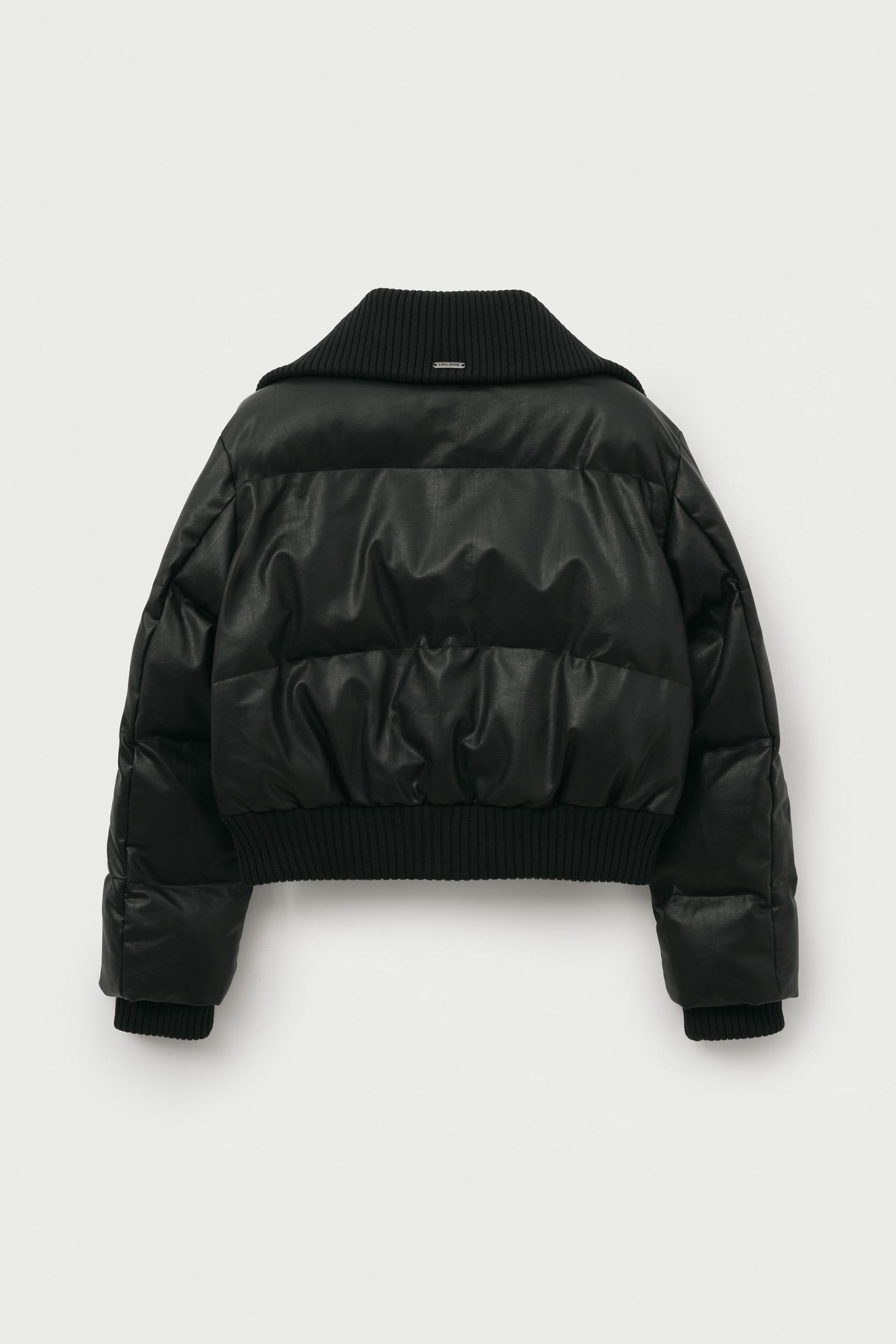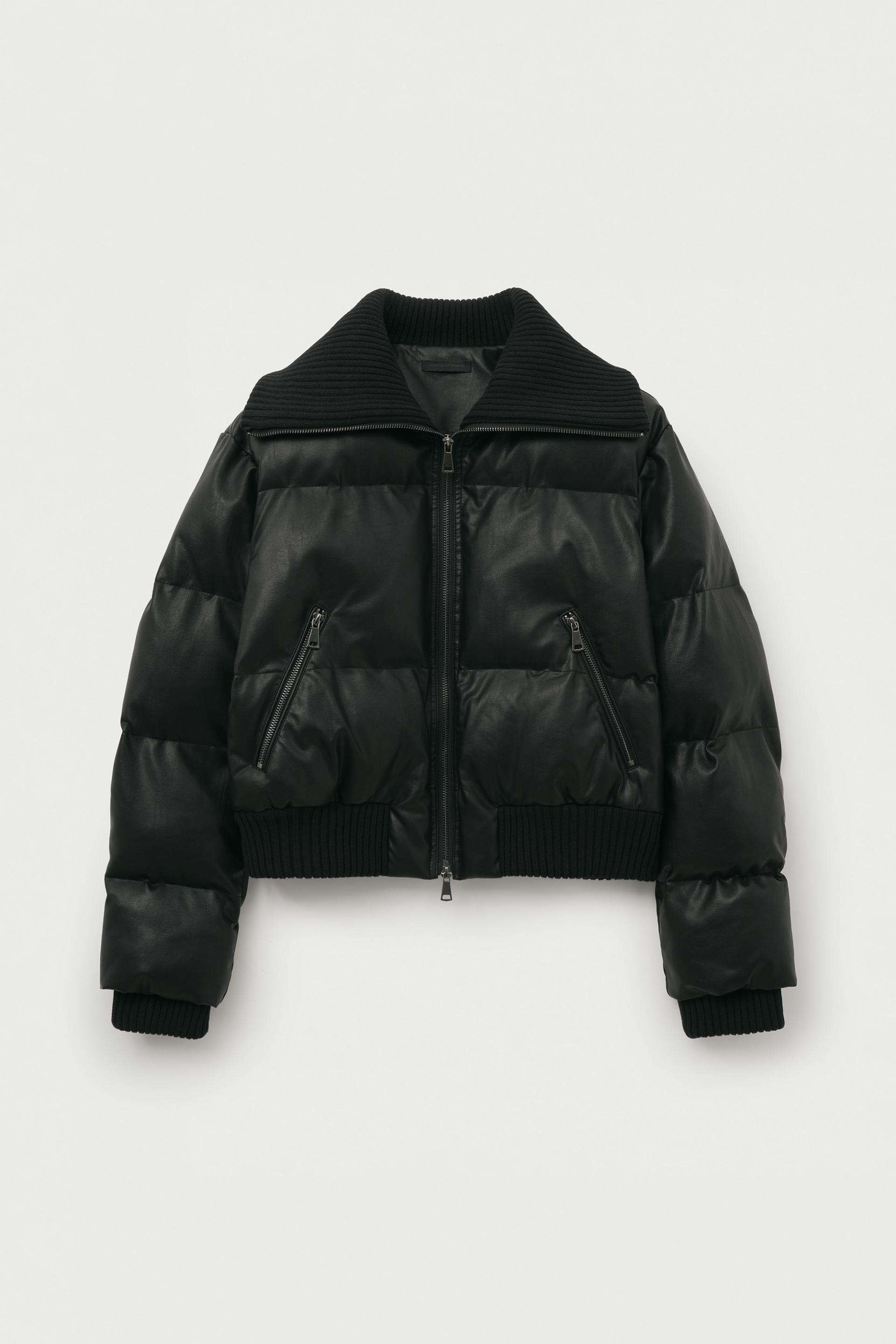 레더 리브드 칼라 웰론 점퍼 [블랙]