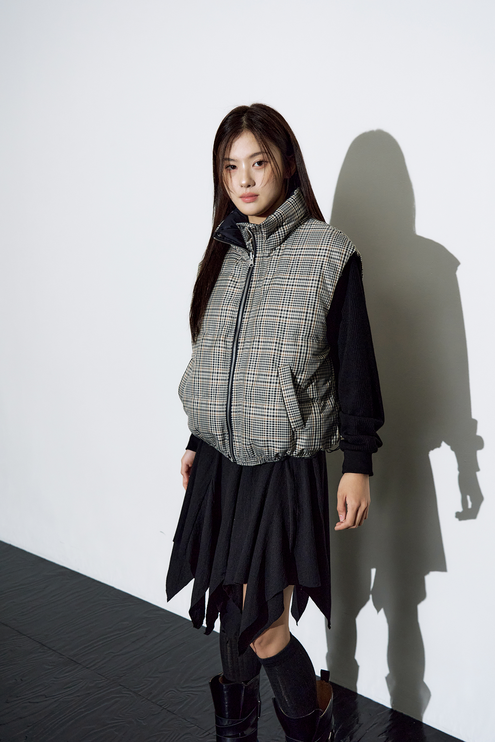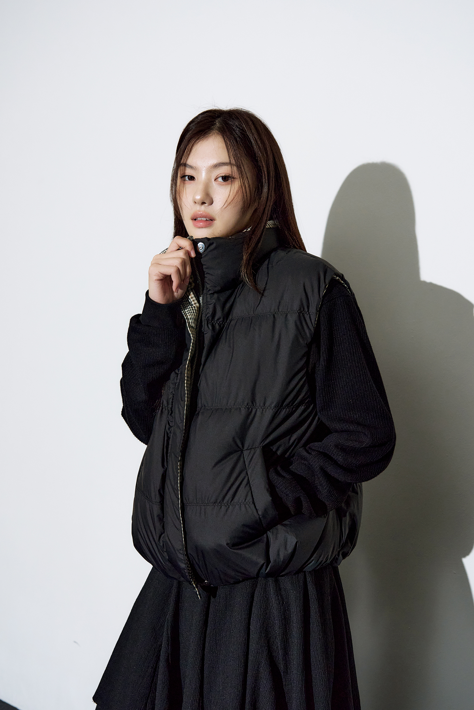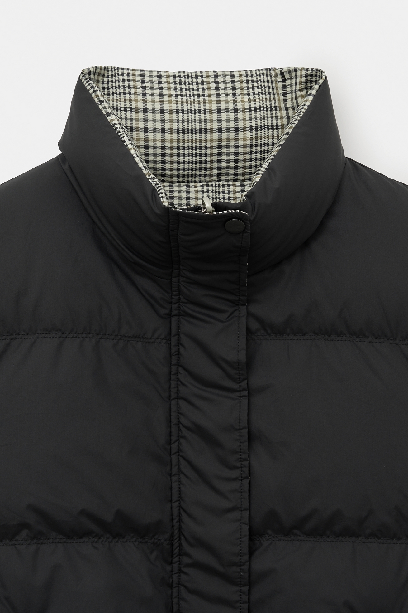 - 리버시블 디자인으로 솔리드와 클래식한 체크 패턴을 모두 연출할 수 있는 덕다운 푸퍼 베스트입니다.