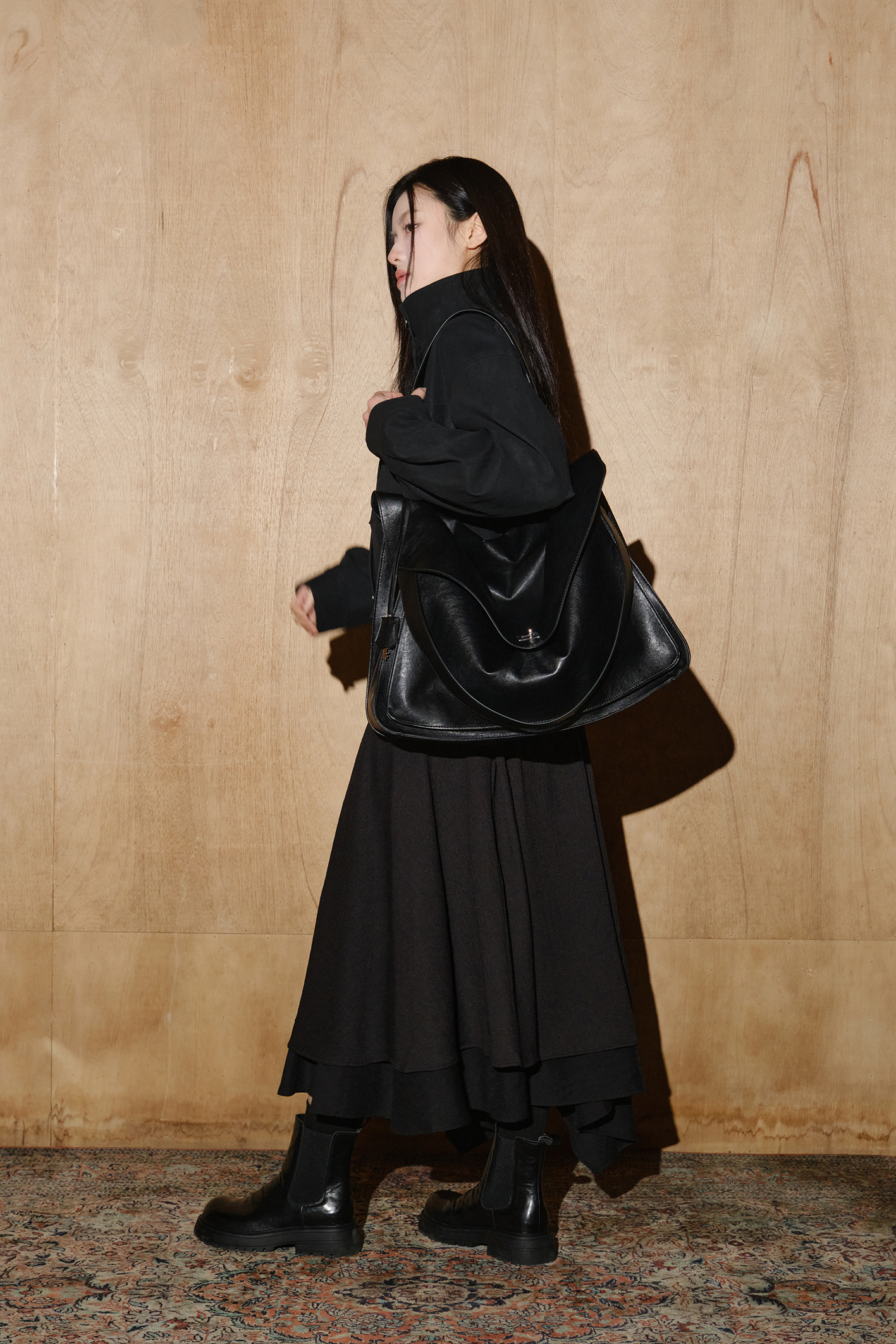 레더 드레이프 소프트 숄더 호보백 [블랙]