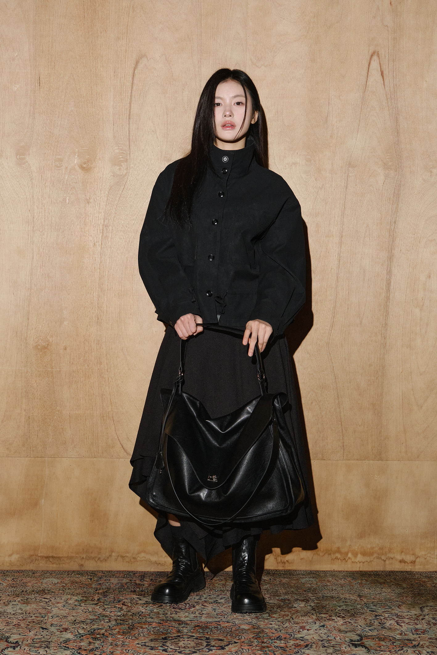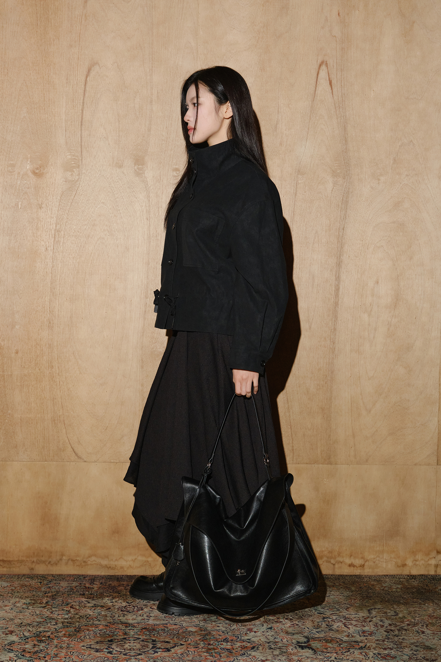 - 소프트한 터치감의 비건 레더 패브릭으로 제작되어 자연스럽게 흐르는 형태감을 연출합니다.