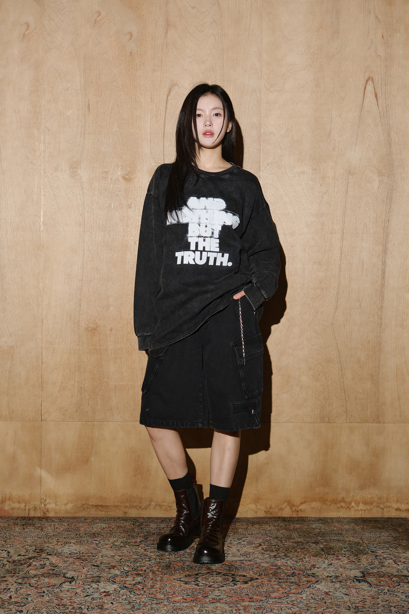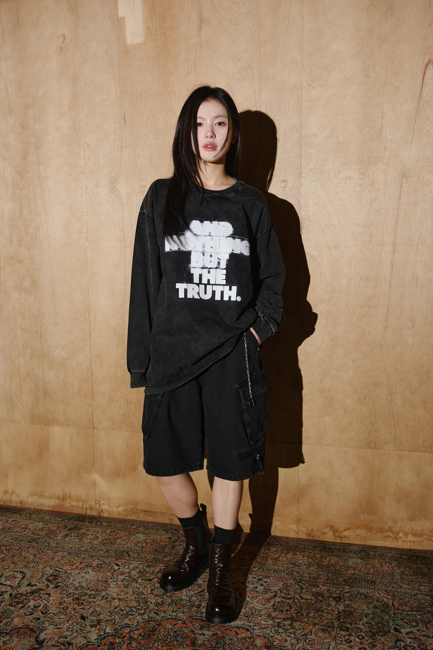 - 피그먼트 워싱 가공을 거친 탄탄한 코튼 패브릭으로 제작되어 안정적인 실루엣을 유지합니다.