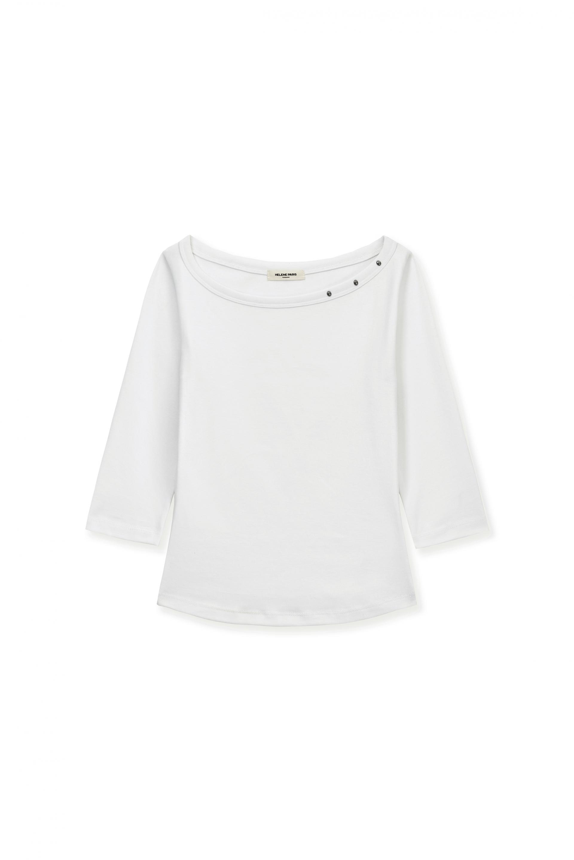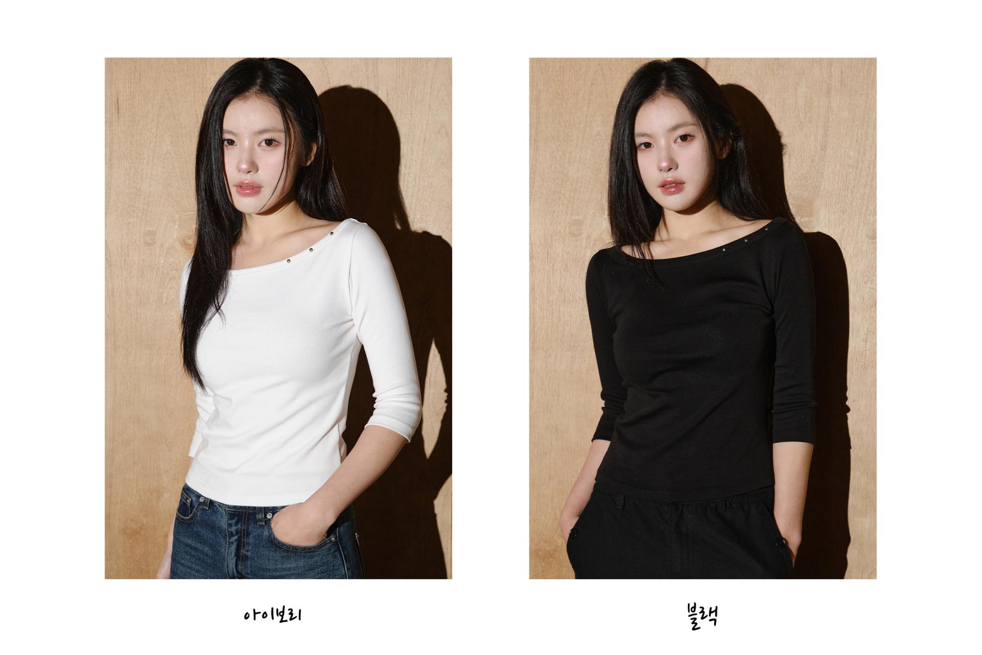 [5월 13일 예약배송] 7부 스터드 보트넥 티셔츠 [아이보리]