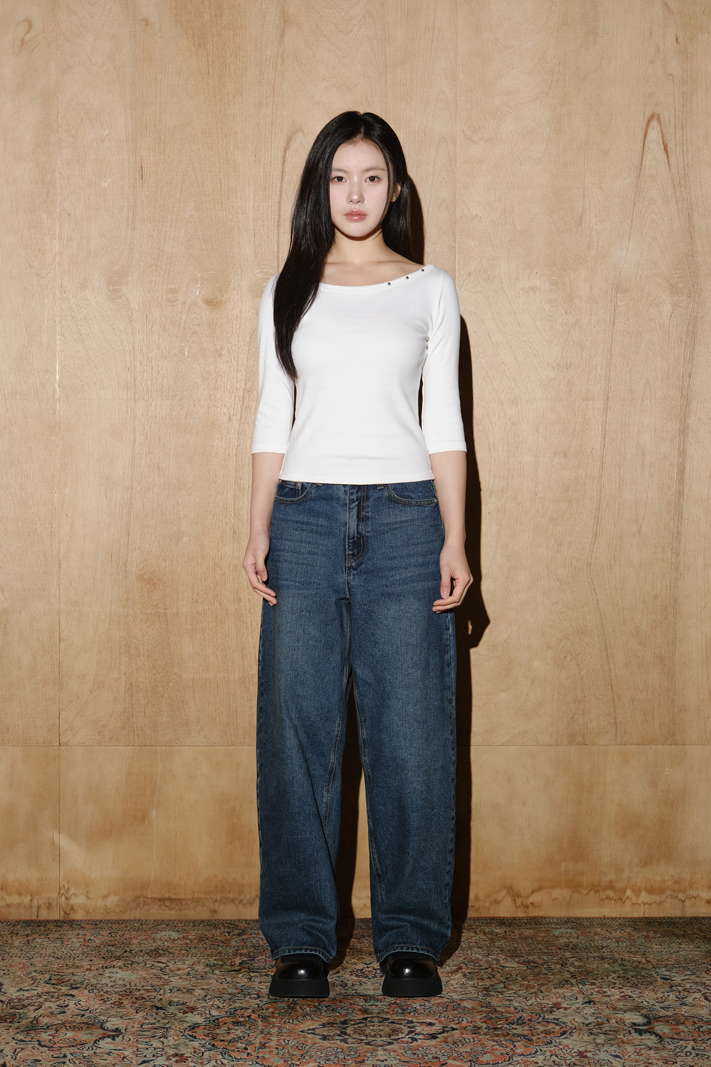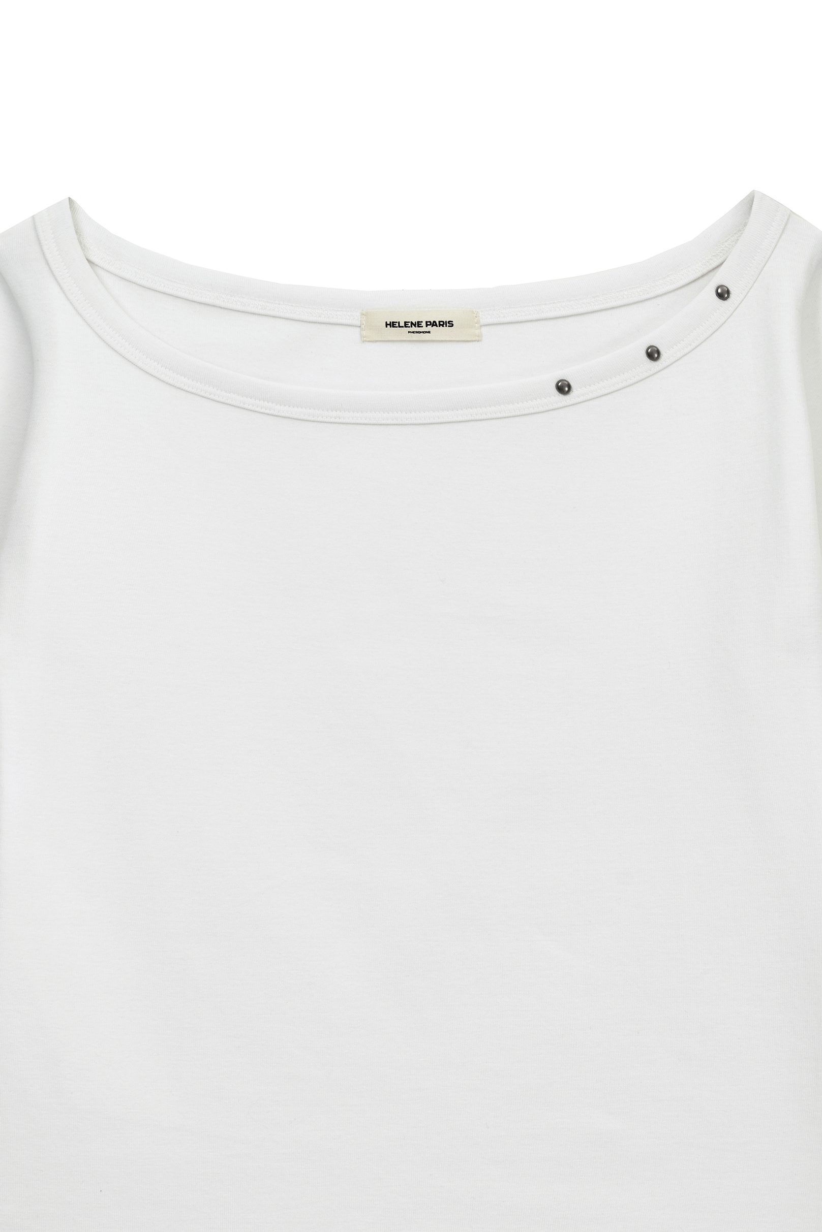 7부 스터드 보트넥 티셔츠 [아이보리]