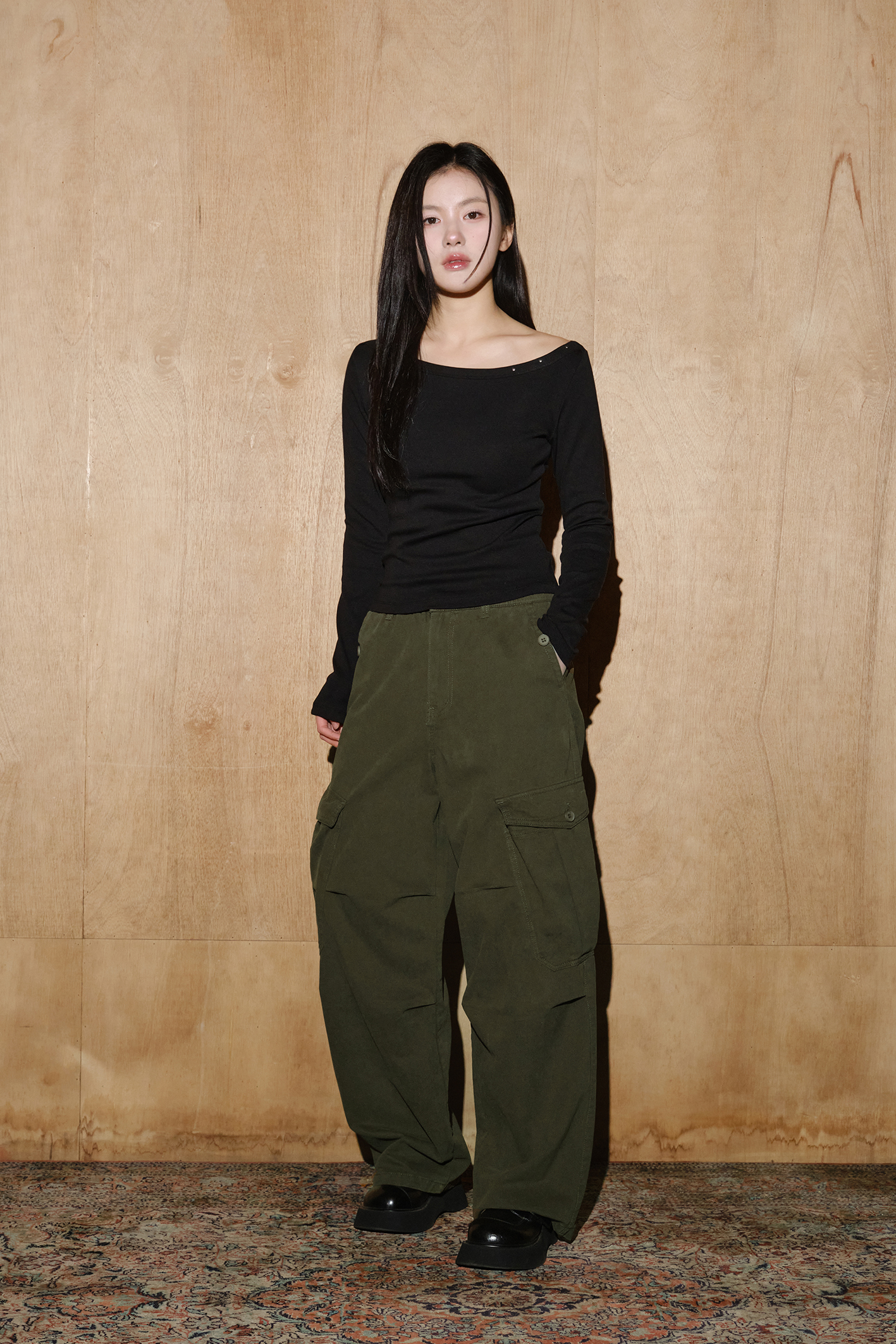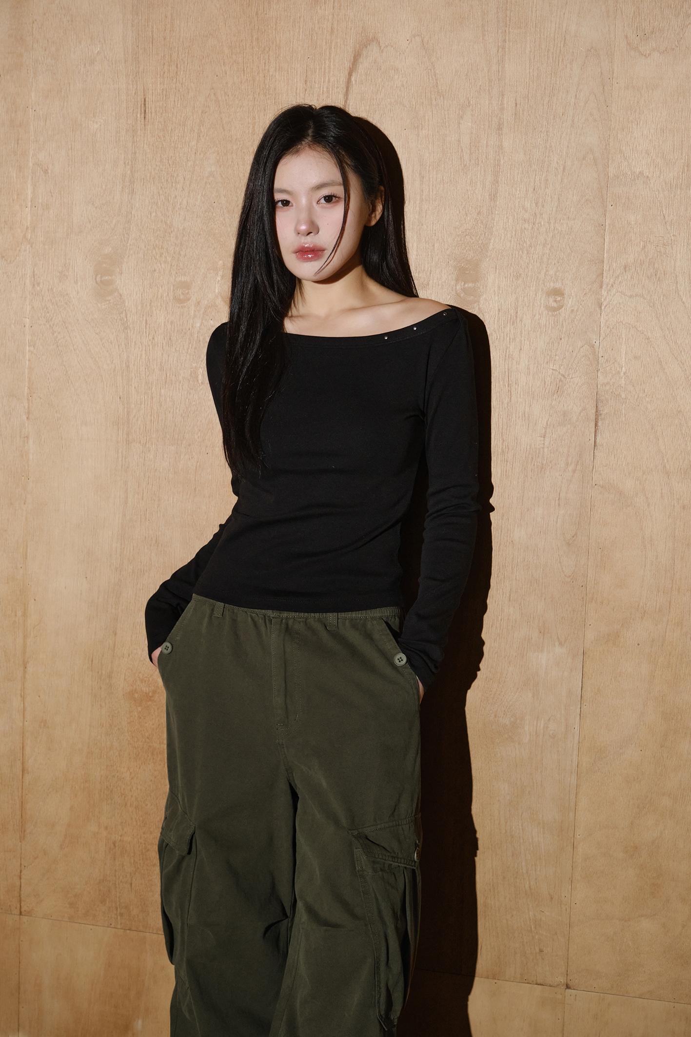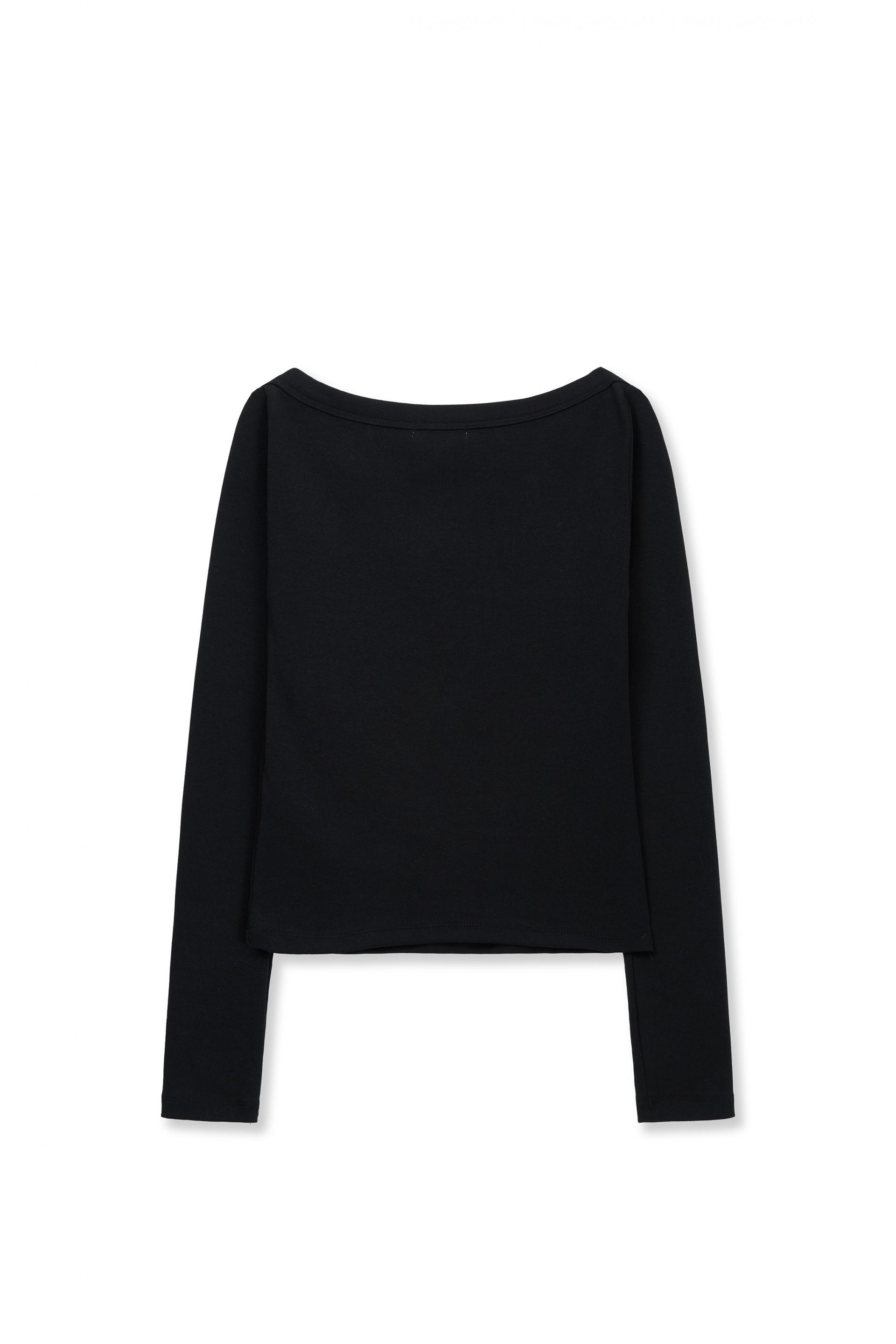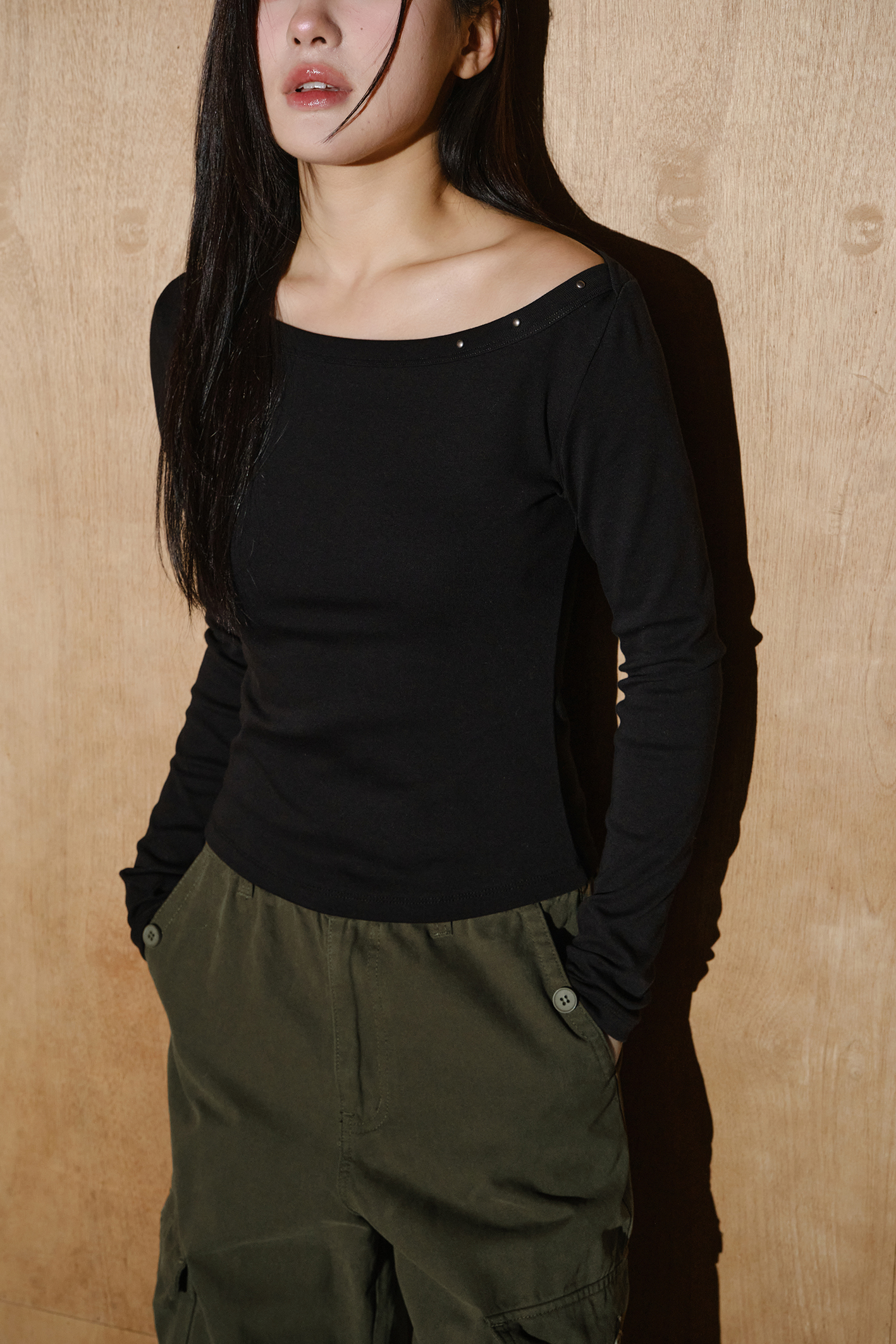 보트넥 언벨런스 스터드 롱 슬리브 [블랙]