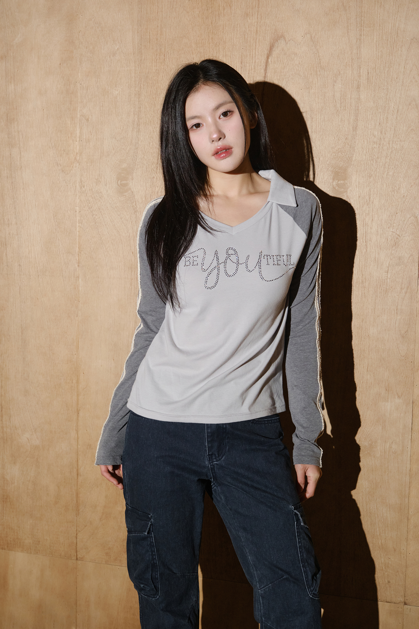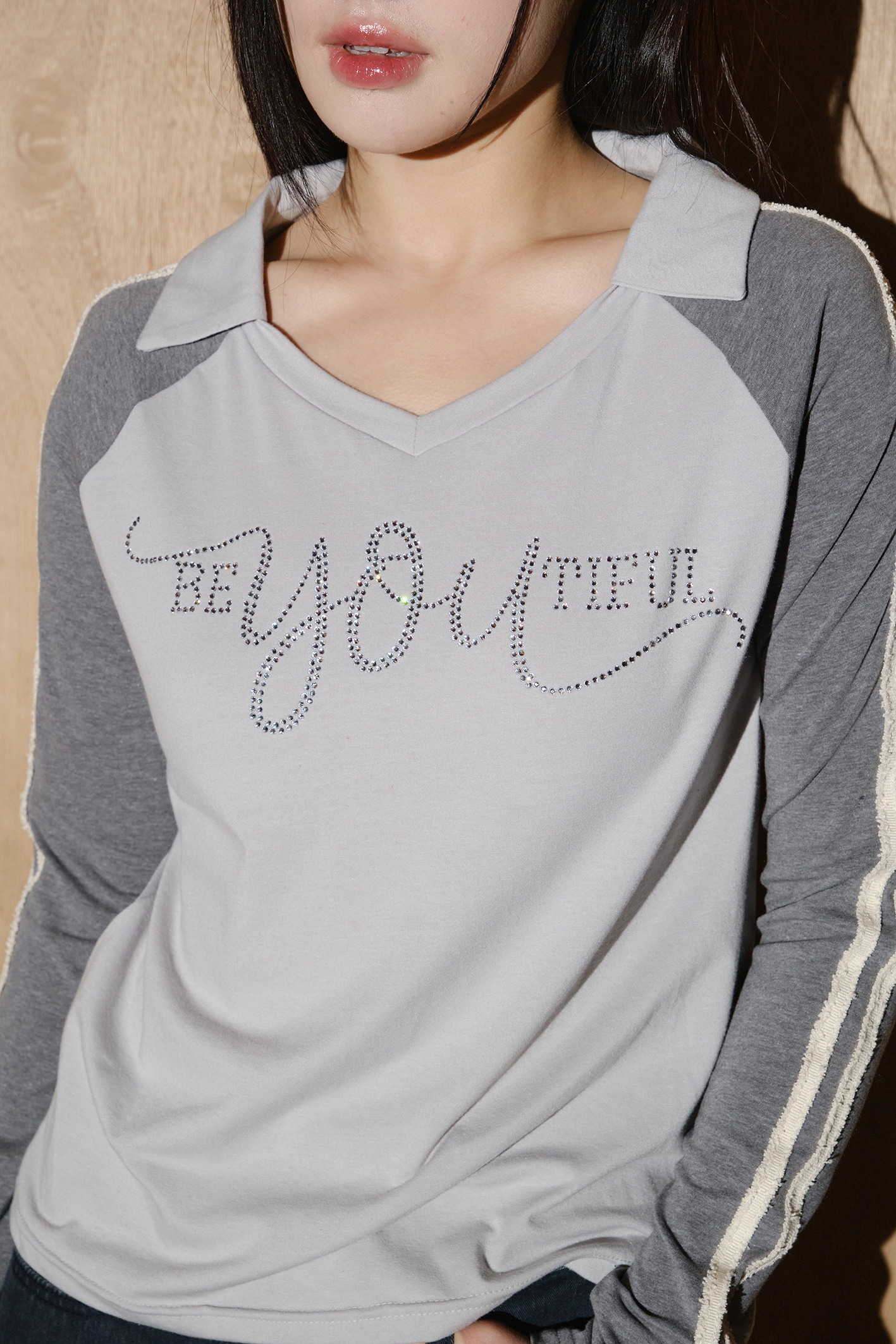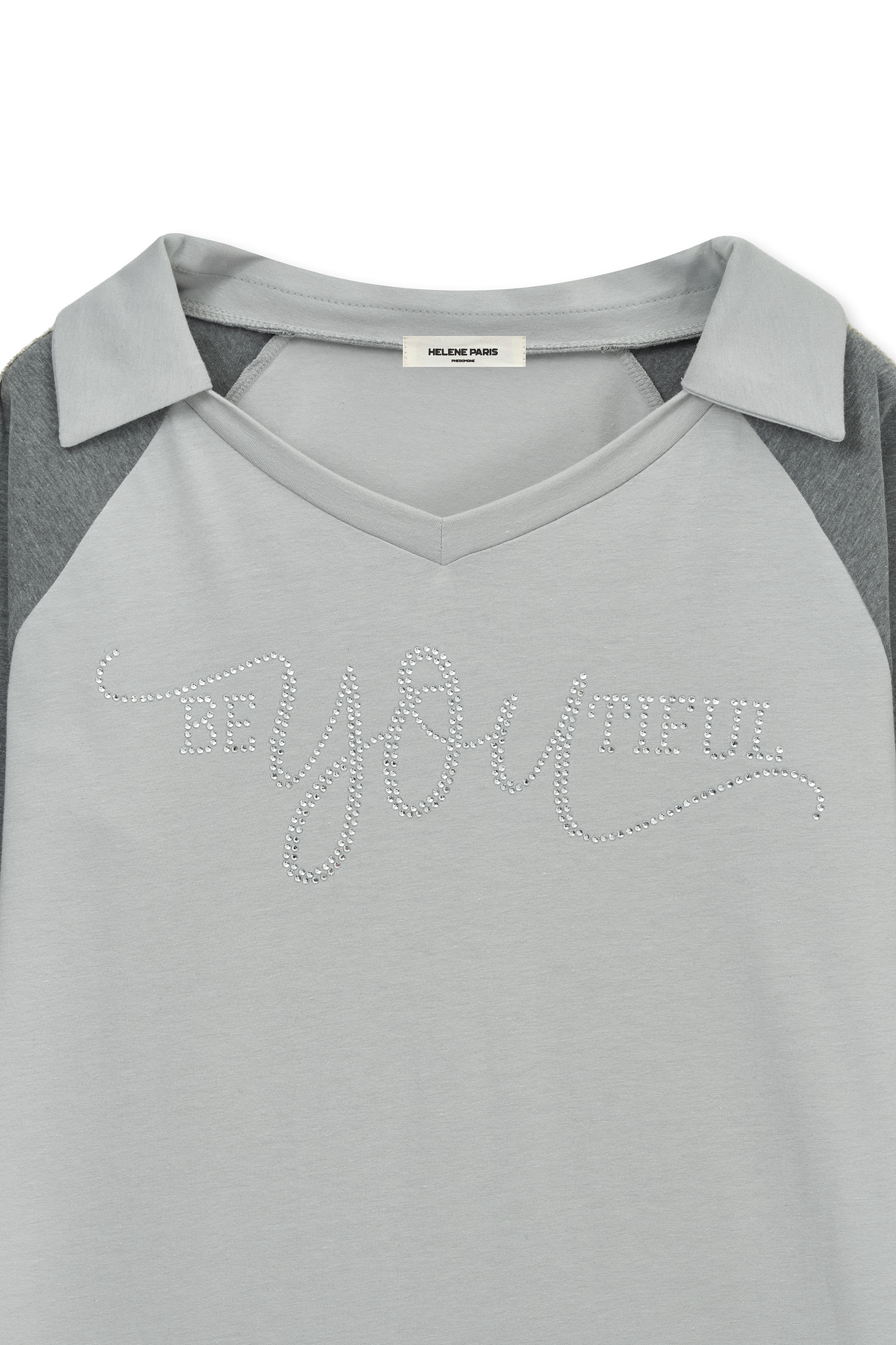 - SS 시즌에 잘 어울리는 맑은 스카이 컬러와 그레이의 래글런 배색 조합이 특징입니다.