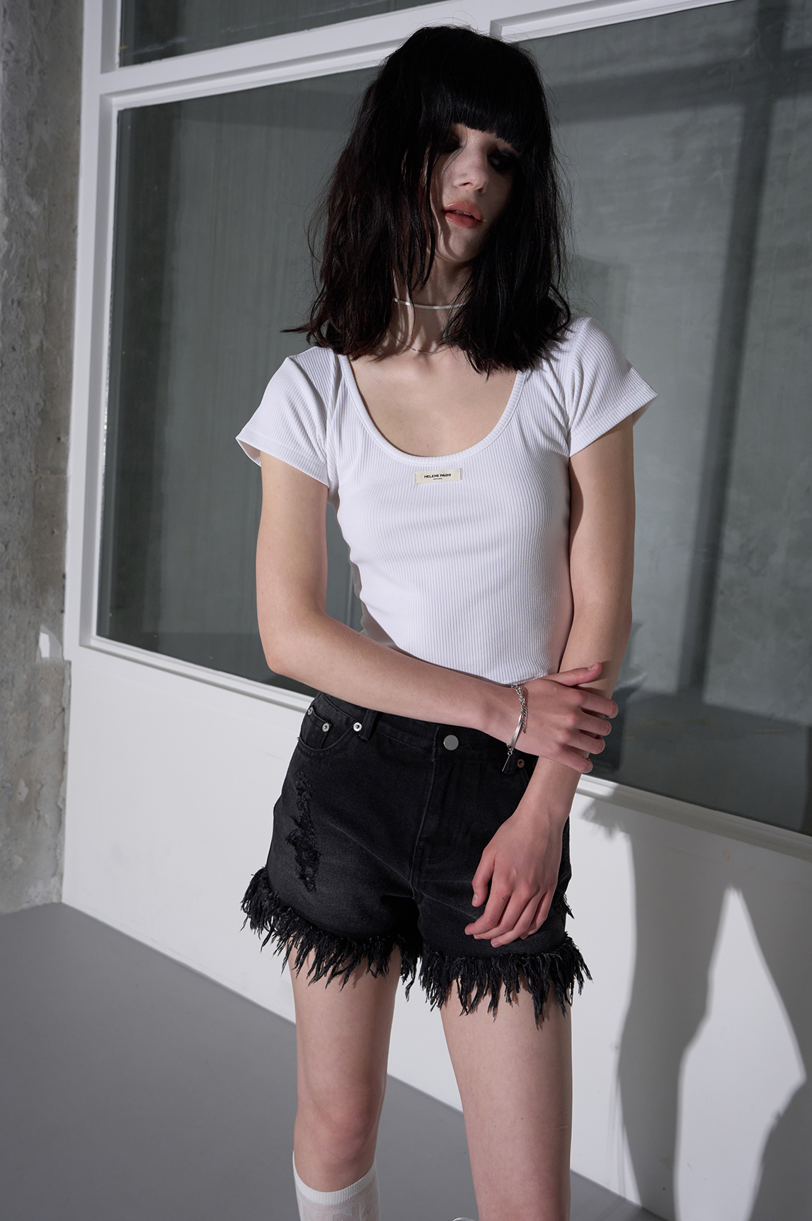 리브드 하프 슬리브 [화이트]