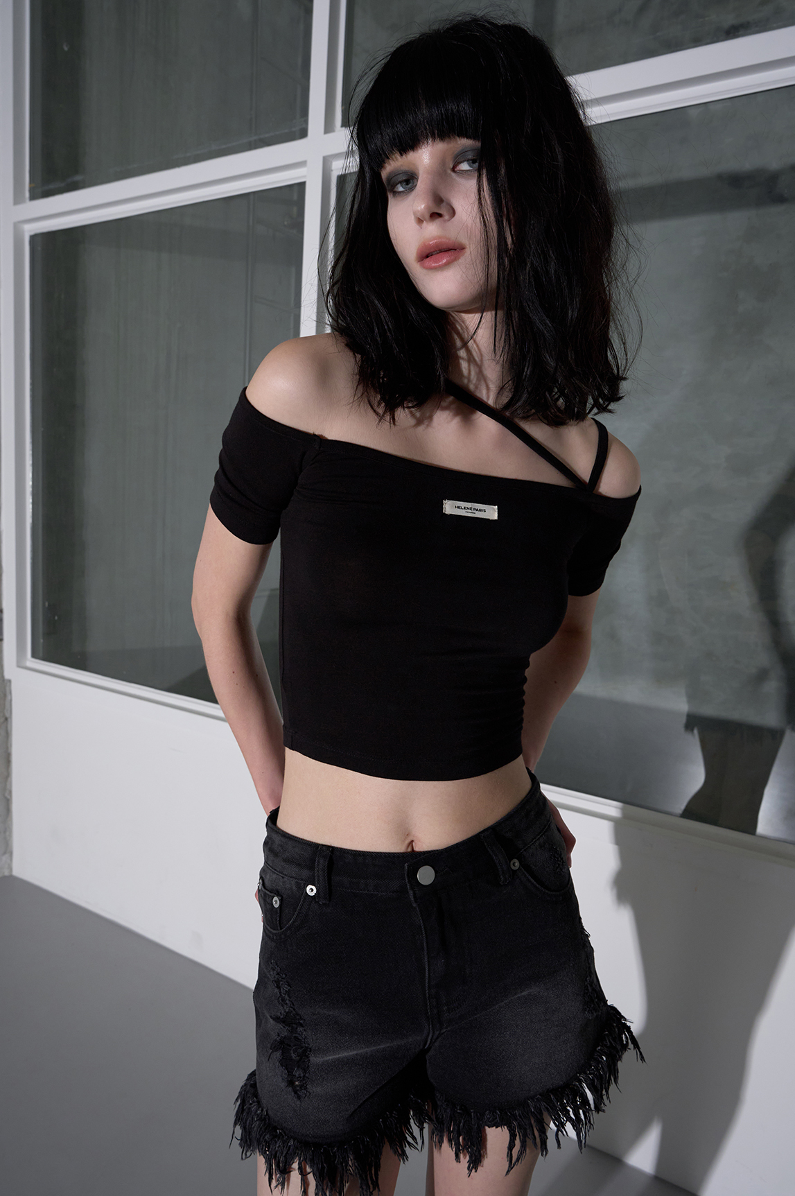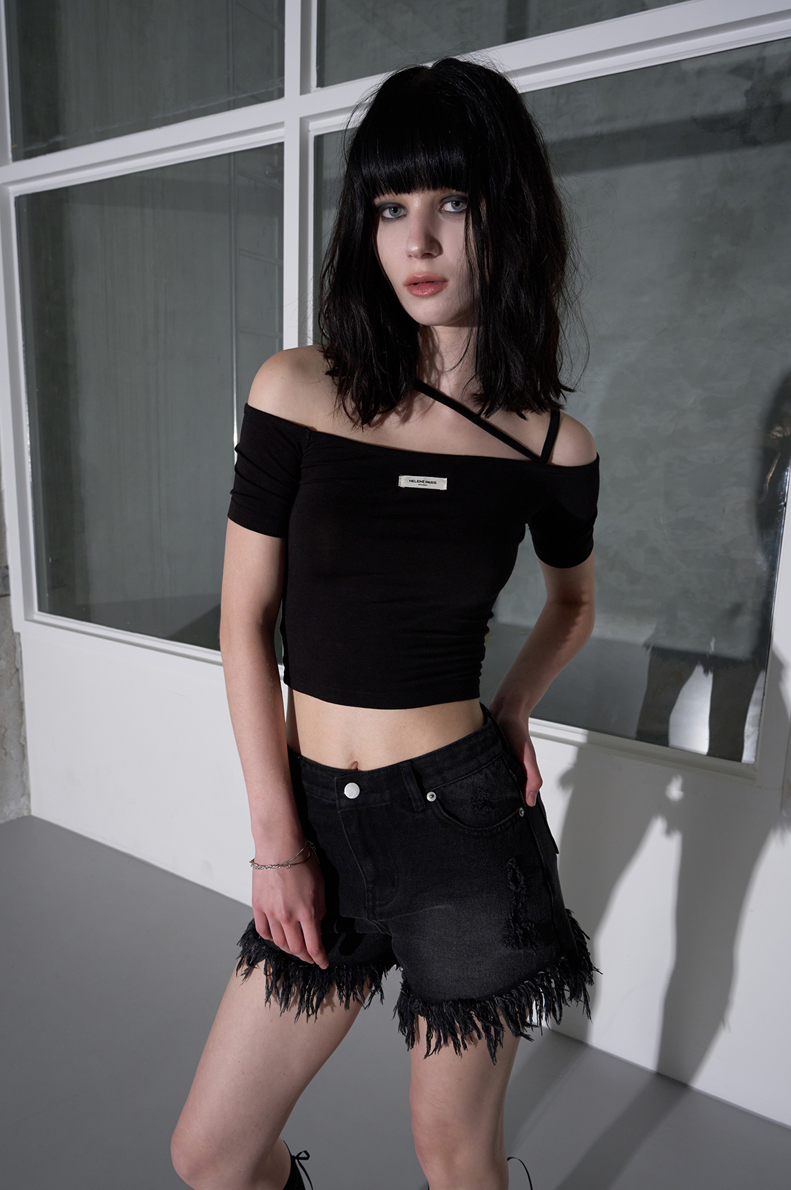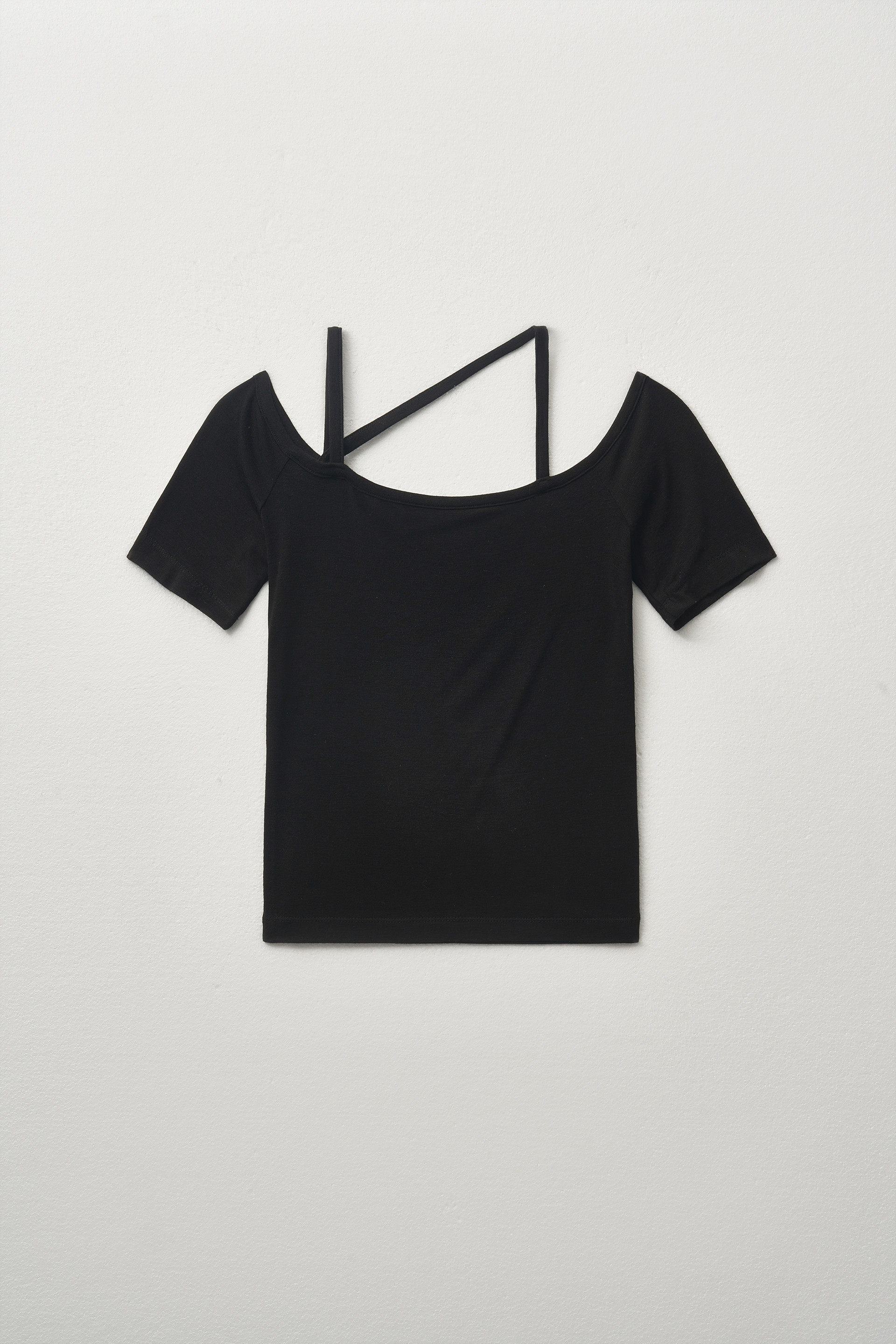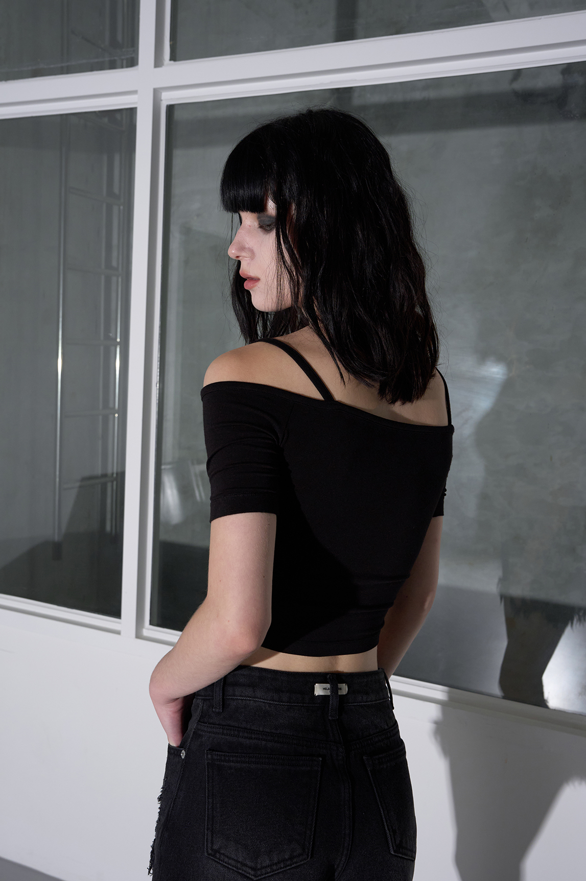 - 언밸런스한 어깨 디자인이 매력적인 탑