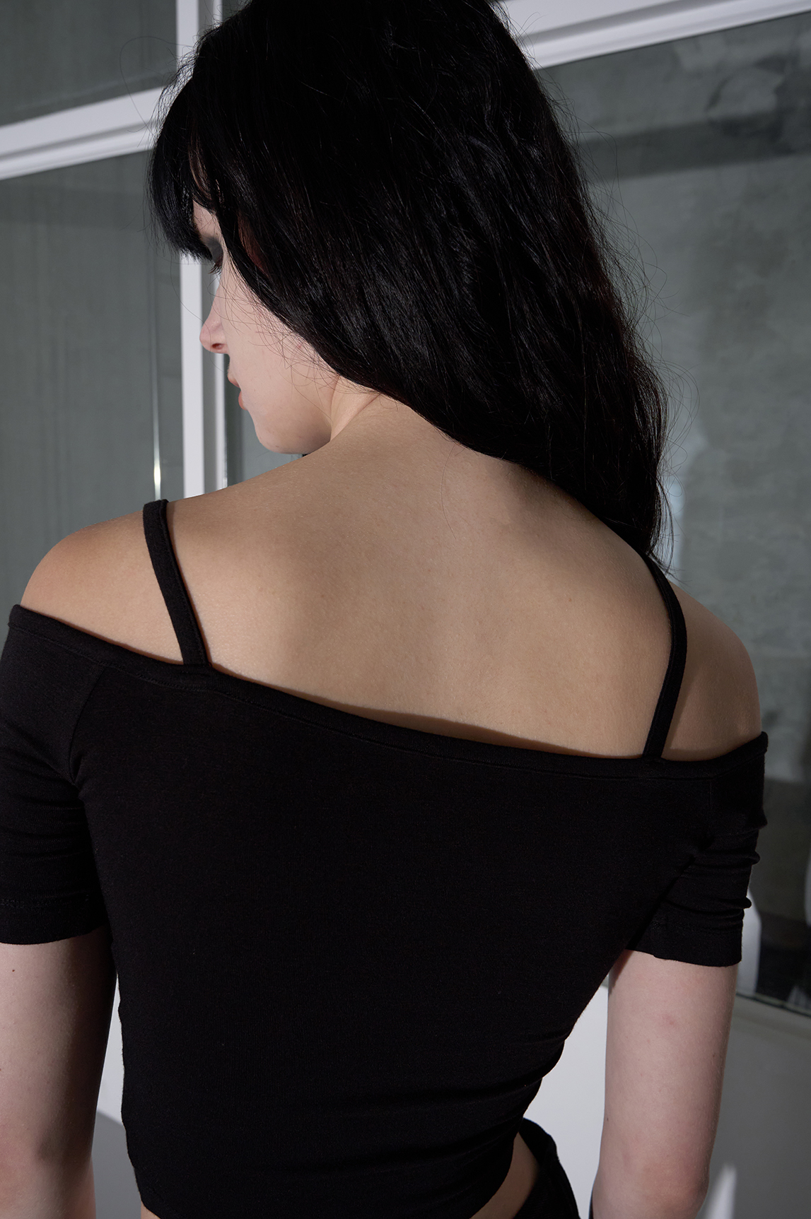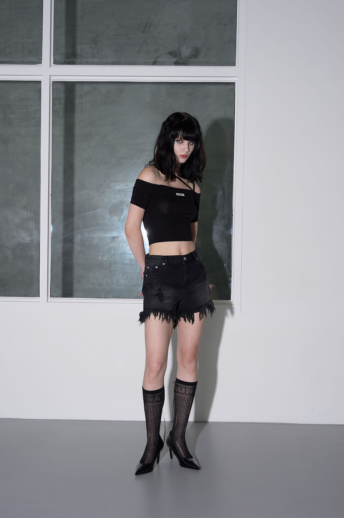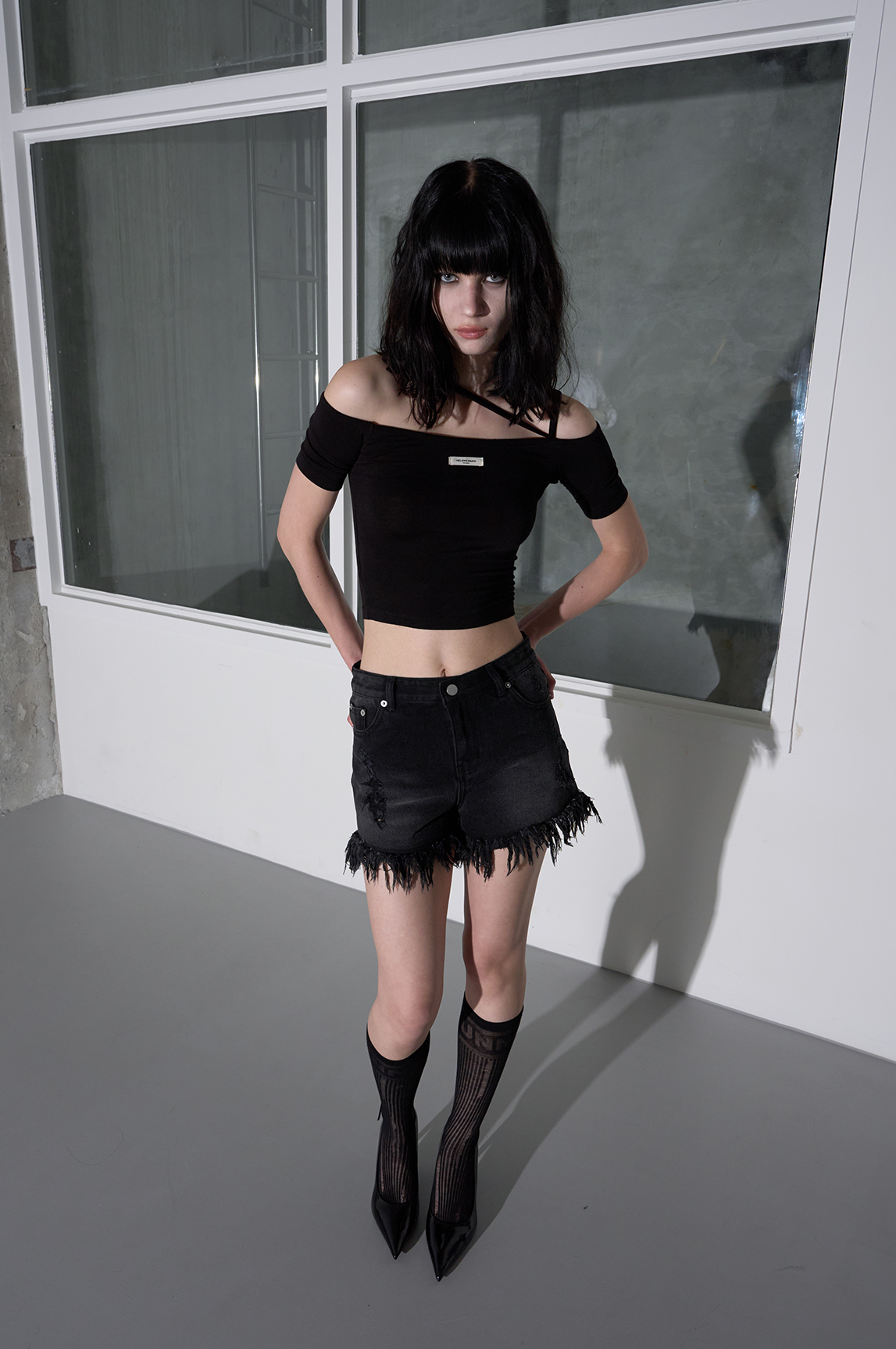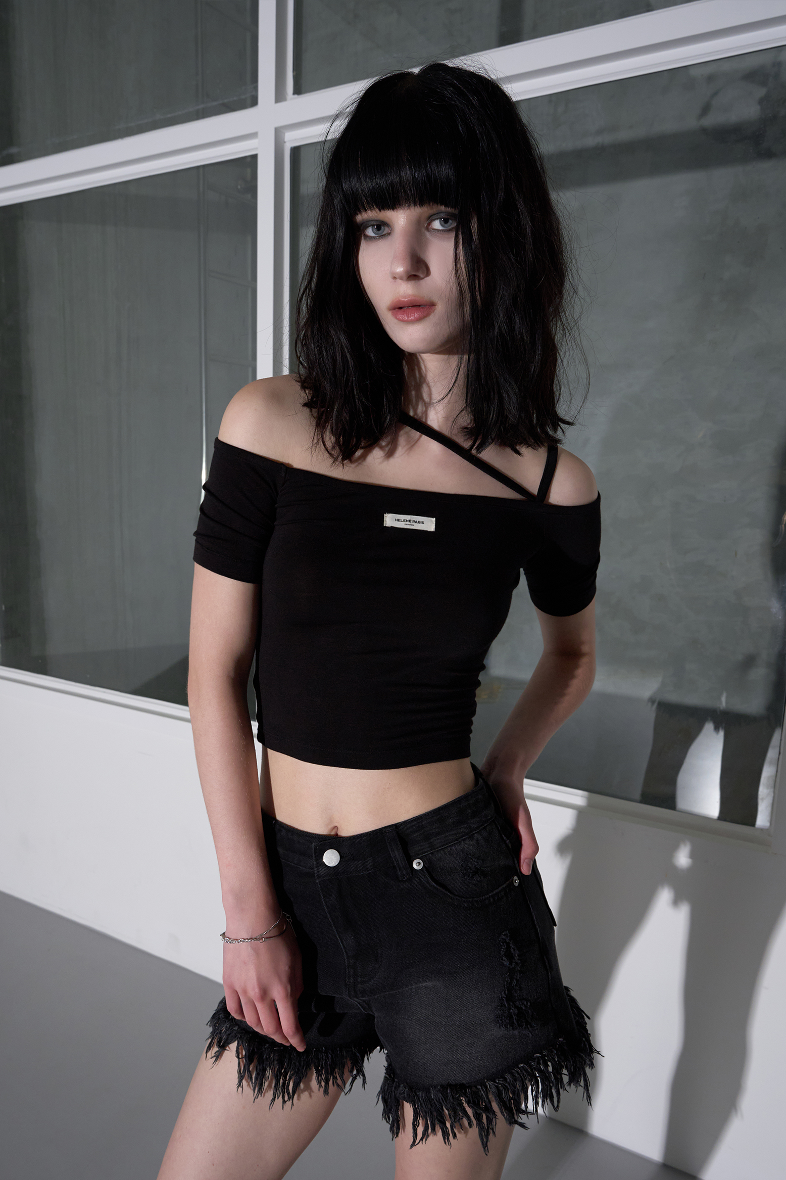 - 언밸런스한 어깨 디자인이 매력적인 탑