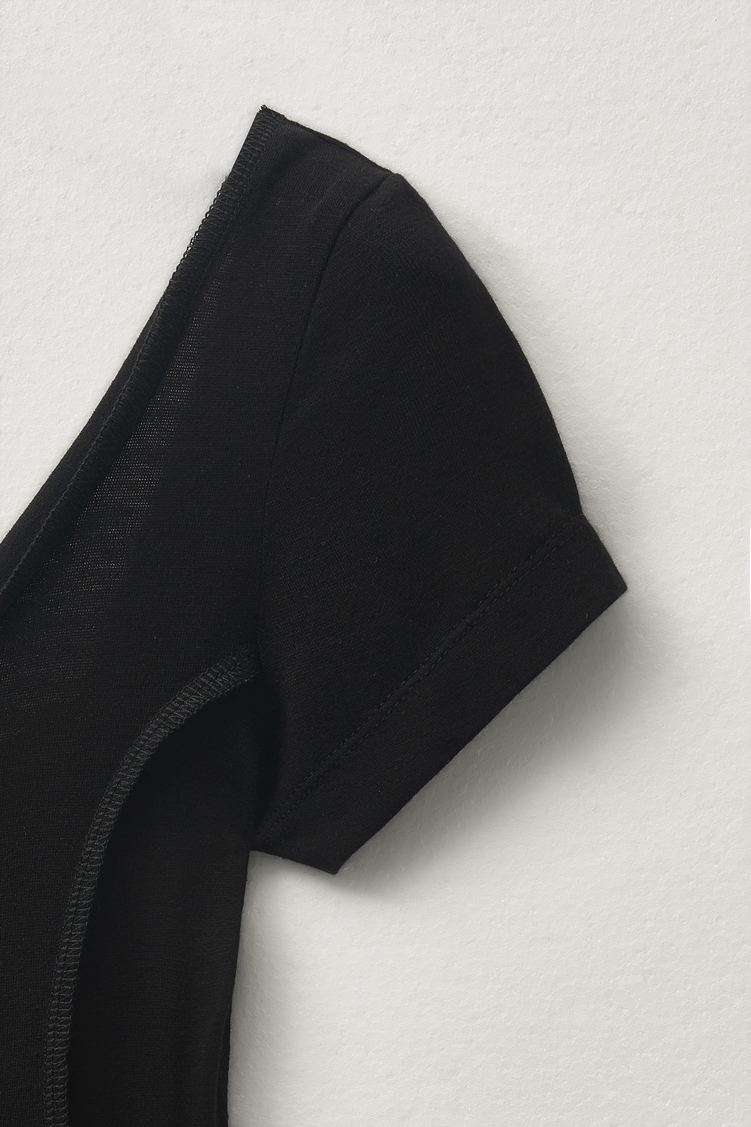 오버록 브이 네크라인 하프 슬리브 [블랙]