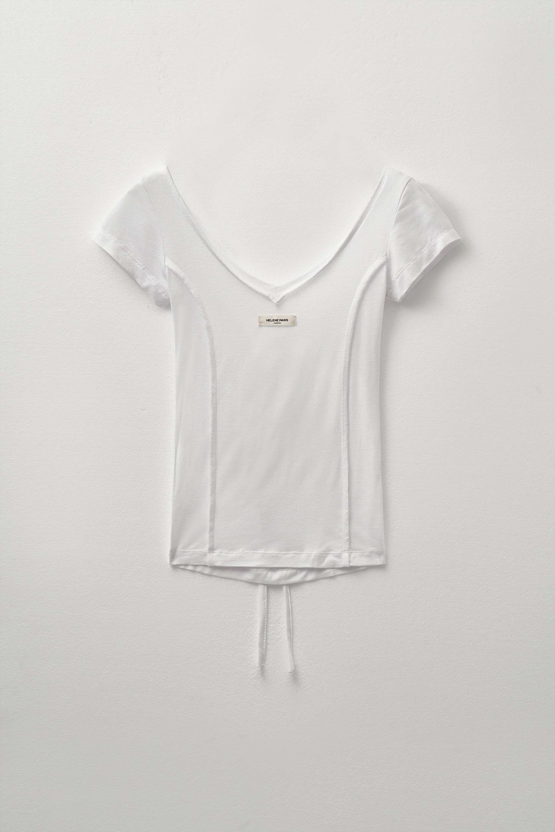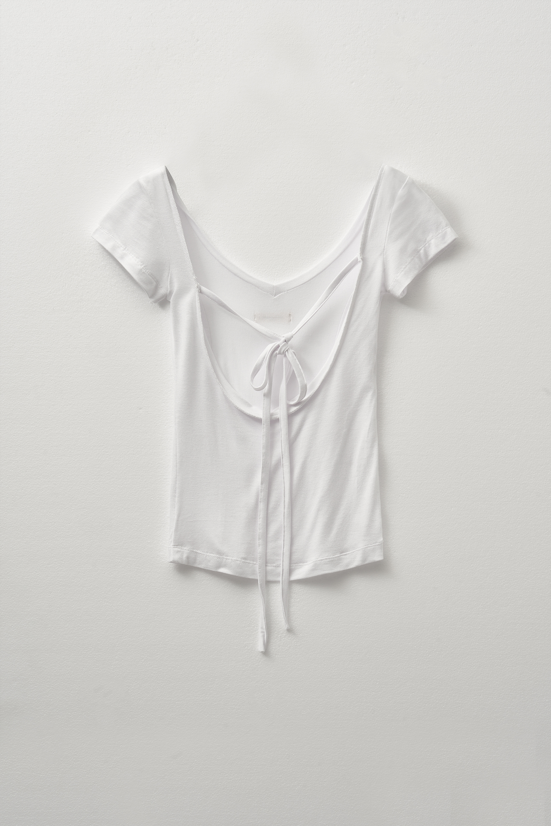 - 독특한 백 컷팅 디자인과 드로우 스트링 디테일로 유니크한 스타일링하기 좋은 아이템