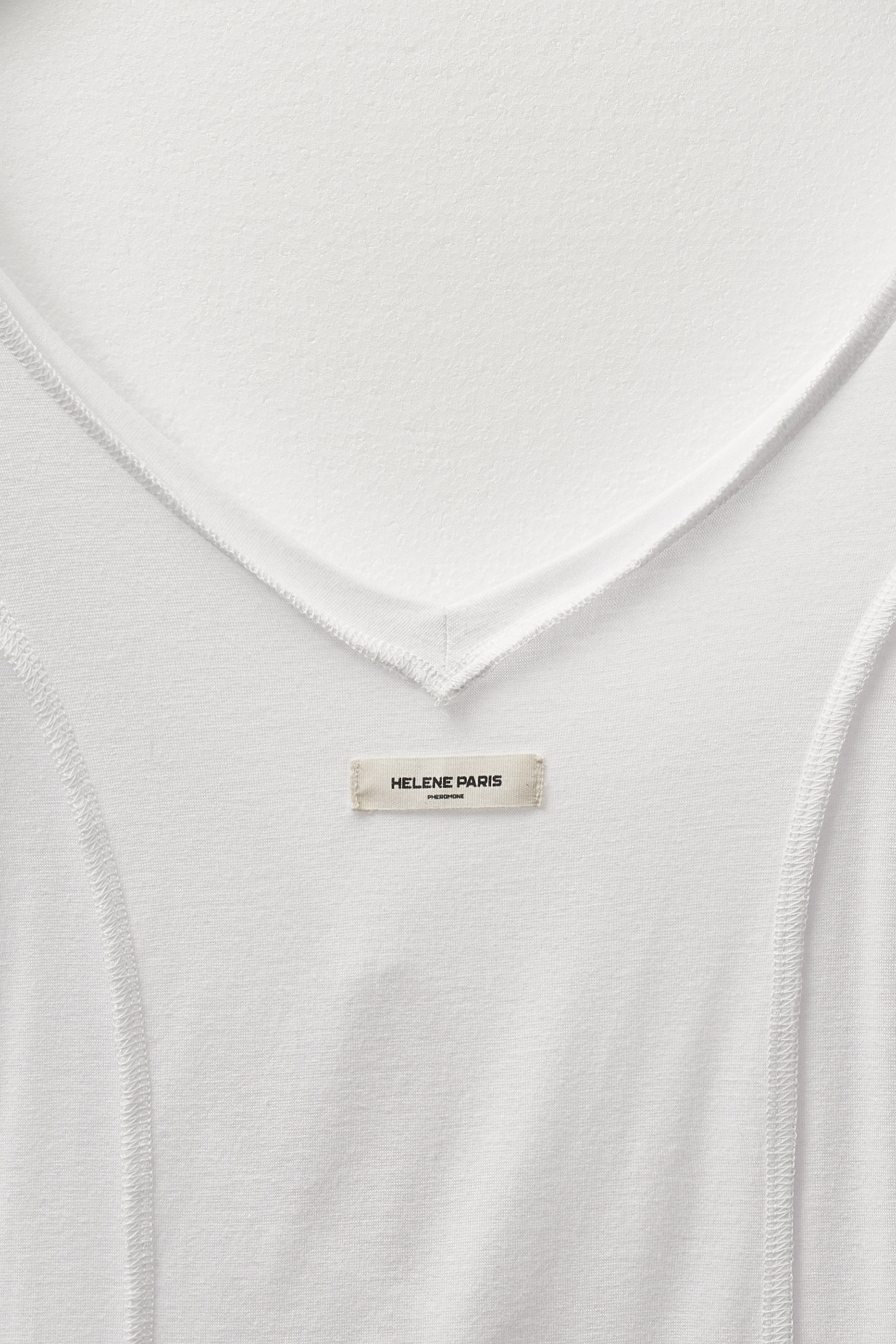 오버록 브이 네크라인 하프 슬리브 [화이트]